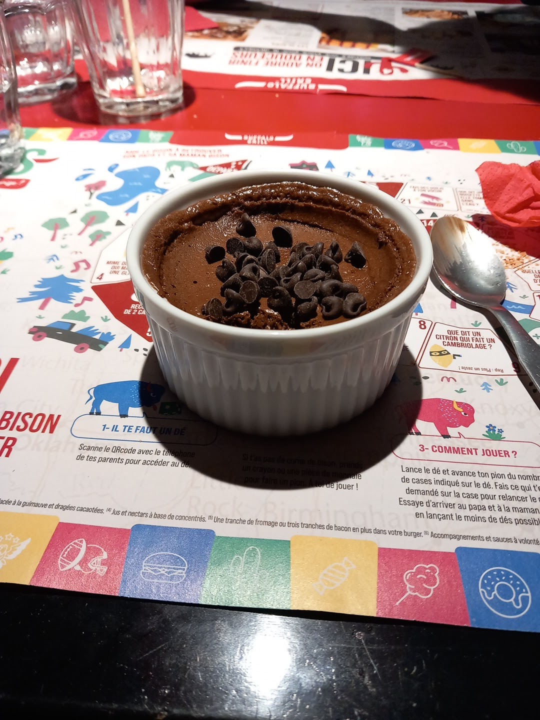 Quantité de frites trop importantes = gâchis Gâteau au chocolat et crème au beurre excellentes ! Service rapide et très agréable continuer ainsi