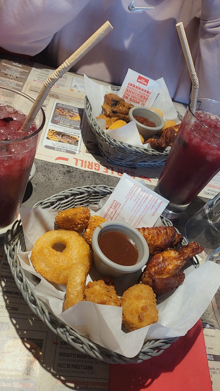 Une catastrophe ! Frite froide , des ails de poulet mariné carbonisé, et sec! Même pas de salade en accompagnement bref , pour le prix passez votre chemin clairement ! Dommage que je ne puisse pas mettre de photo!