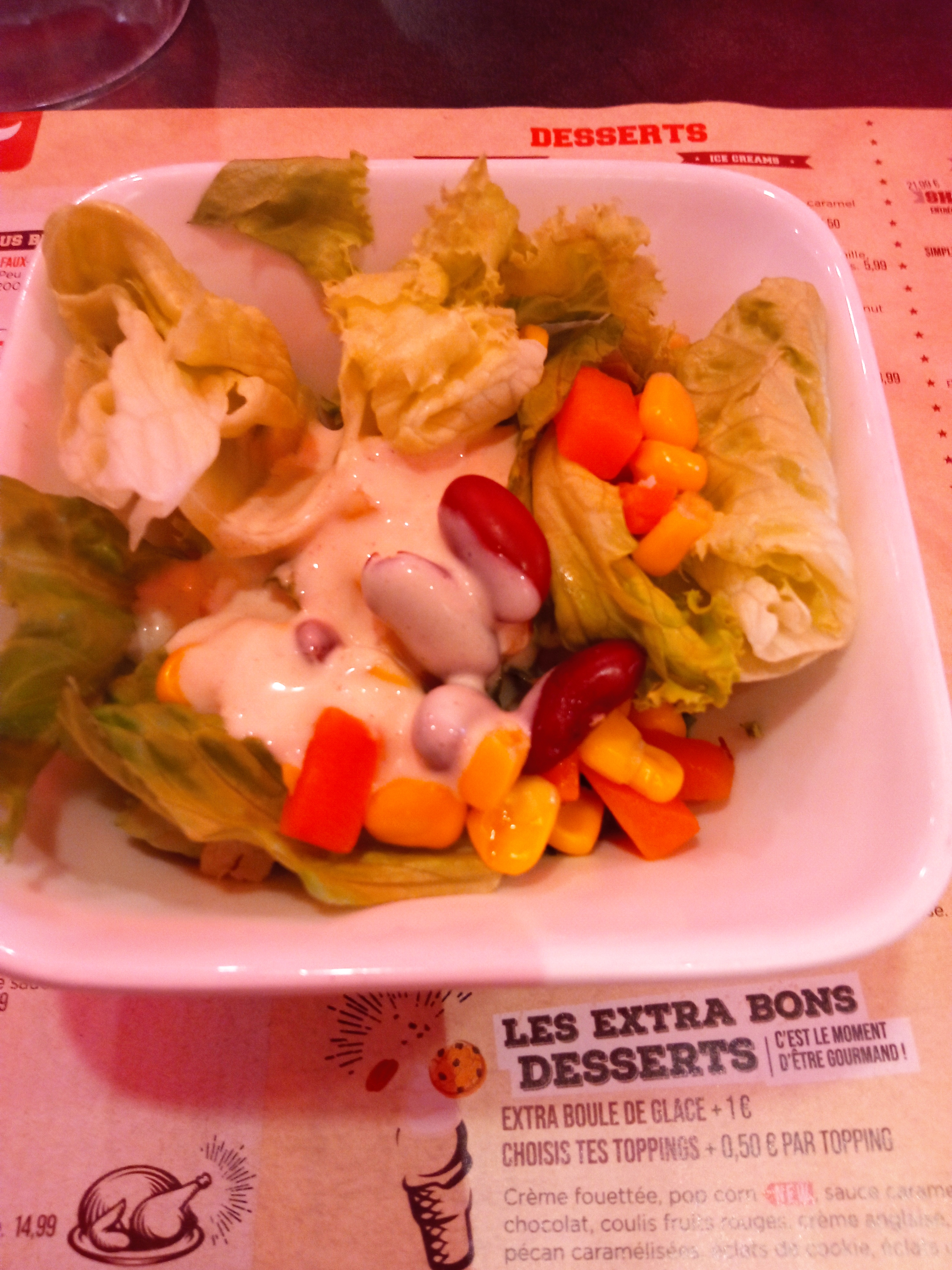 Pas de salade de bienvenue. Aucune salade n'est disponible..... stock mal géré. Personnel non qualifié. Je n'y retournerai pas.