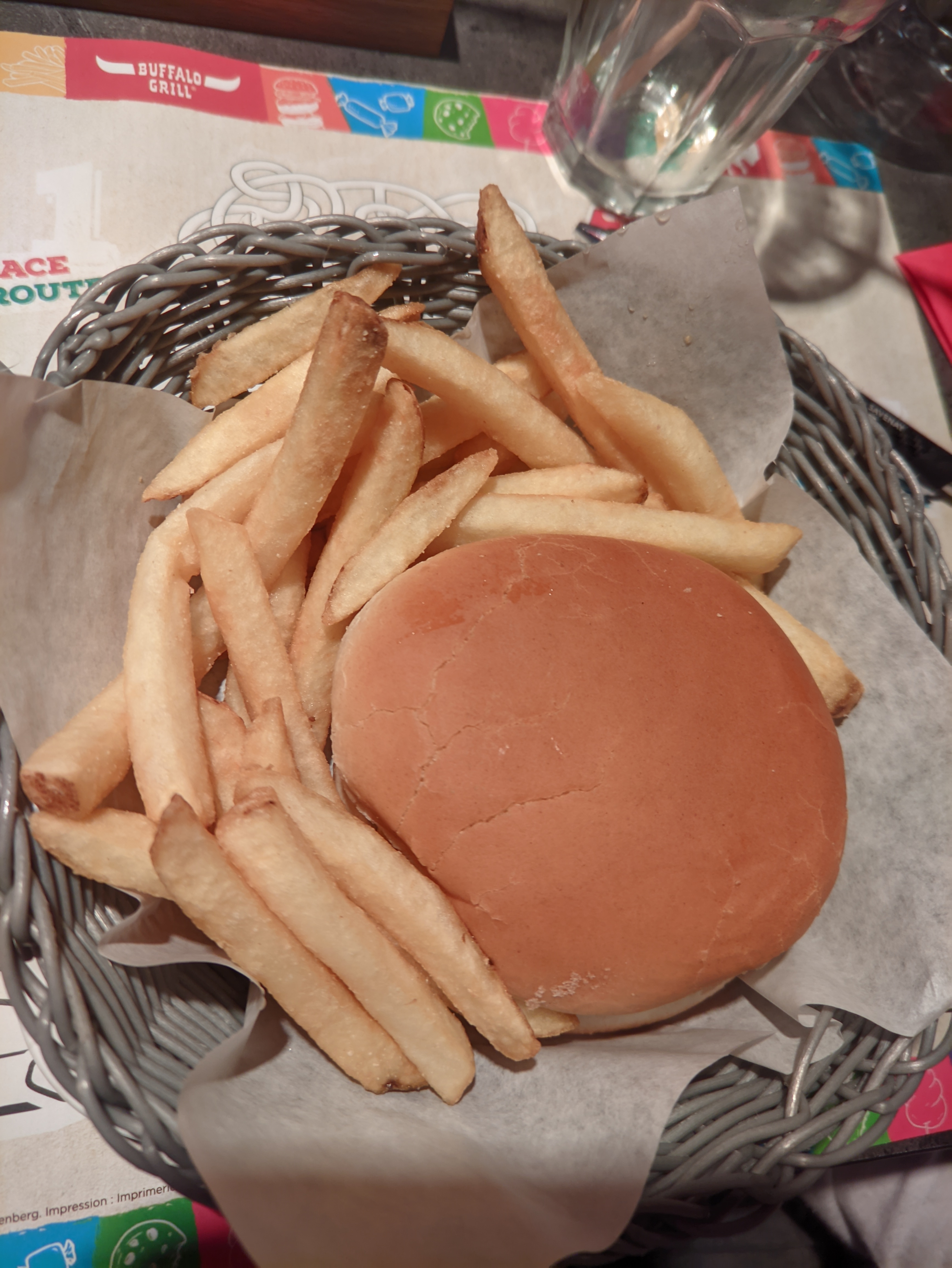 Un serveur incompétent et une organisation catastrophique ! A la prise de commande, le serveur nous dit qu’il faut prendre la commande nous-même avec le QR-Code, sans nous laisser d’autre choix. Nous passons donc commande en ligne mais Le site Buffalo est très mal fait : nous voulions commander des Wings avec sauce cheddar maturé. Après ajout au panier, le site dit que le produit ne peut pas être commandé. Après plusieurs minutes d’essais nous comprenons que ce n’est que pas les Wings mais uniquement la sauce qui n’est pas disponible. Ensuite, nous devons demander 3 fois une carafe d’eau avant de la voir enfin arriver. Le plat que j’ai commandé met 30 minutes pour arriver, le serveur vient me dire qu’un autre serveur a pris mon plat mais que la cuisine m’en fait un autre. Il revient me voir en me disant que c’est parce que j’ai mis le plat en attente. J’avoue que je n’ai pas compris. Il revient ensuite pour le demander la cuisson de ma viande, alors que j’avais tout indiqué dans ma commande. Le plat finit par arriver mais sans la bonne sauce ni le bon accompagnement. Je me plains alors à la directrice adjointe qui passe par là, elle prend très mal mes reproches et repose la faute uniquement sur les cuisines ! C’est aussi le rôle des serveurs de vérifier qu’ils apportent bien le plat commandé par le client ! A la fin du repas, on demande au serveur le dessert de ma fille, il ne nous demande même pas si nous nous prenons quelque chose. Le dessert de ma fille arrive, il n’y a plus de place sur la table qui n’est pas desservie ! Il reste encore sur la table les bols vides de la salade d’accueil, les verres vides de l’apéritif, les assiettes vides des plats. Nous devons demander au serveur de débarrasser la table puisqu’il ne le fait pas de lui-même. Au passage, il balance un gros mot quand il n’arrive pas à attraper une assiette. Un autre serveur passe par là, voit bien que le serveur ne fait pas le travail attendu et s’excuse de la situation. Ces excuses aurait dû venir de la directrice adjointe… Bref, un serveur absolument incompétent et pas du tout formé, une organisation catastrophique. Le pire Buffalo Gril de la quinzaine où j’ai pu dîner.