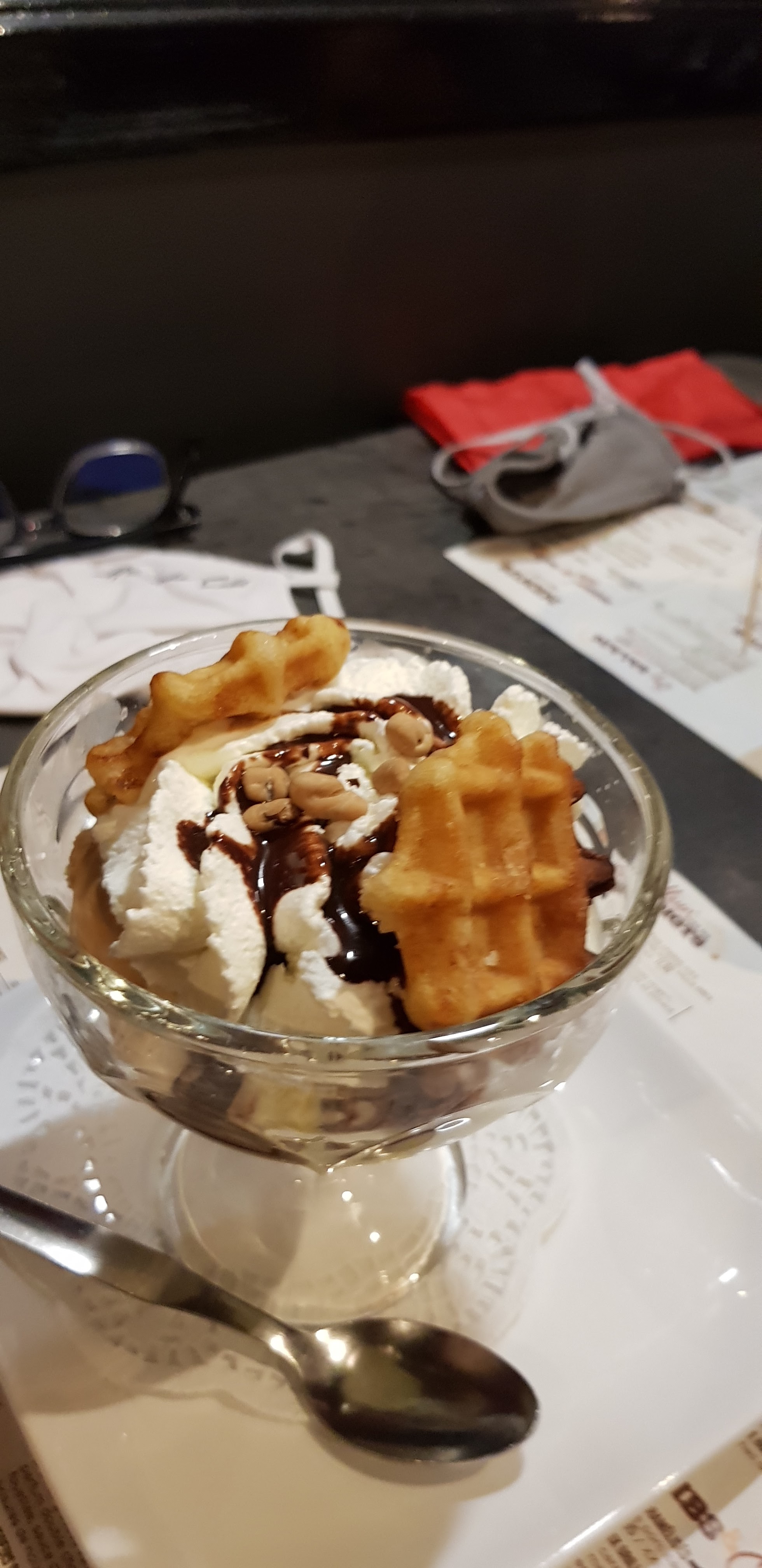 Service plutôt bien juste attendu 10 minutes nos cuillères alors que le dessert étaient servis merci la glace fondu ... Nourriture aucun soucis Un gros +++ pour l'espace jeu a l'étage pour les enfants.