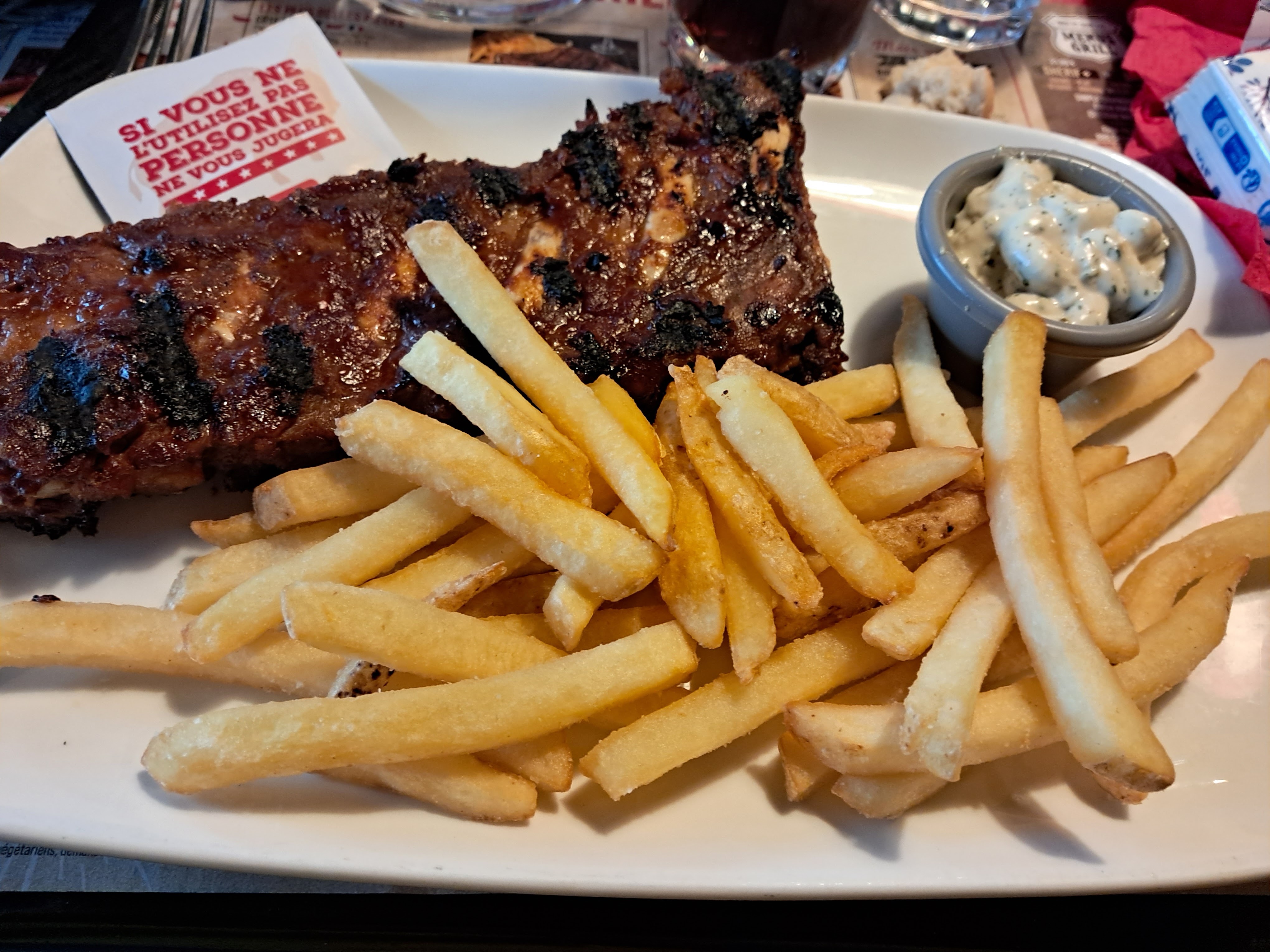 Nous nous sommes régalés, dommage que ça refroidit un peu vite mais frites chaudes à volonté. De plus, notre serveuse Margaux était au top et nous étions installés dans un coin tranquille 😊