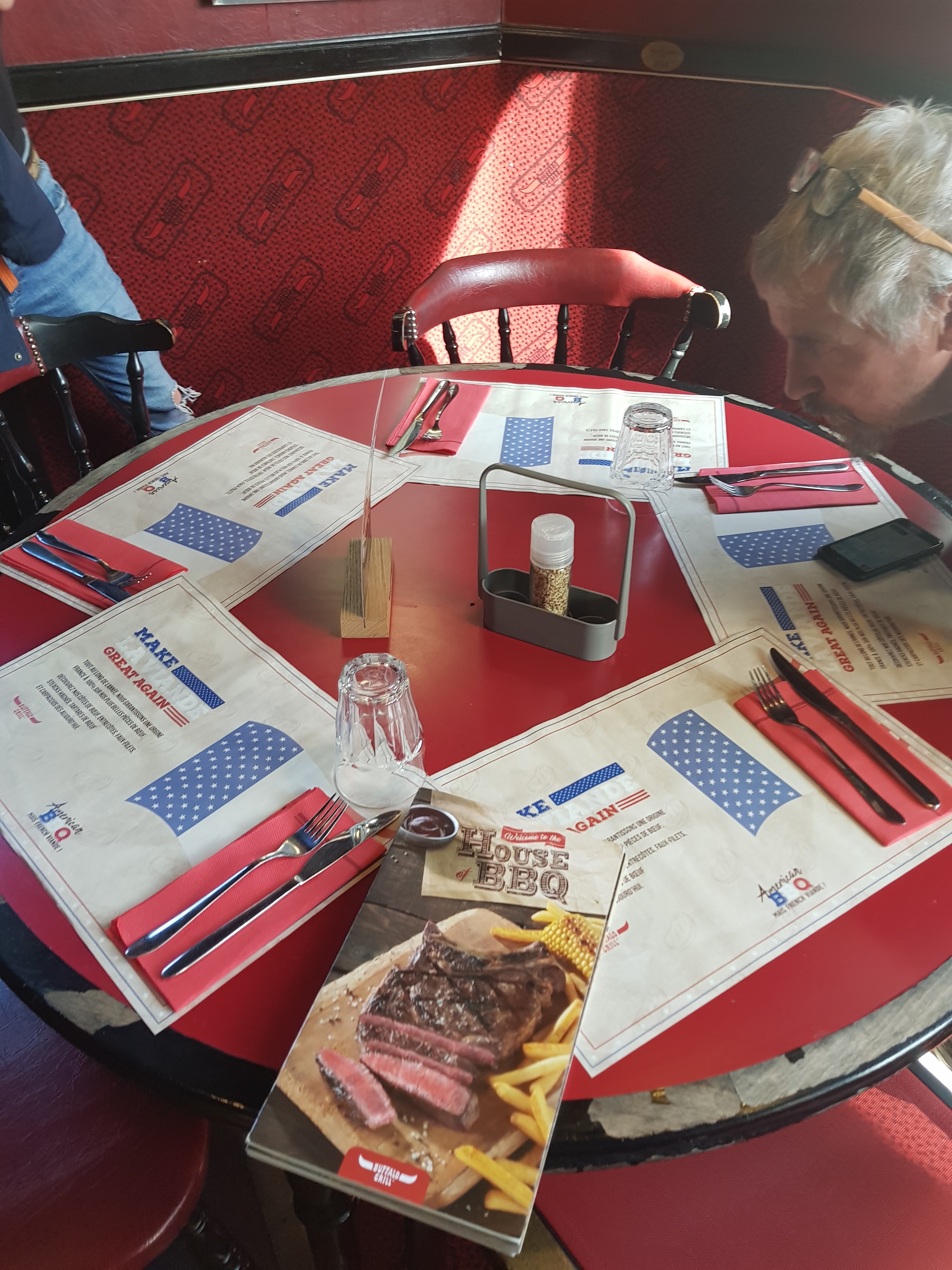 Quand je vais au Buffalo je sais, a quoi m'attendre en général. une cuisine simple, et un décor qui ne change pas au fil du temps, j'aime le fait que l'on soit dans des petits box, un peu à l'écart des autres, style vieux wagon de trains. La cuisine n'est pas exceptionnel mais elle est correct, vu le prix. J'ai passé un très bon moment avec mes enfants, les personnel est très sympathique, avenant et courtois. Dommage que le restaurant ne soit pas rénové un petit peu, car on a l'impression que malgré les années le restaurant baigne toujours dans son jus .