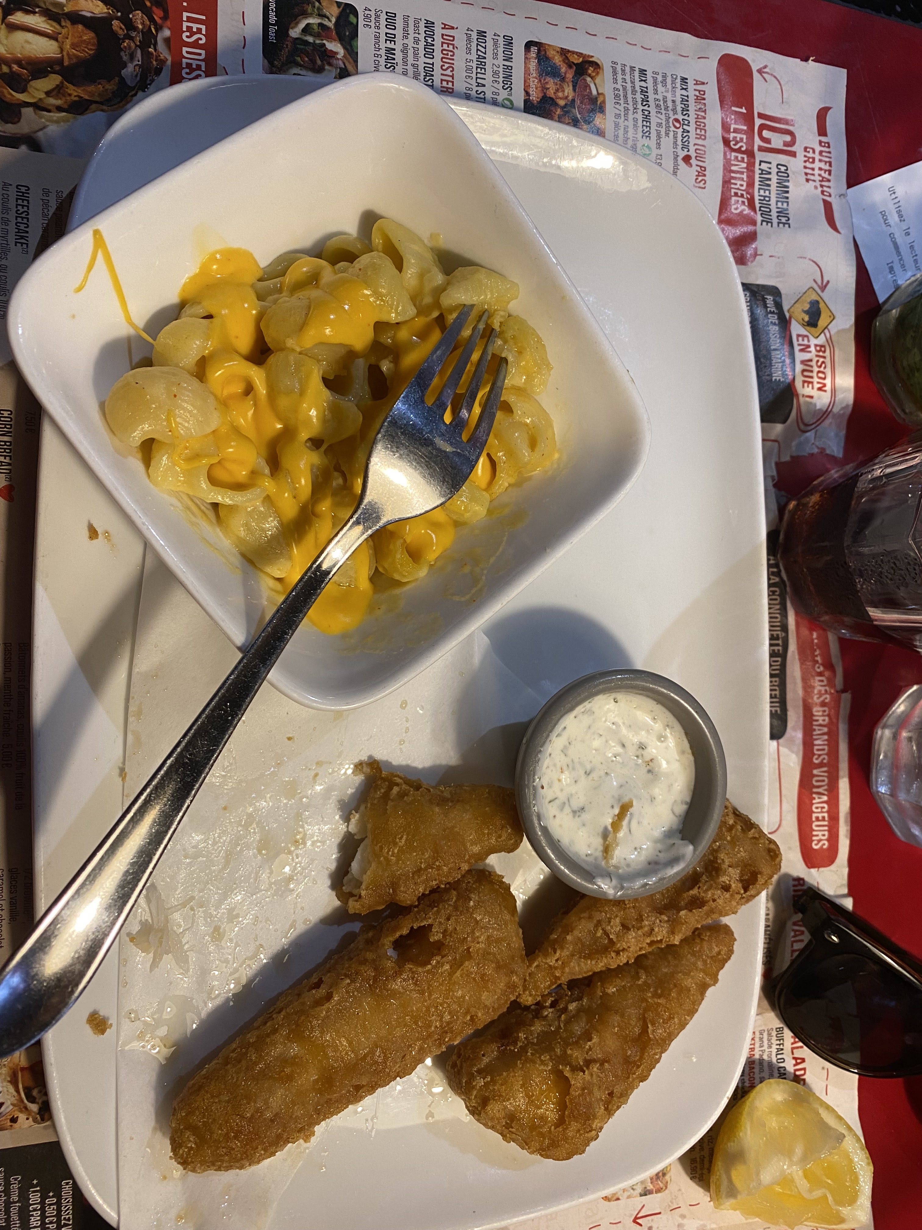 Service gentil mais débordé, portion ridiculement petites ( 4 pauvres bout de poisson pour 14€90) les mac and cheese a 2€ supp et voila la portion. Plus de petites salade d’accueil plus de pain plus salade plus bifteck bref… mauvaise expérience.