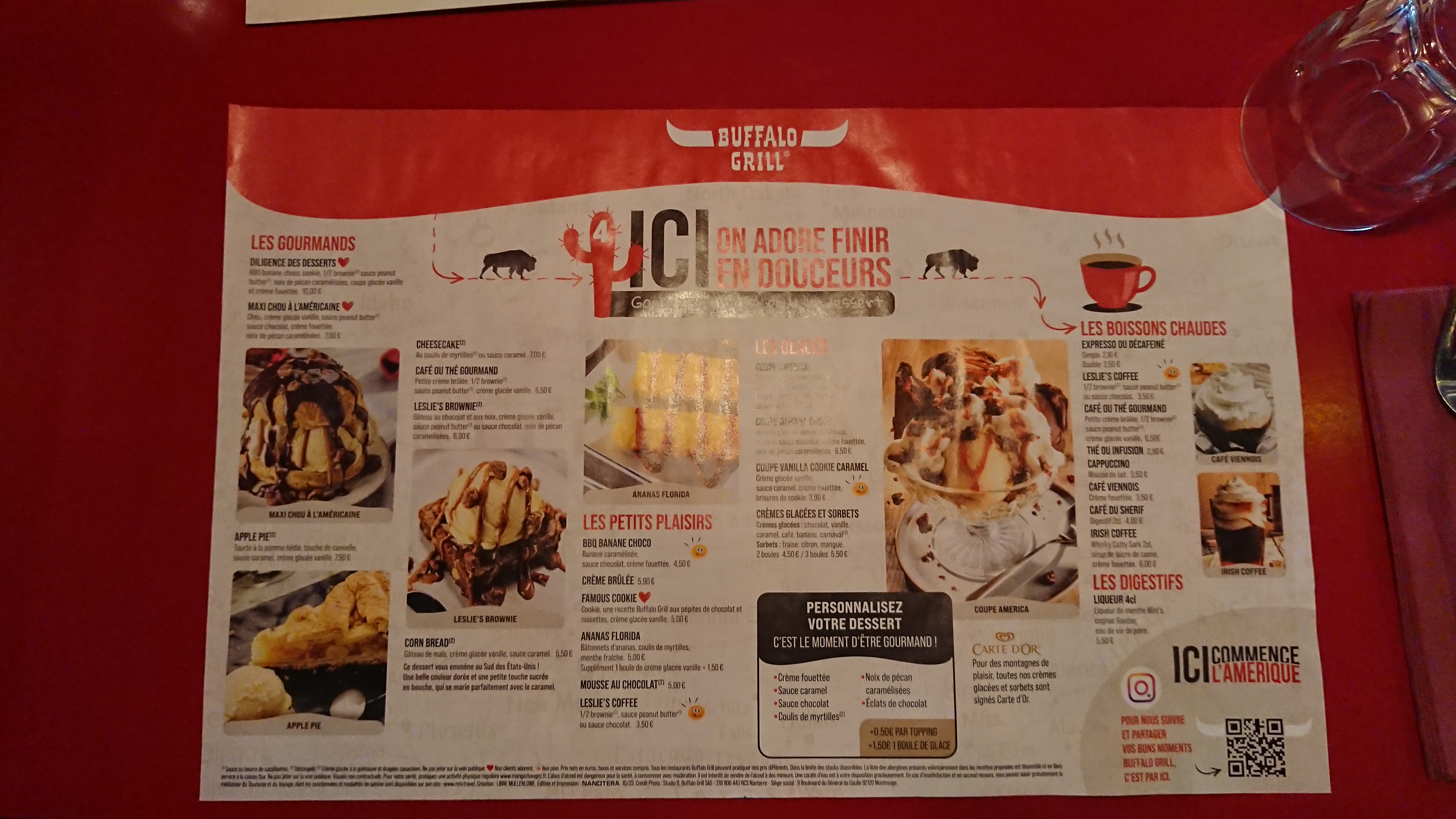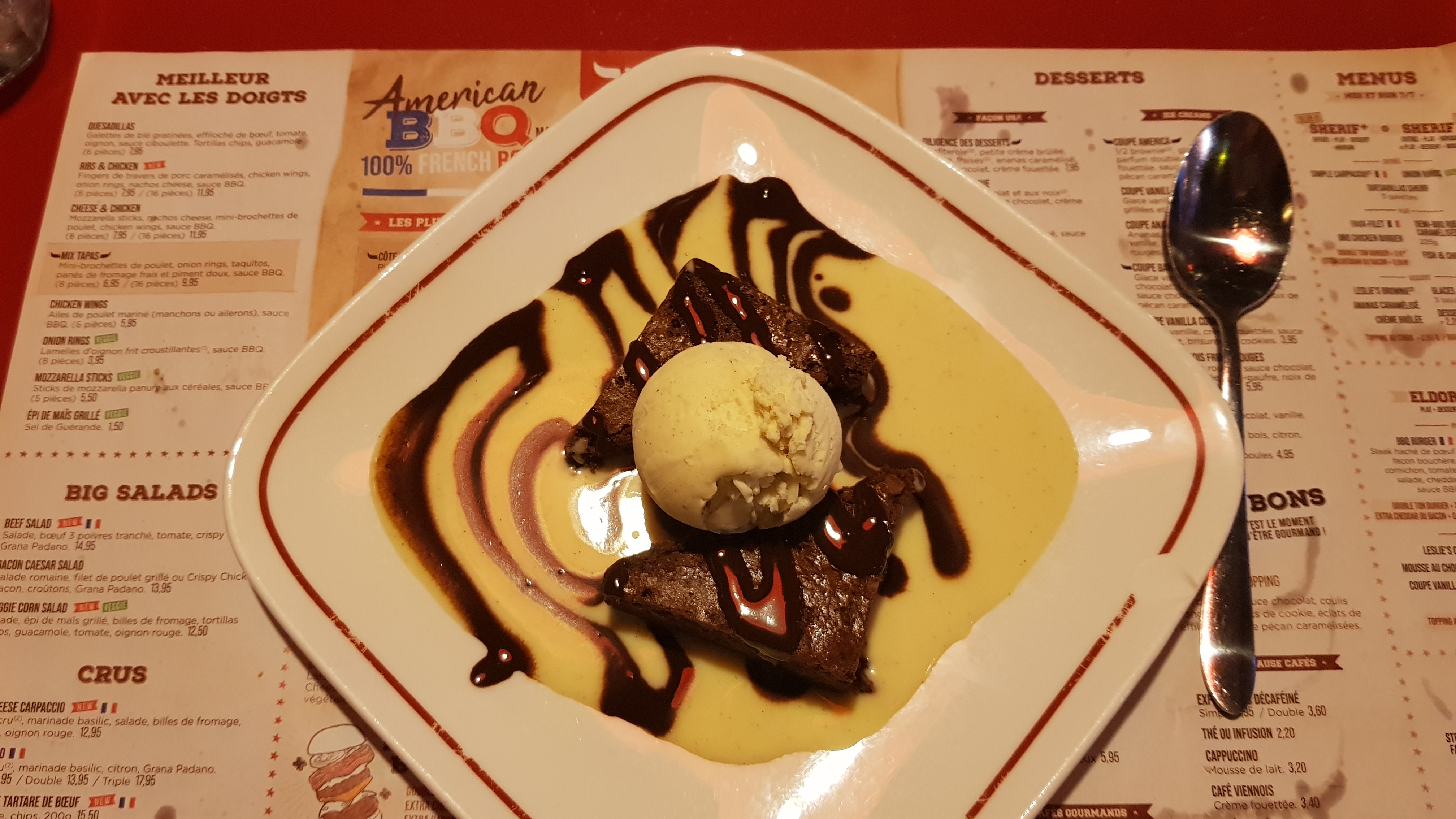 Quel dommage !!! Que s’est il passé ? Les temps d’attente sont désormais catastrophiques, les portions incroyablement mesquines, sans parler des oublis…Afin de clôturer le repas , nous commandons deux coupes América, elles n’ont d‘américain que le prix !!! Des boules de glace dans un verre à eau et des brownie restés aux USA , car absent . Bref, nous n’y retournerons pas.