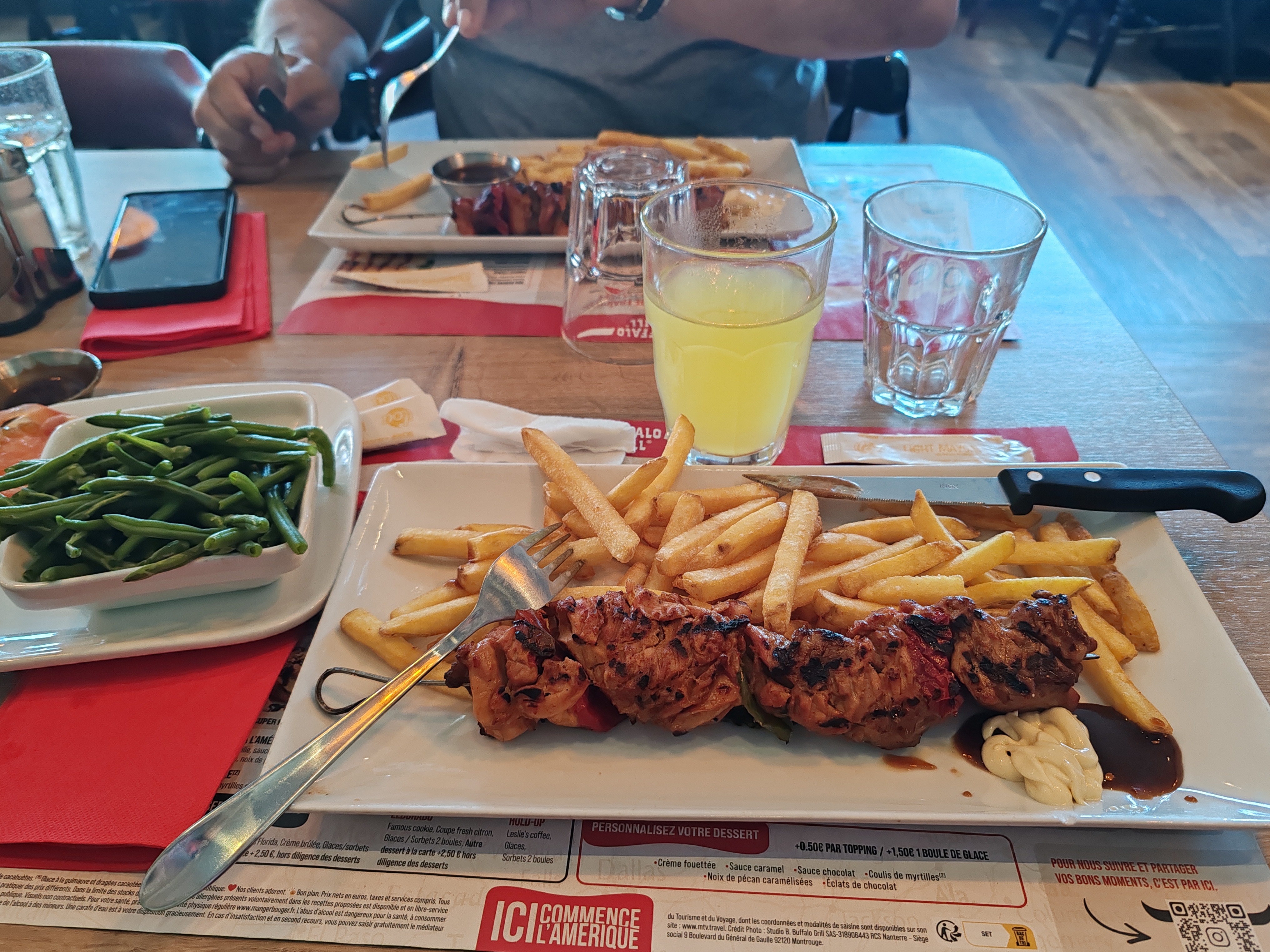 Les petits indiens ont très bien été servis au Buffalo Grill de Laval. Manuela a mis les petites flèches dans les grandes pour nous faire passer un moment délicieux. Le parking reste assez spacieux pour garer notre diligence.