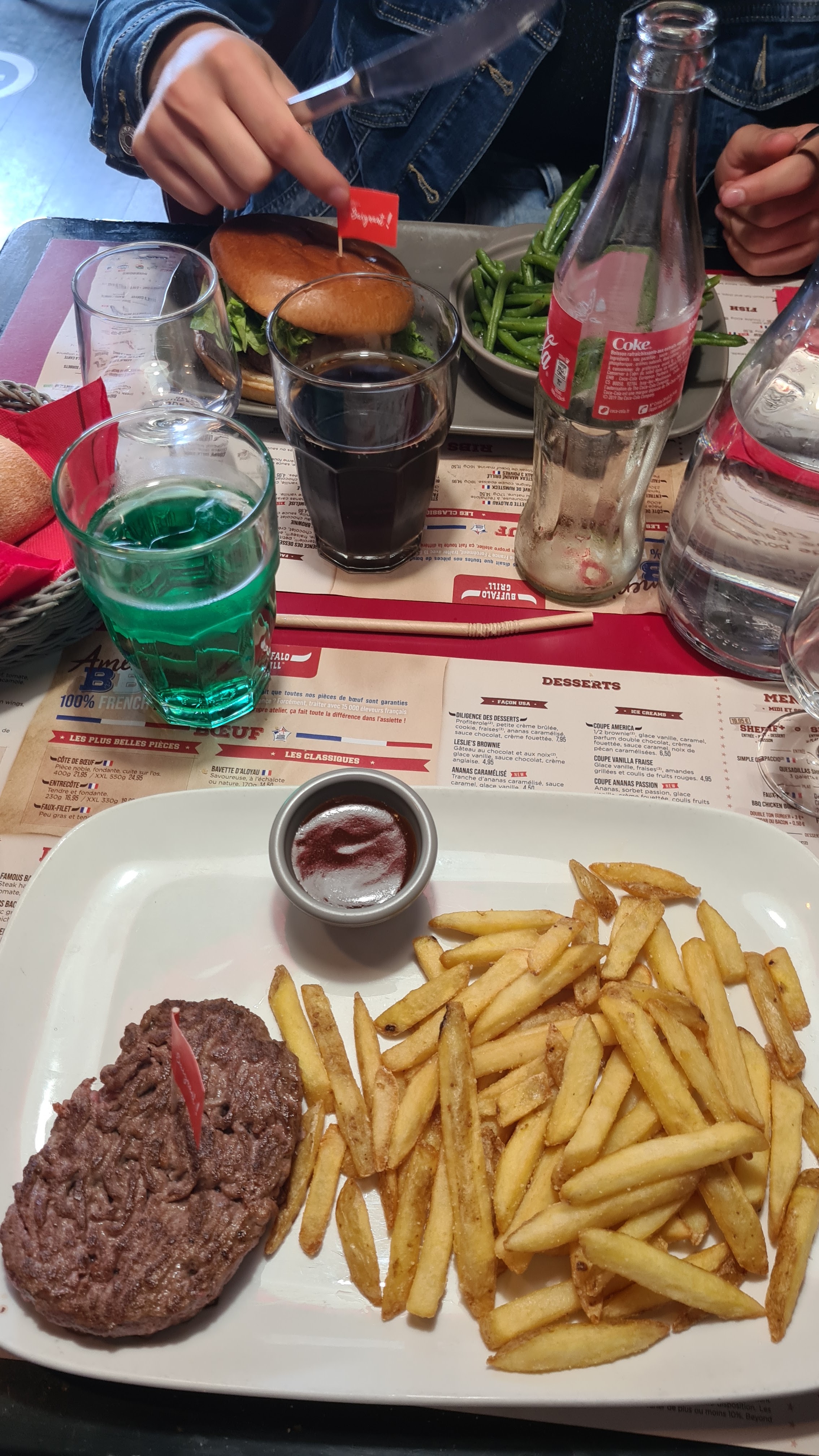 Boissons bien fraîches. Serveuse aimable. Cuisson saignante du burger bien respectée, se qui n' est pas souvent le cas. Le restaurant n' est pas beaucoup chauffé par contre.