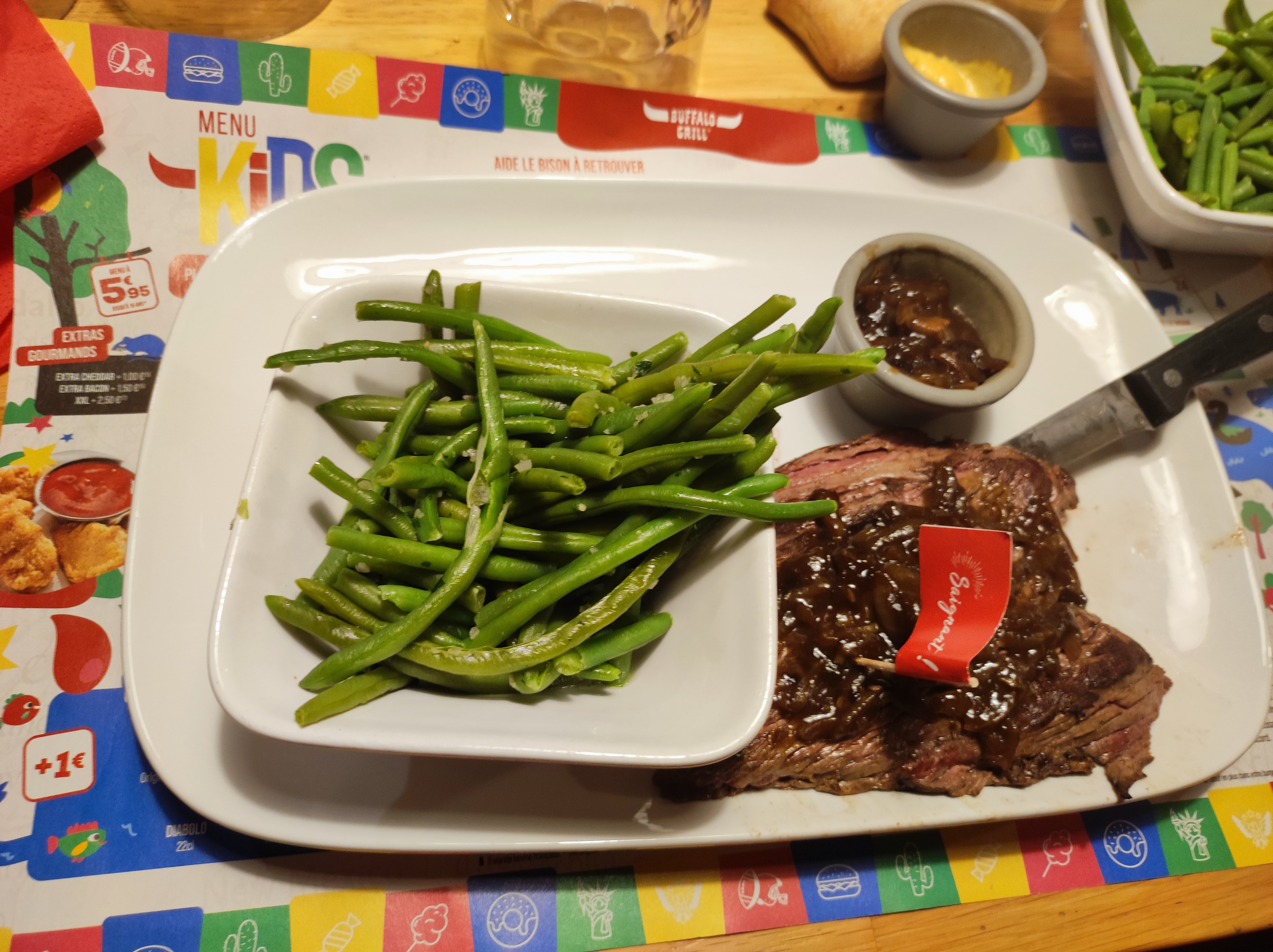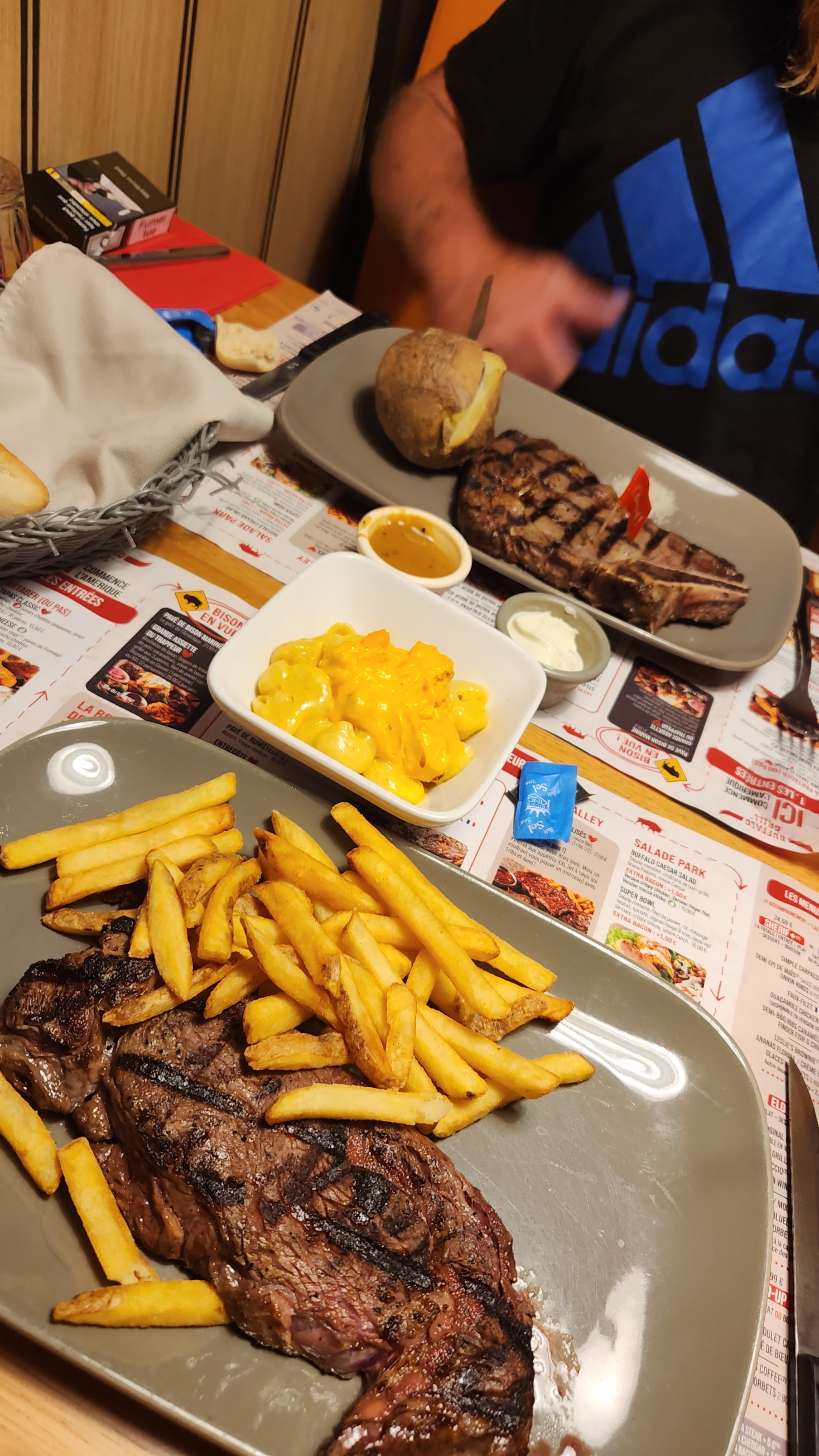 Super repas d'anniversaire avec mon petit copain pour ses 22 ans, une serveuse super dynamique et très sympa (Cheveux blonds au carré qui confond sa droite et sa gauche sauf avec le GPS, Louna je pense vu le ticket 😉) et un pavé de bison toujours au top je ne m'en passe pas 😍