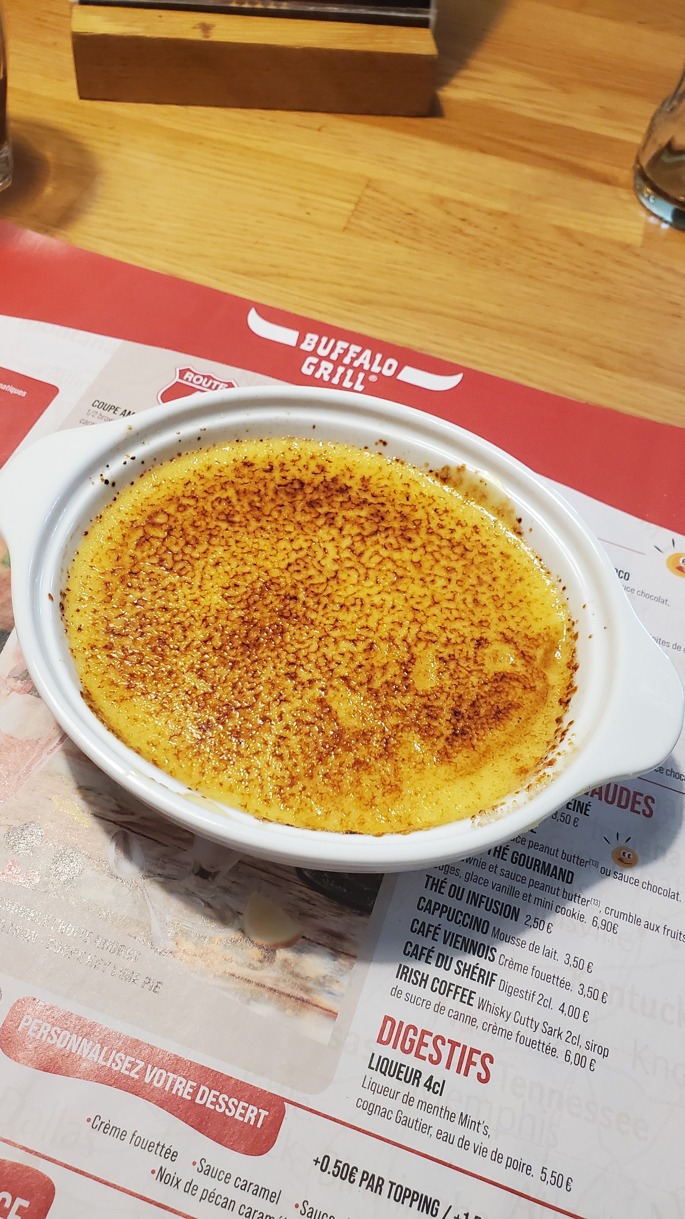Bonne ambiance et bien reçu. On vous demande pour commencer si vous voulez une petite assiette de crudités pour patienter. L'apéritif c'est accompagné de plusieurs spécialités agréables de la maison. Les plats : Ribs caramélisés, et brochettes de bœuf ont été servis comme demandé et accompagnés de leurs légumes. Pour les desserts (un peu juste pour ma part en quantité) ce sont avérés communs mais de bonnes qualités. Un accueil et un service toujours égal chez Buffalo Grill nous fera revenir j'en suis sûr.