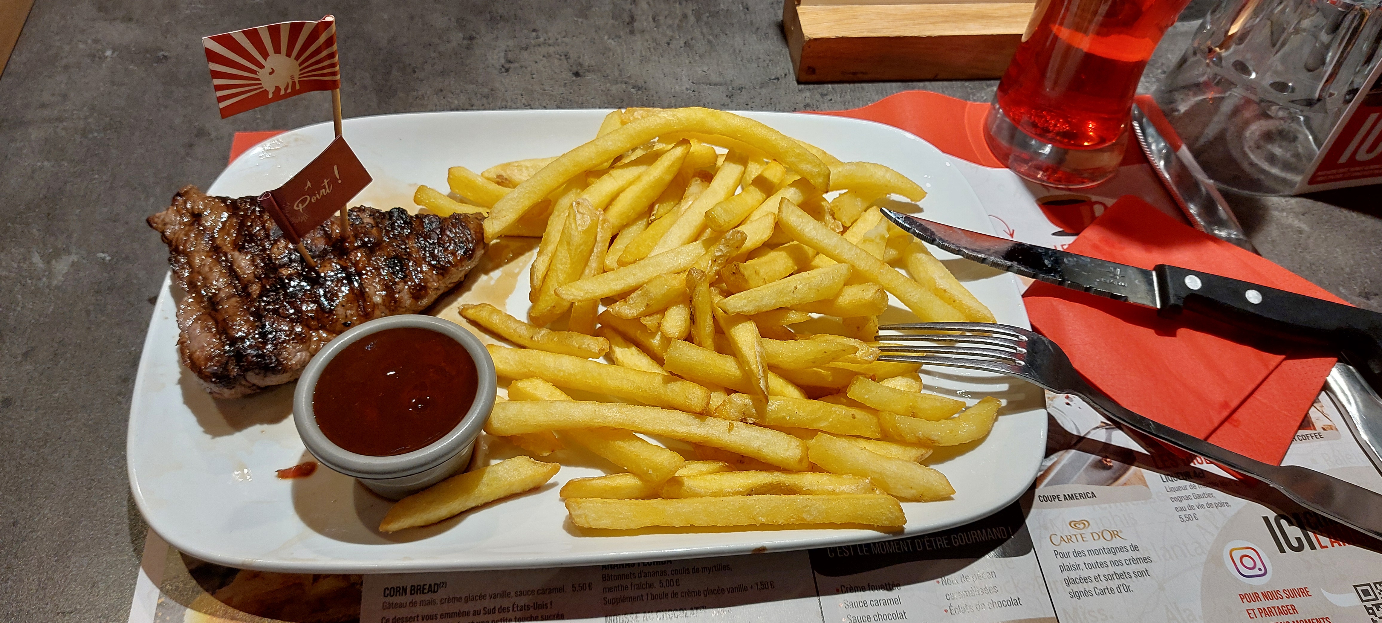 super bon les frites et la sauce,, juste j'attendais à un peu vraiment peu la viande, tant dit que la spécialité c'est la viande,,, j'ai commandé la côte de bœuf c'était un peu sec pour mon goût, mais commun bon au total., 👍😊