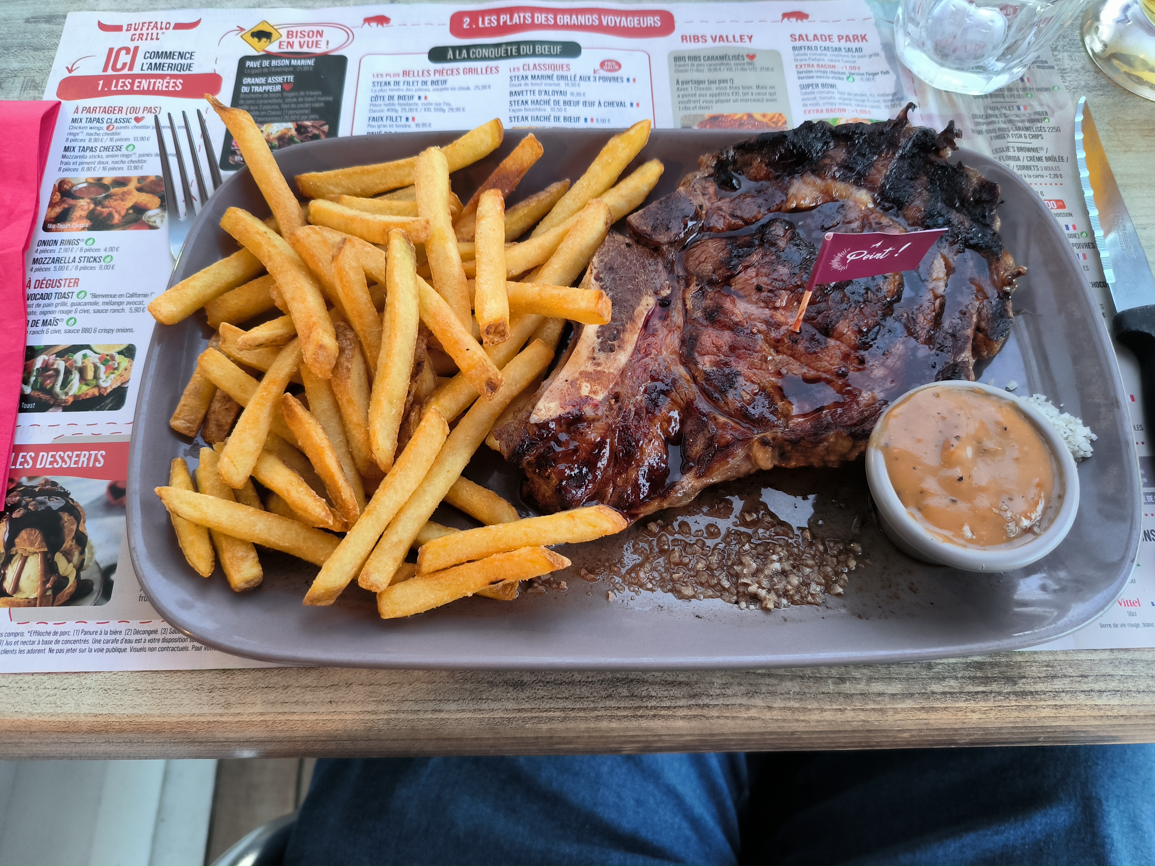 Chili con carne et bison au déjeuner pour nous. Pas bien digéré le chili 🙄 Sinon, c'est devenu bien cher un petit plaisir au resto, 27€ pour le bison ....