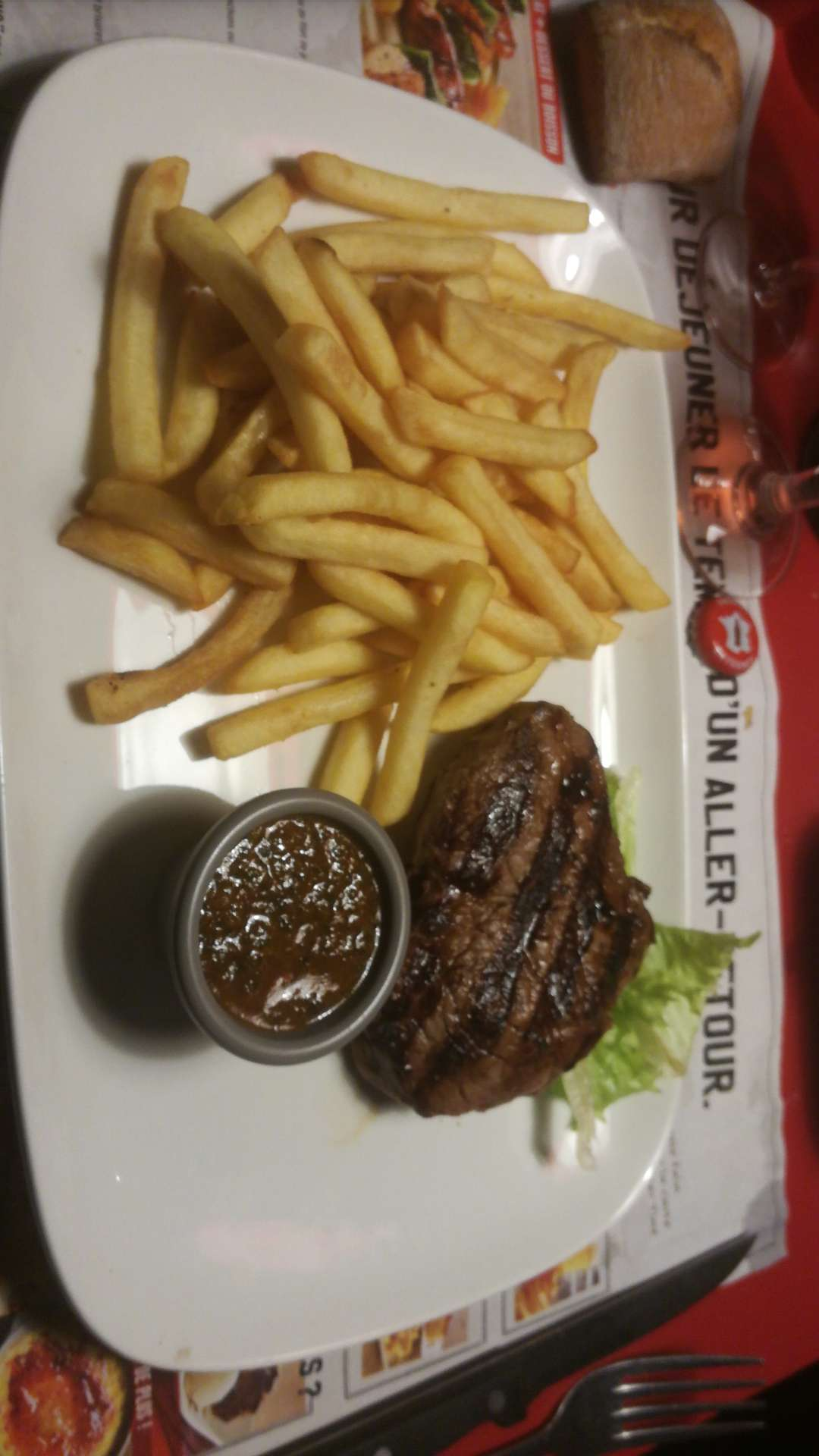 Pour une première expérience, je suis répartie assez déçue. Si le premier accueil est cordial et souriant, la désuétude de l'endroit gâche un peu l'impression de depart. La déco est usée et aurait bien besoin d'un rafraîchissement, peintures, revêtements de sol, sanitaires dont les portes ne ferment pas correctement. En ce qui concerne les plats, les portions ne sont pas du tout en adéquation avec la pub, les frites mal cuites et de basse qualité, la viande pourtant censé être le produit phare du restaurant est insipide et pleine de nerfs, dure à mâcher. On oublie les desserts (coupe glacée sans intérêt qui n'a de coupe que le nom, puisque servie dans un verre, ébréché de surcroît.) Bref, je ne reviendrai pas, merci quand même pour l'effort et l'amabilité du personnel.