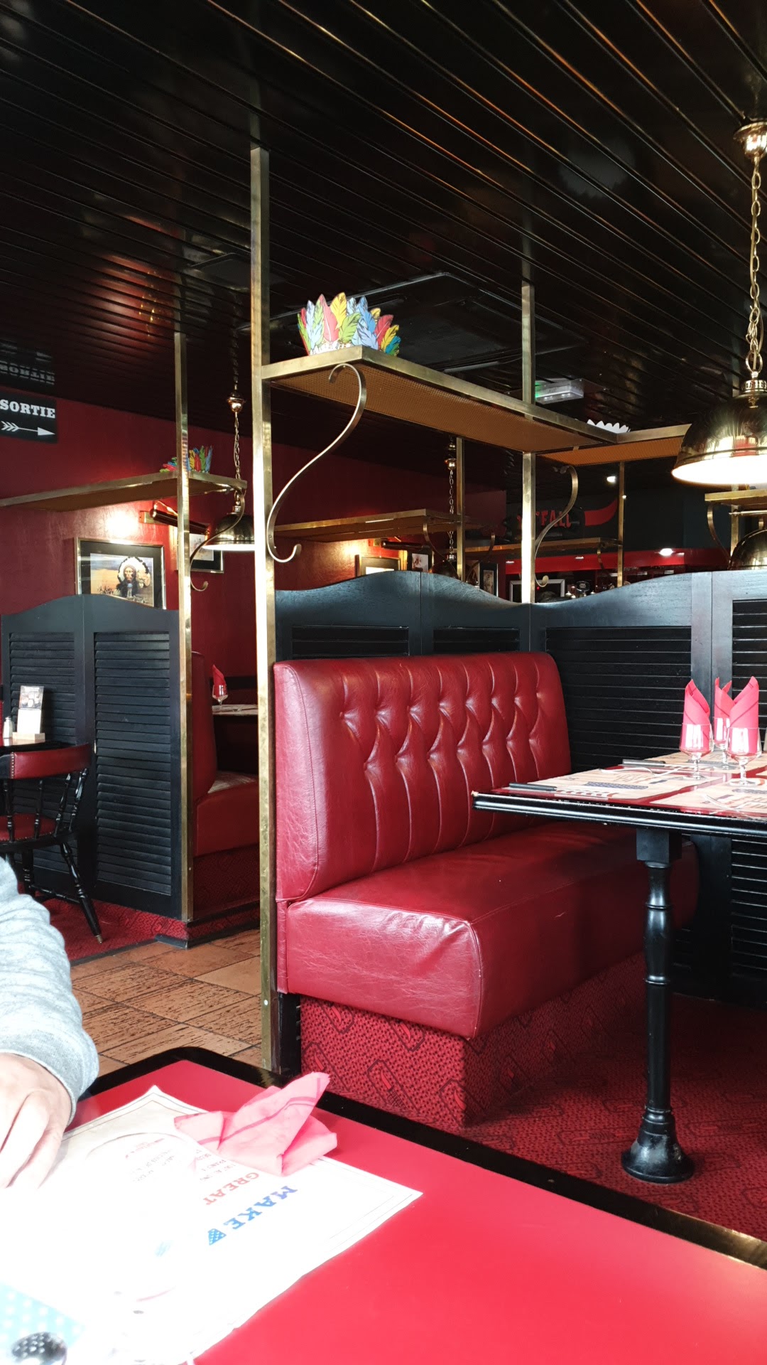 A notre arrivée (21h30 pour une fermeture à 22h45), la tête du serveur était fort dissuasive, belle ambiance.... On a eu la chance de ne pas attendre nos plats car ils étaient très pressés de finir le service,au point de nous demander le choix des desserts avant même d'avoir goûté la viande ! Quand au pain, c'est devenu une denrée rare puisqu'il n'y en avait plus ! Le ménage à été fait devant nous pendant que nous prenions le dessert et l'addition portée dans la foulée, sans que nous la demandions. TRÈS EXPEDITIF! Tout cela pour un repas quelconque avec une viande sans intérêt mais des desserts corrects. On est loin du rêve américain. Si vous pouvez éviter... Troisième passage ( oui pour le deuxième passage on a pas pu dîner pour cause d'une attente trop longue...), Troisième passage donc à 18h30 pour ne pas trop attendre : on nous prévient que le service ne commencera qu'à 19h par manque de personnel... Bon, soit ! On est confortablement assis ( cf. Photo ci-jointe) c'est plaisant!, quand au faux filet bleu demandé, il arrive très cuit, ce à quoi le serveur dît que c'est de sa faute , mais ne propose rien en compensation ! À la fin du repas, nous avons bénéficié d'un geste commercial et de plates excuses( un simple changement de viande aurait été suffisant ?) Au final, quel dommage que cet établissement ne fasse pas les petits efforts nécessaires pour être acceptable. Bravo quand même à l'équipe pour bosser un premier mai!