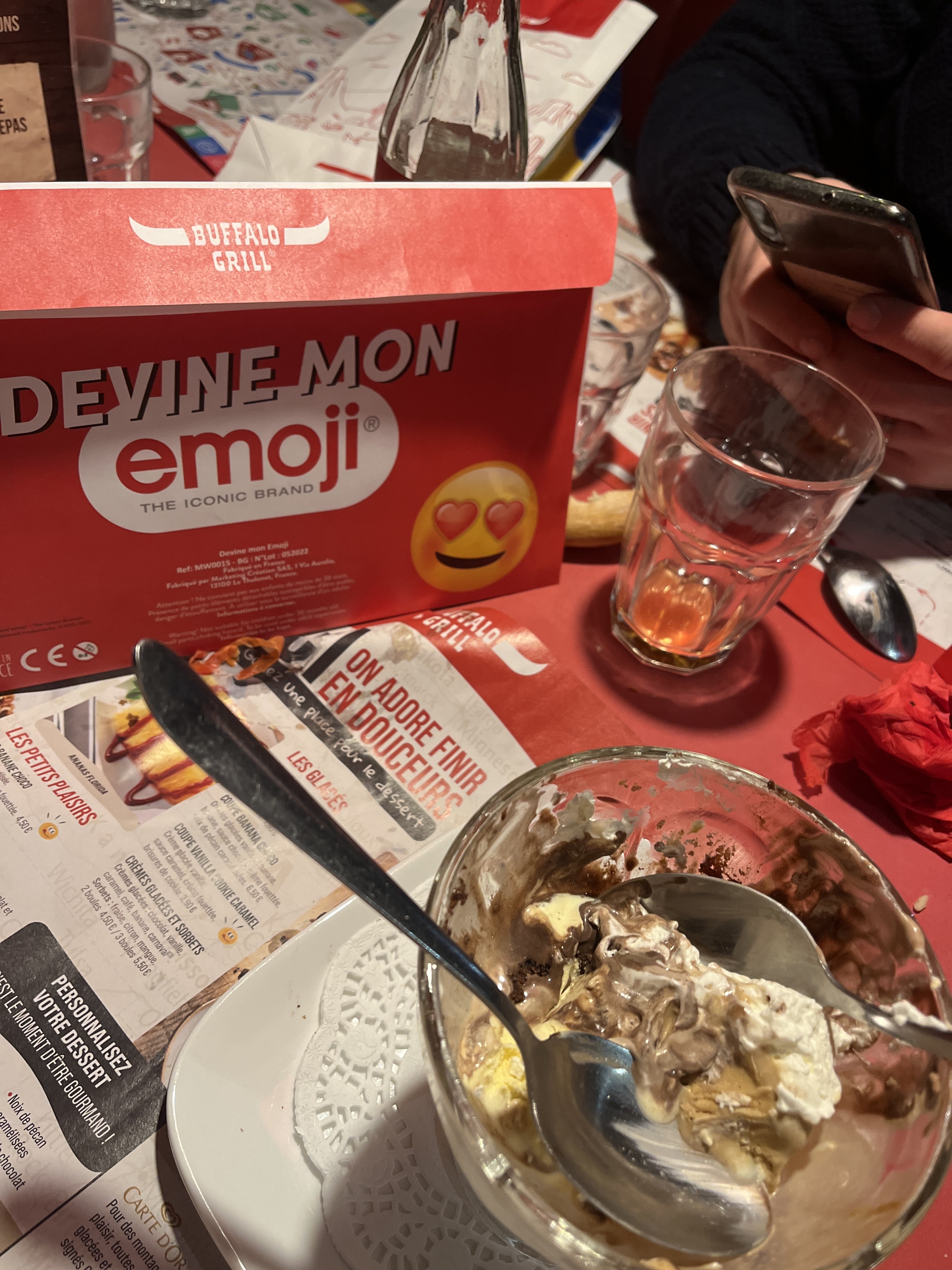 Dans l’ensemble tout s’est bien passé le repas était bon le seul bémol à ce niveau là était le dessert,trois boules de glace les unes sur les autres M’obligeant à commencer par le citron puis le caramel et finir par la vanille ( personnellement j’aime bien gouter par petite cuillère toute les boule, là impossible ) arrivé au caramel je me retrouve avec de la givre, de gros morceaux de glaçon ( photo à l’appui ) du coup j’ai stoppé mon dessert et ai fait constater à la serveuse les glaçons. je voulais quand même goûté à la vanille alors la serveuse m’a proposé de me refaire une boule de vanille, très bien. Dans les toilettes des hommes il manquait une porte dans un WC…, dans l’aire de jeux juste avant les toilettes il manquait des cache prise et la machine à jetons était hors service du coup impossible d’utiliser les jeux.. Je mets la note de quatre sur cinq à cause de ces points négatifs
