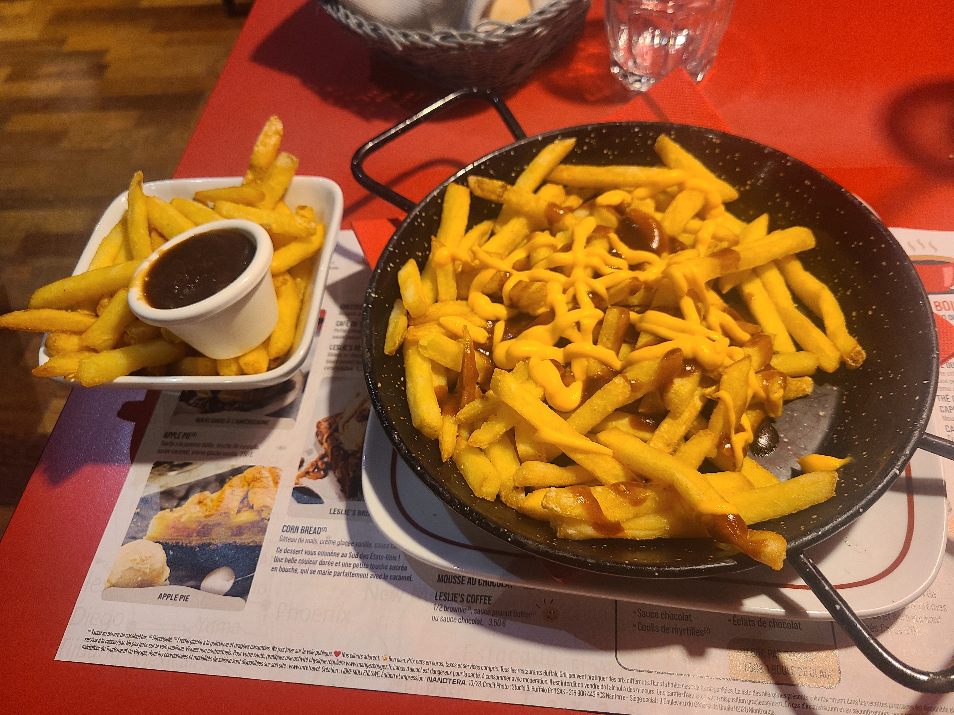Comme d'habitude on se régale . Juste dommage pour le supplément fromage raclette et bacon à 1,50 euros, et presque rien sur les frites en tout cas pas de quoi manger toutes mes frites avec, juste le dessus .