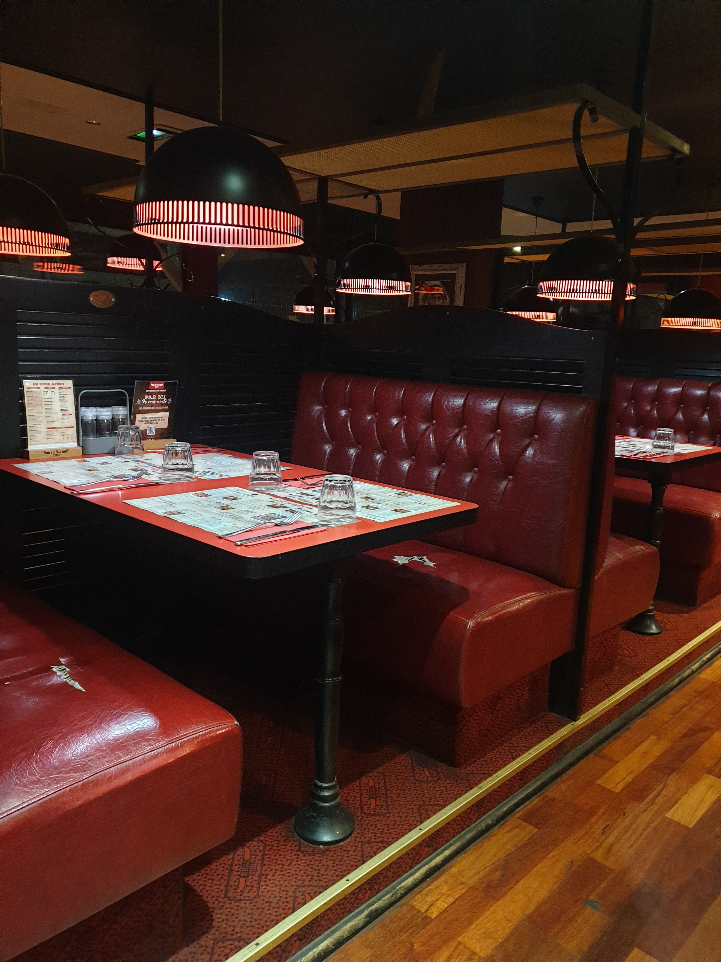 À fuir ! Lamentable, wc dans un état ihnoble excrément au sol / pas de papier toilette. Carte collante , parois qui séparent les tables pleine de graisse et de taches. Comment manger dans un environnement pareille ? À 19h30 il n’y avait déjà plus de steak tartare et de chili con carne. Cuisine qui laisse à désirer, pas de jus sur les viandes, mauvaise cuisson, sèches, ribs pas cuit, plus de gras que de viande, à 23€ le plat ça fait mal sans compter le prix 17€ du hamburger prix digne d’un vrai restaurant de Burger ce qui n’est clairement pas le cas ici c’est une évidence. Pour terminer, vin blanc coupé à l’eau, serveuse complètement dépassée et serveur à la sortie, hautain et désagréable.