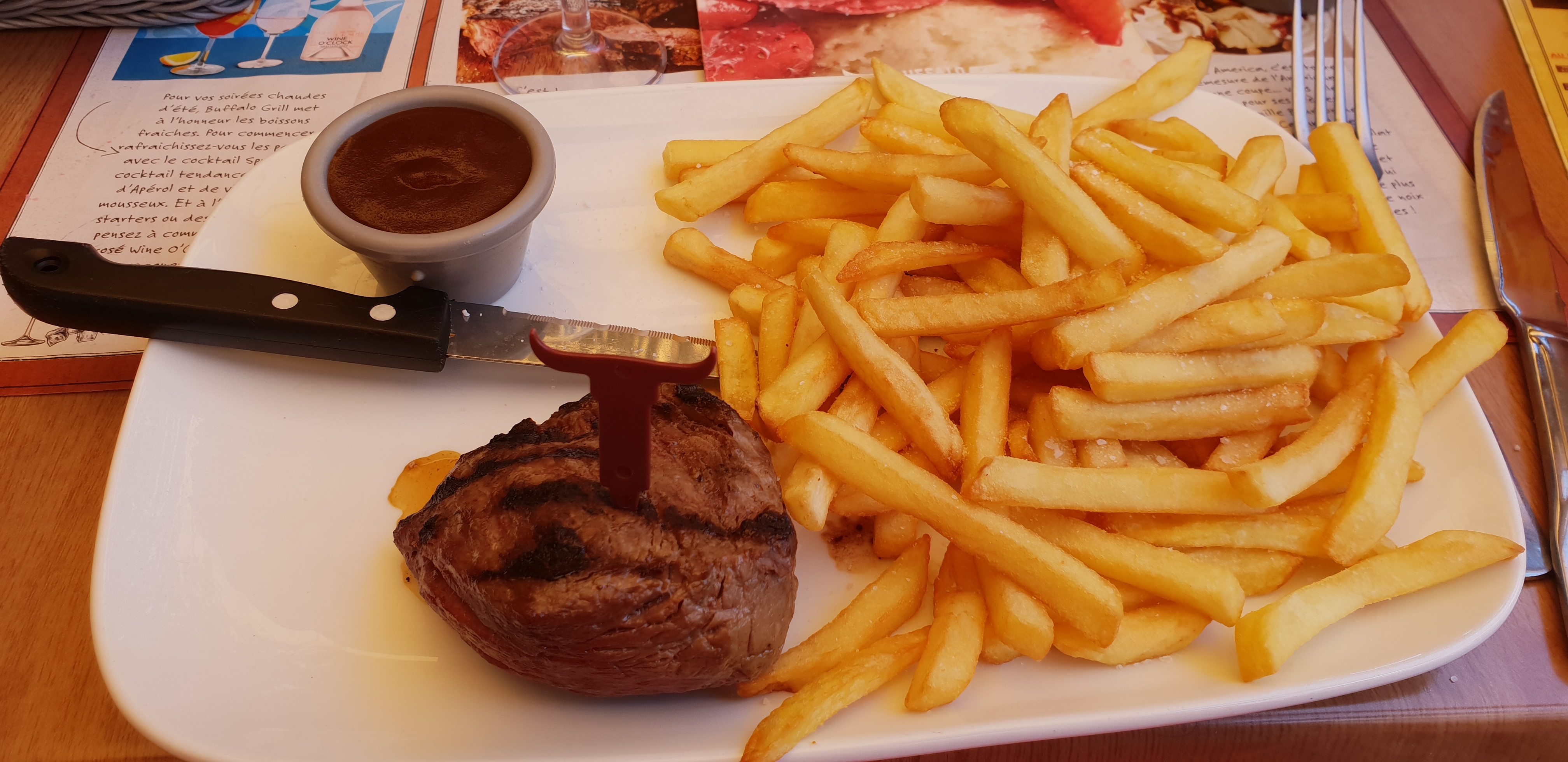 Toujours assez sympa. Du choix et de bons produits. Les tables pour 2 sont malheureusement trop petites et je ne comprends pas pourquoi la chaine Buffalo Grill s'obstine à mettre des minis jupes à leurs serveuses.