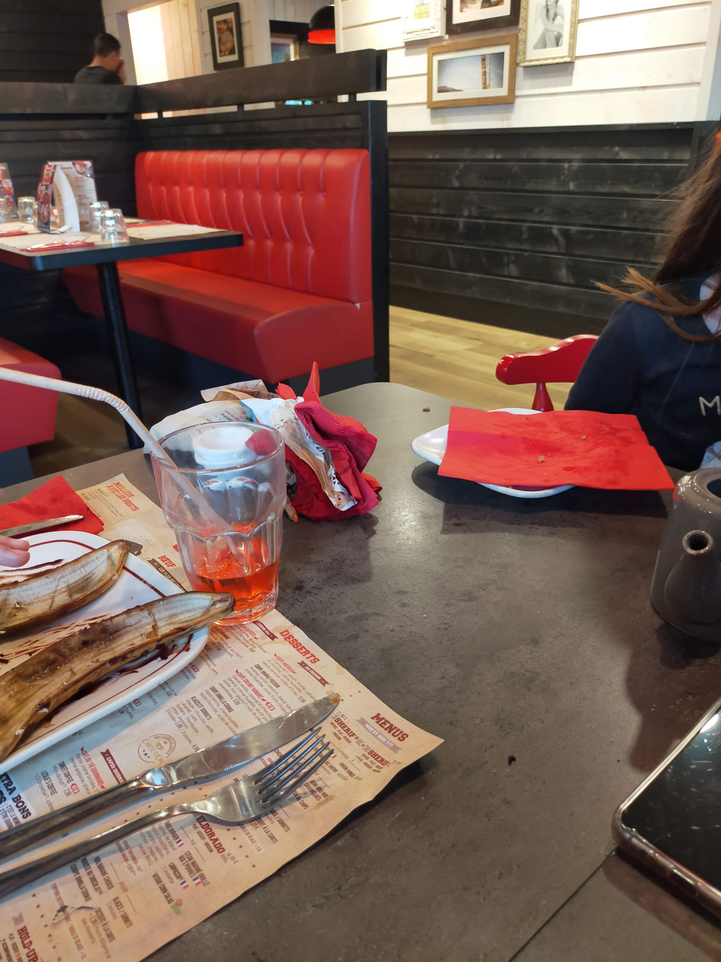 Alors pas arrivé on nous demande se qu on veux manger, une fois choisi le gosse est servi nous non moment famille en décalé quand les plats arrivent tout es froid légumes sans saveur pas de sel ni poivre sur la table pas les bonnes sauces pour le dessert on le prendra chez nous et en plus on a payer une note qui n es pas là notre bref tout es dit