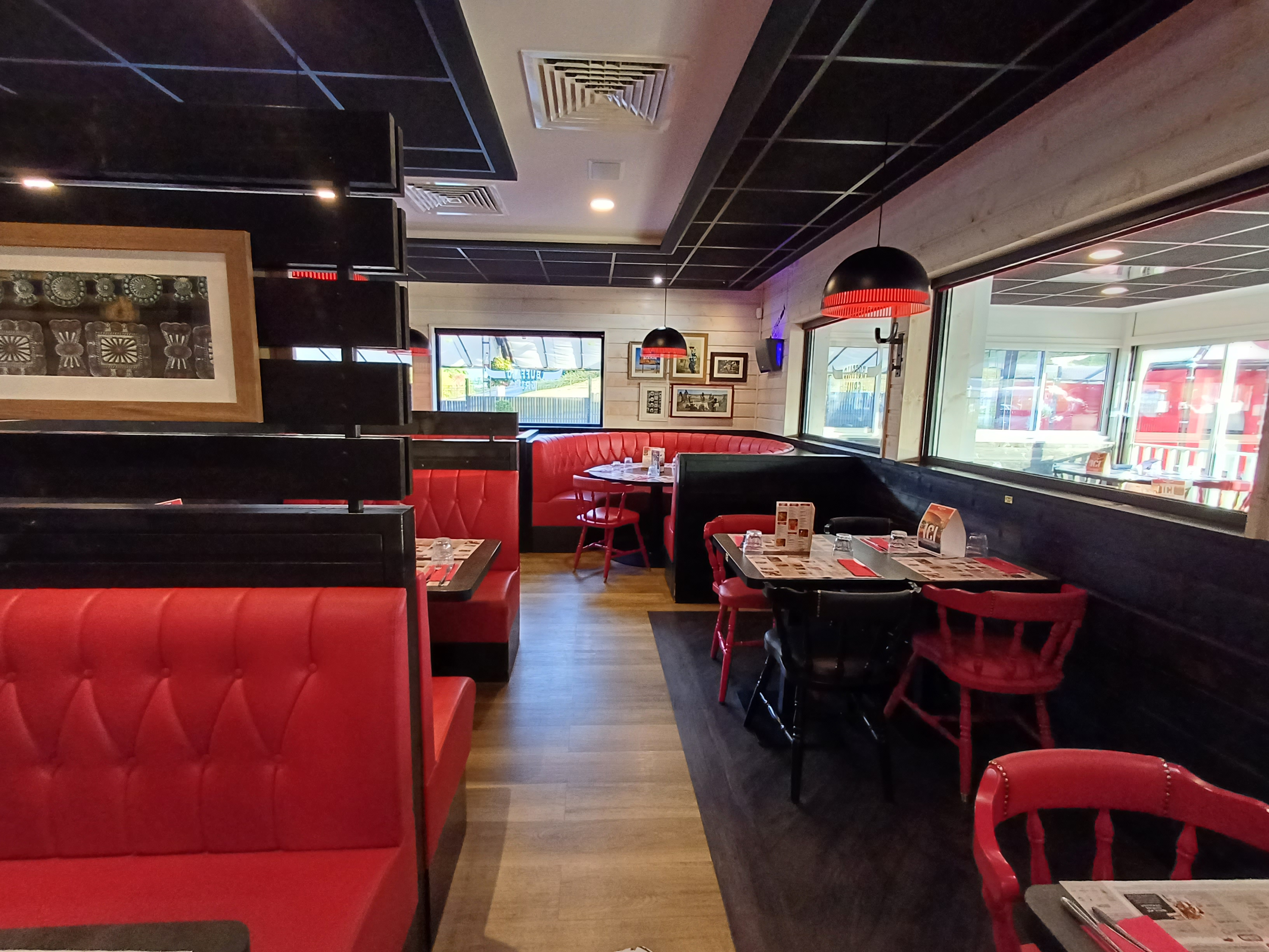 Nous sommes venu le 4 juin dans la soirée en familles Pas eu le temps de manger la salades que le serveur nous demandais la suite Quand nous avons enfin eu la suite plusieurs erreur des les hamburgers Viandes demander à point qui arrive saignante , des oignons dans un hamburger non demander, assiettes avec un morceau de viande plein de nerf donc immangeable, hamburger et les 3 assiettes servi quasi froides obliger de nous déplacer pour aller demander une carafe d eau , pourtant demander 3 fois au serveur Quand arrive enfin le dessert Le café gourmand ( si on appelle ça comme ça) la crème brûler non faites maison mais en brique . La glace 2 boules avec des morceaux de glaçon dedans Je sais pas qui est a la cuisines, mais manque de formations Ce n est pas un restaurant que je retournerai A fuir