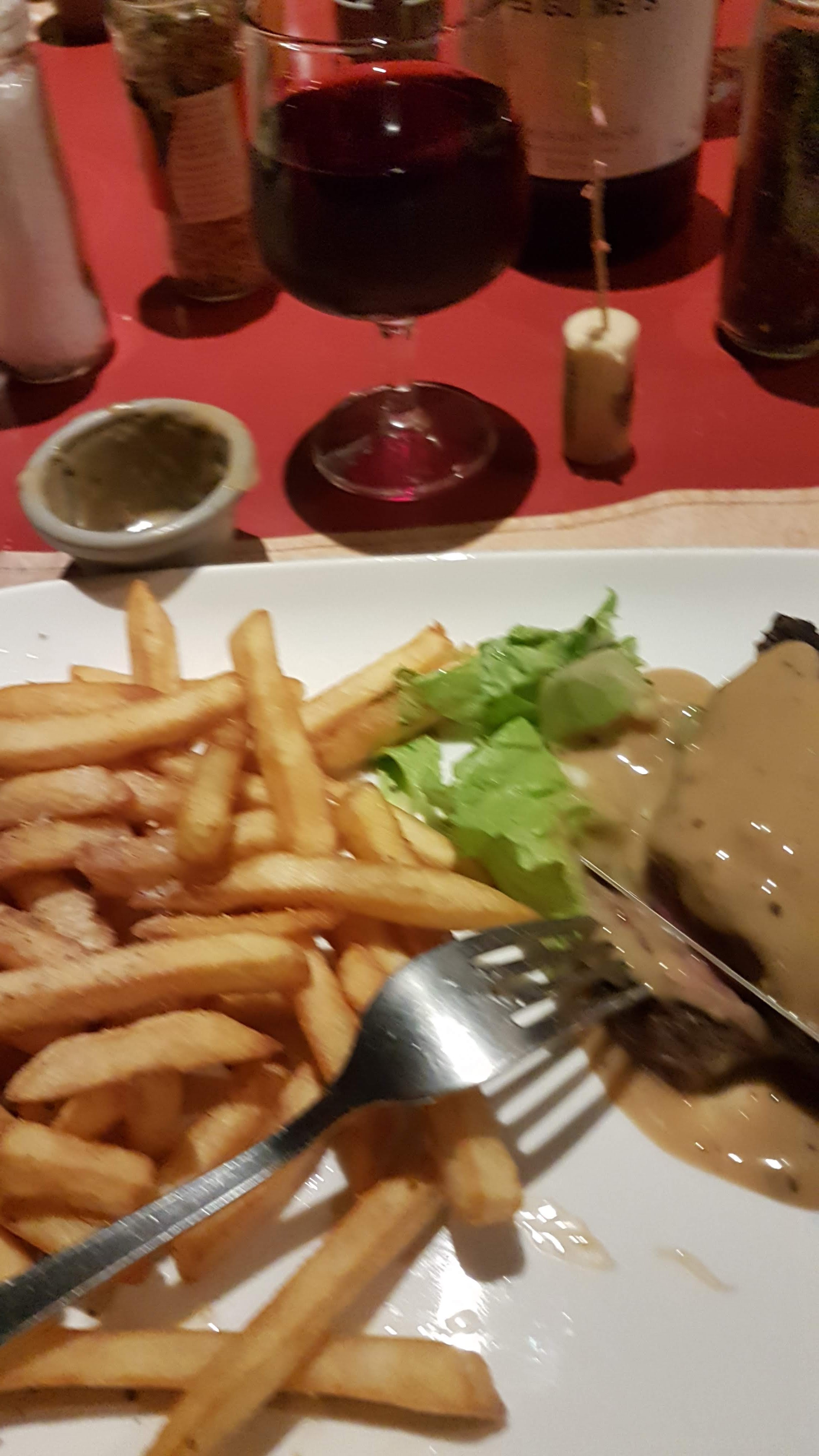 Nous y sommes allés un samedi, nous étions 2. L’accueil était moyen, nous avons attendu assez longtemps avant de pouvoir nous installer. La salade d’accueil est vraiment pauvre, la mienne était ridicule 3 bouts de feuilles, même si elle est gratuite essayer de faire au moins pareil par table. Les plats sont fidèles à eux-mêmes depuis des années. Les frites seraient meilleures faites maison évidemment. Je voulais y retourner pour me rappeler des souvenirs mais je suis assez déçu. Et l’ambiance du rush du samedi se fait ressentir, ce qui n’est pas très agréable, dommage. Aujourd’hui vous trouvez des restaurants de meilleurs qualités pour moins cher ou équivalent...