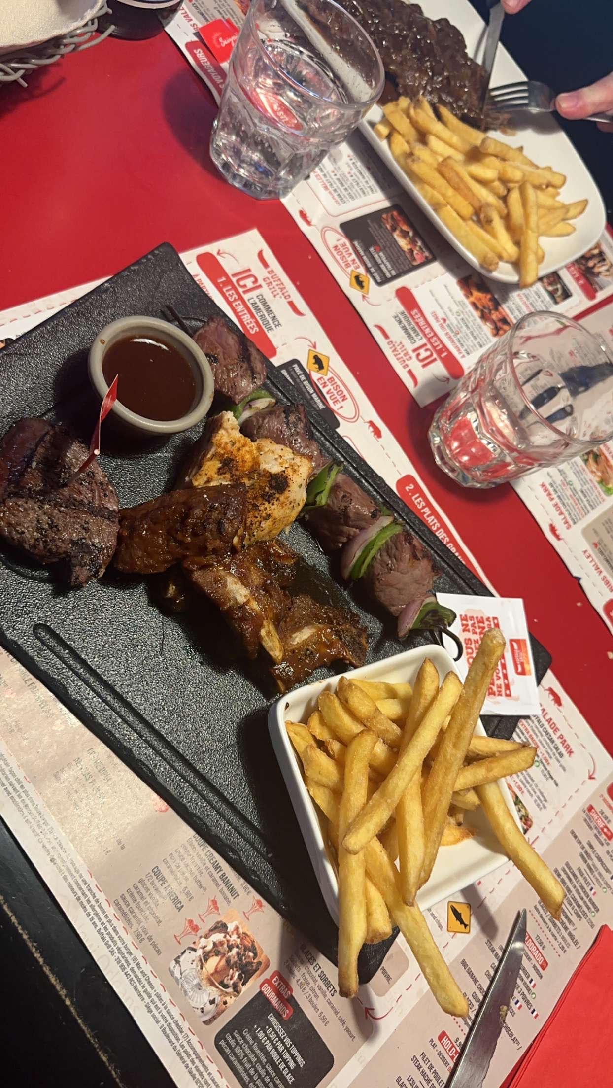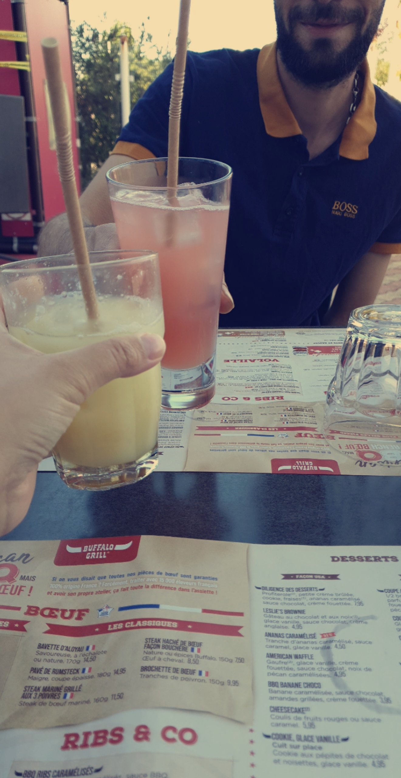 Super restaurant super equipe toujours bien reçu par l'équipe du buffalo , que sa soit lea-formation qui gère ces tables et qui a bien gérer notre service du début jusqu'à la fin mon Virgin moritho que je n'est pas en photo car je les kiffer direct que sa soit cocktail comme plat chaud et même dessert juste succulent.. Que sa soit David, Raphaël, Clémence , ilyam le barman, Kévin, eddy , typhaine est ainsi la petite lea-formation il geres de ouff top top ... même les personnes qui ce trouve derrière en cuisine il nous sert de bonne assiette est font de belle présentation le buffalo de loudeac je recommande que sa soit l'équipe comme la saveur de nos plats 😉😁