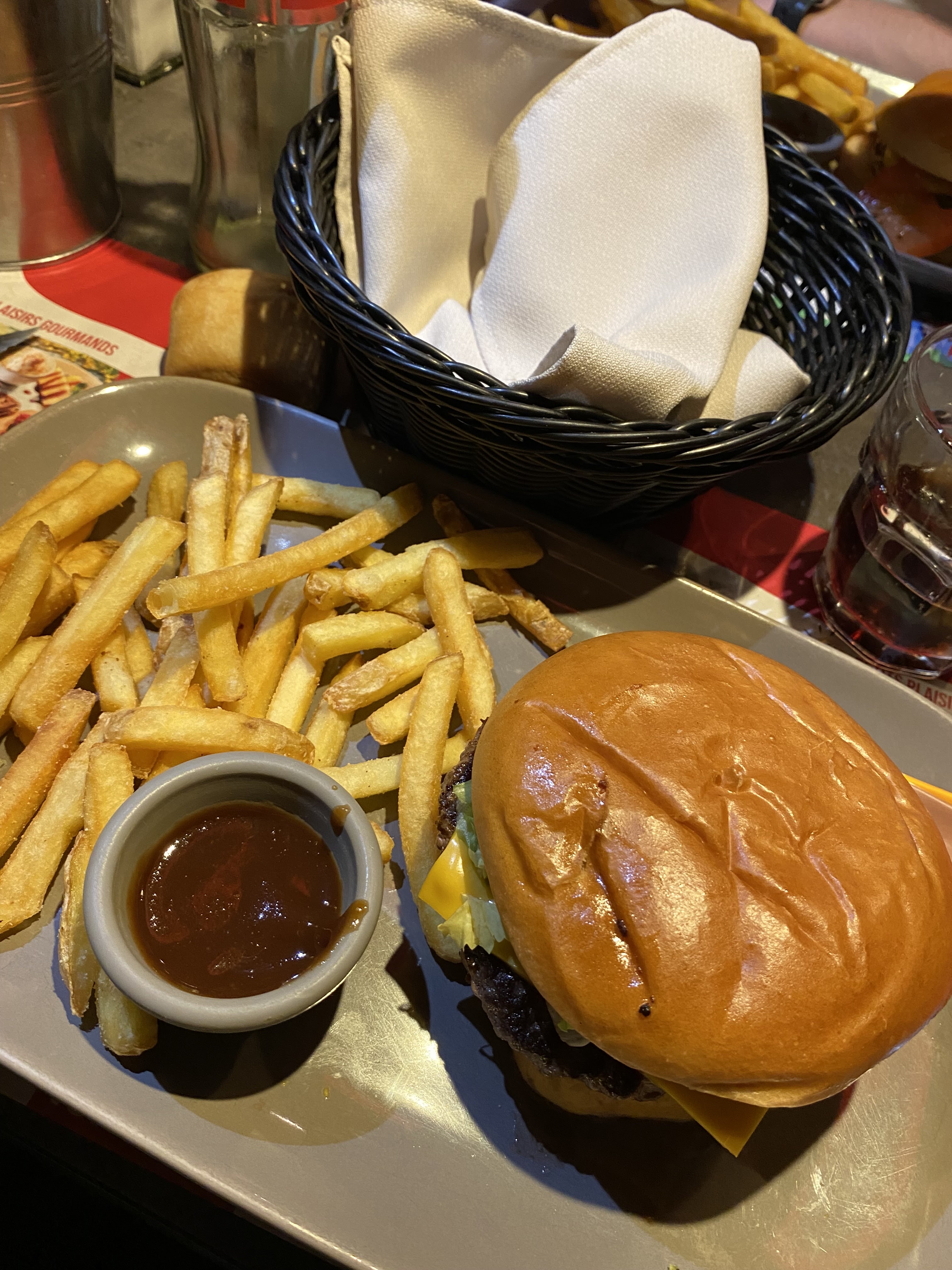 Accueil un peu froid ! Pain très mou, salade d'accueil en faible quantité tous comme les frites d'accompagnement ! Je ne parlerai pas du steak hachés de quelques grammes dont la cuisson a point ressemblait au semelles de ma chaussure ! Et le filet de poulet cajun de bon goût mais dont la cuisson le rendait suffisamment sec pour le qualifier d'étouffer chrétiens ! Mauvaise expérience si on écarte les frite!