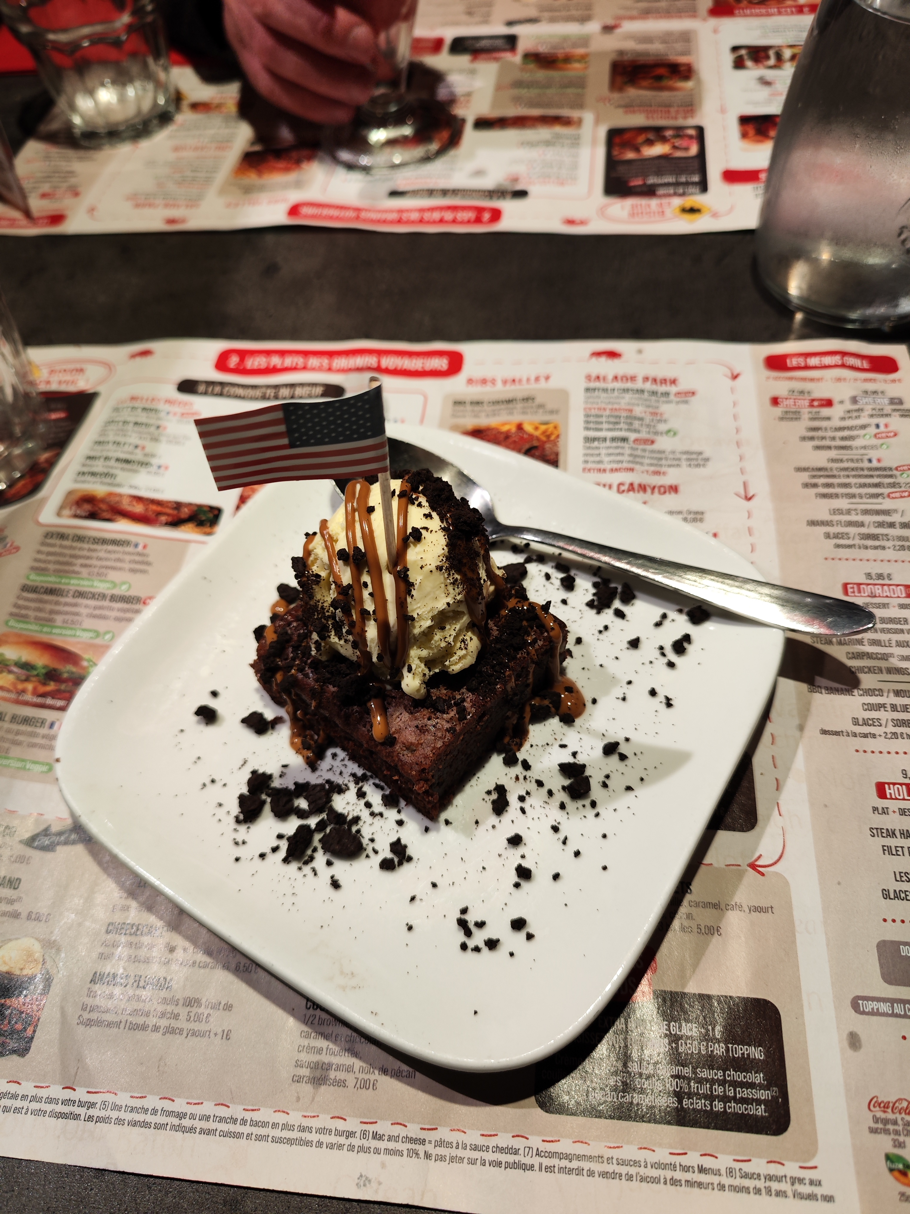 Dessert non conforme à la description, menthe fraîche réclamée. La serveuse dit que c est une simple décoration...elle me rapporte une feuille de menthe flétrie entre son pouce et index qu elle me dépose ds l assiette. Bonjour l'hygiène !!!