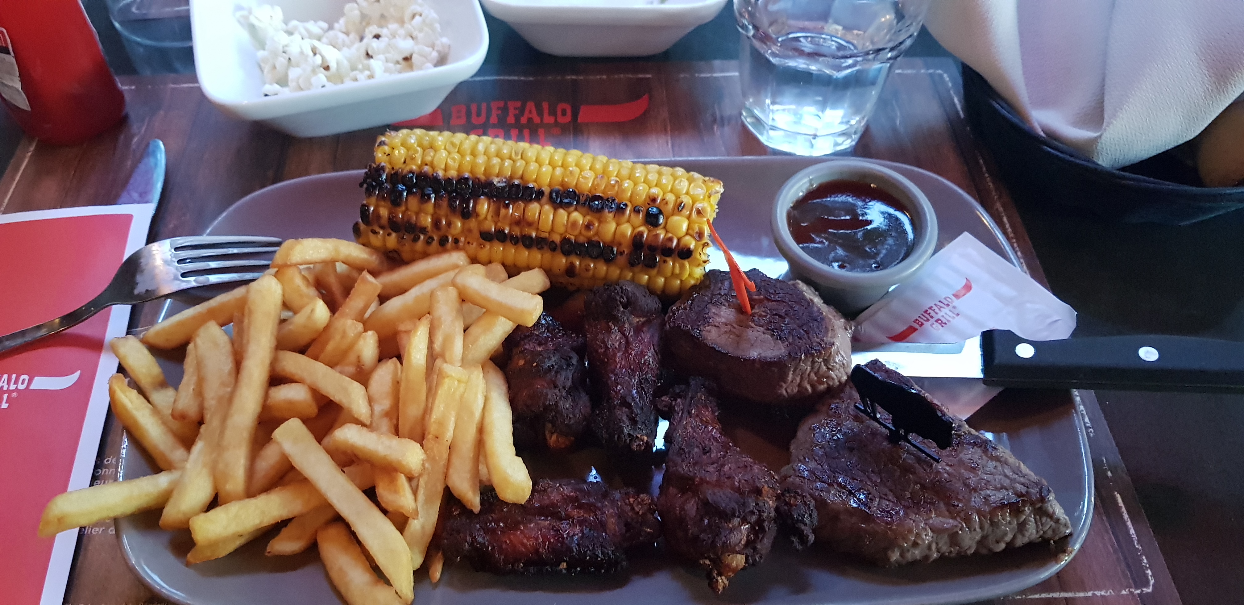 Ce n'était pas prévu on s'est arrêté à la dernière minute Accueil/ aimabilité/ propreté/ ambiance Tout était parfait à mon goût = Petite salade d'accueil très important car de nos jours il y en a plus nulle part = petit pain chaud à volonté = la cave d'eau très important apporter sans qu'on le demande = seul petit bémol l'addition forcément il faut la payer ( c'est normal ) 🤪🤪 Je remercie toute l'équipe du Buffalo Grill