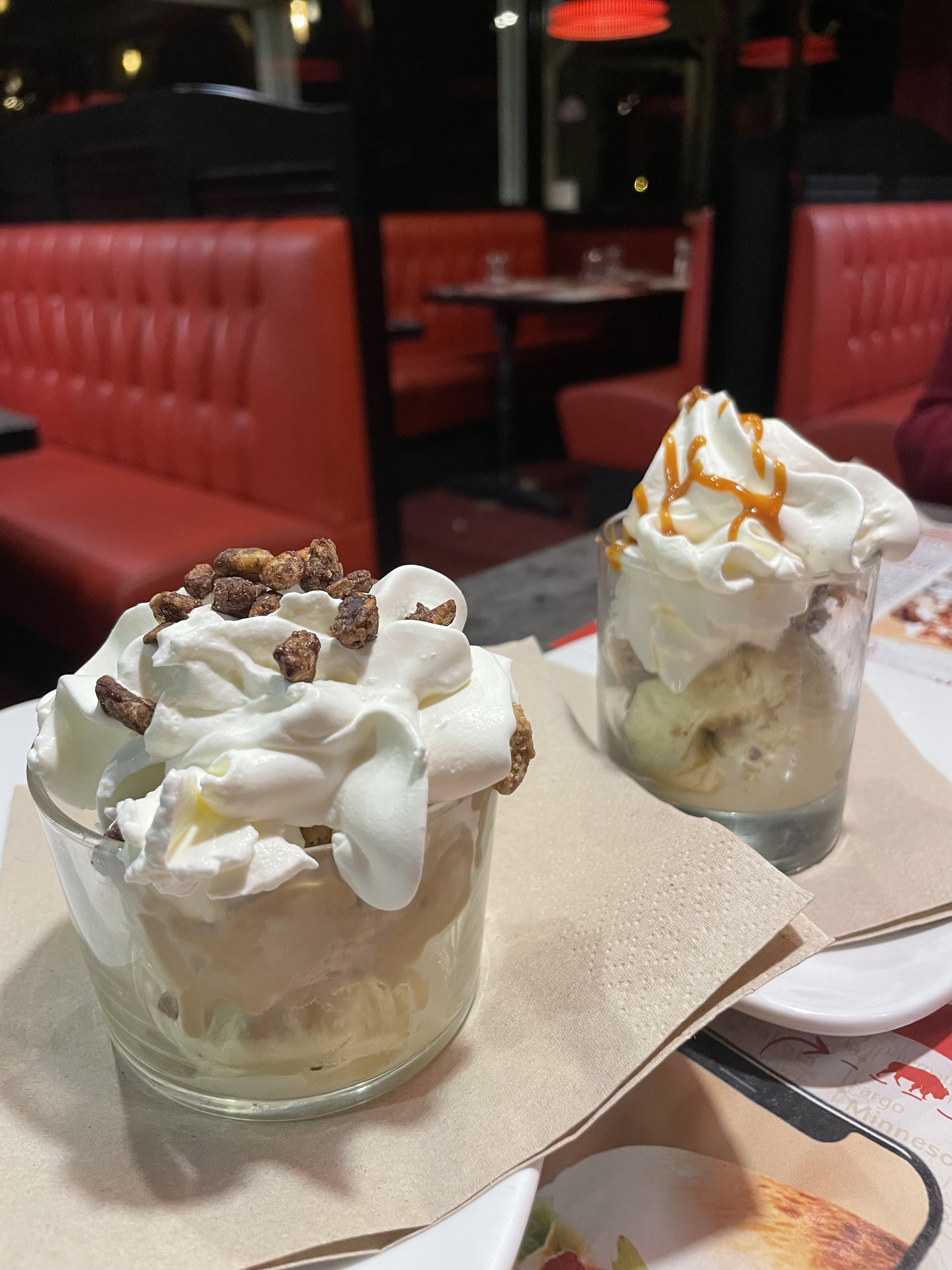 Lieux ma fois très sympathique, petit jeu au dos du menu plus ou moins drôle mais cependant on m’a mie de la sauce peanut butter à la place de celle au chocolat, mais en vrai elle était pas mal.
