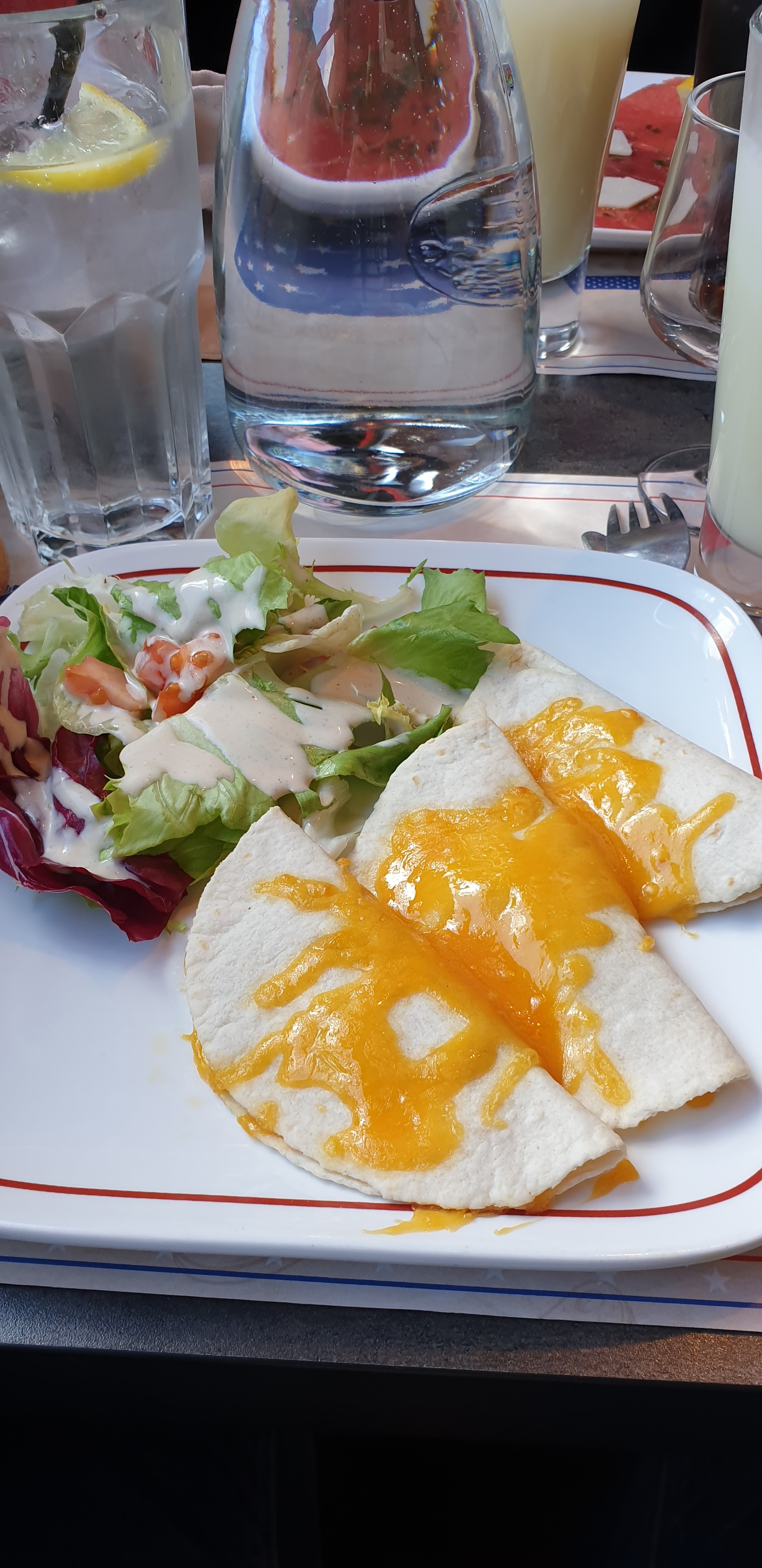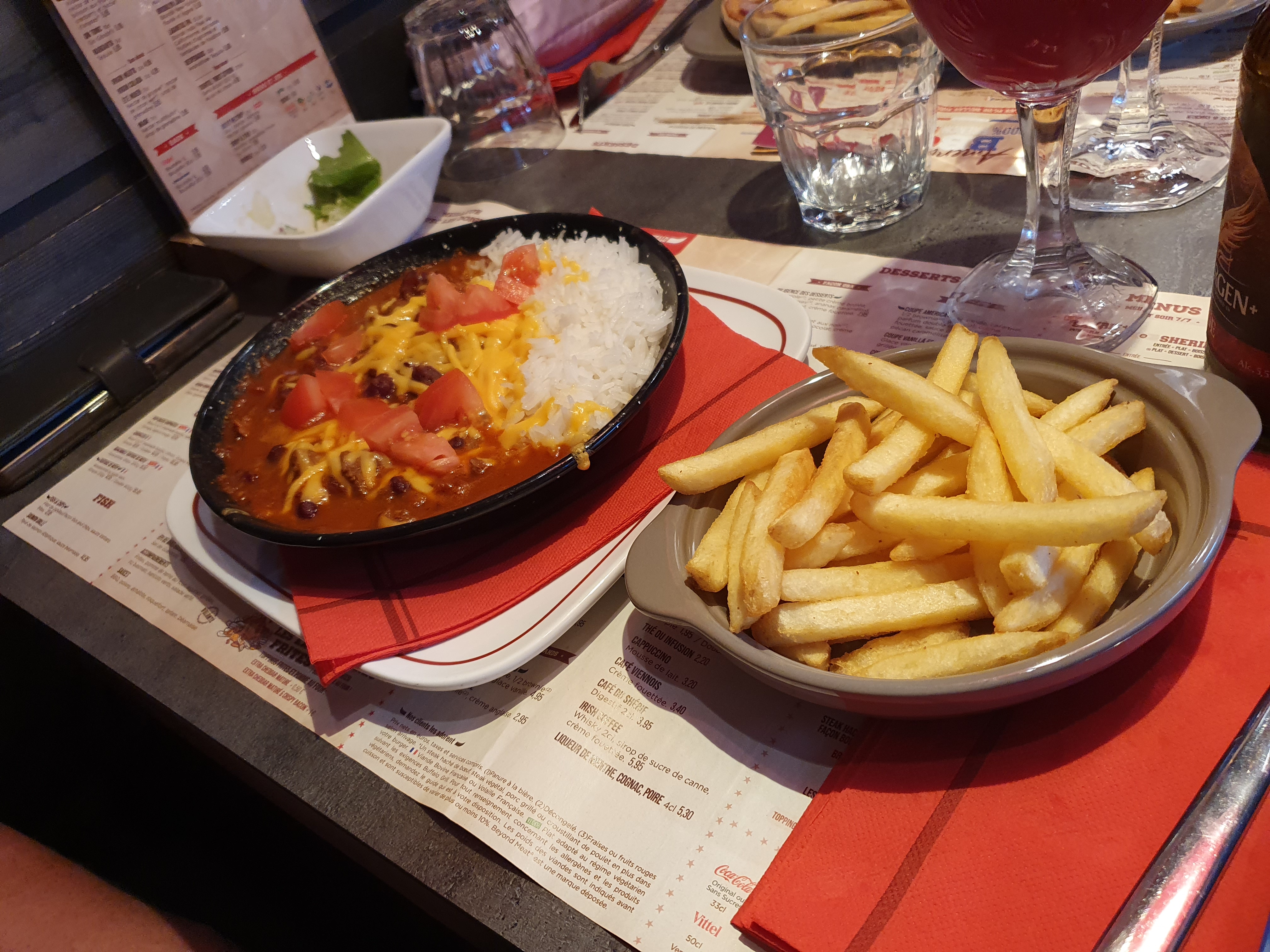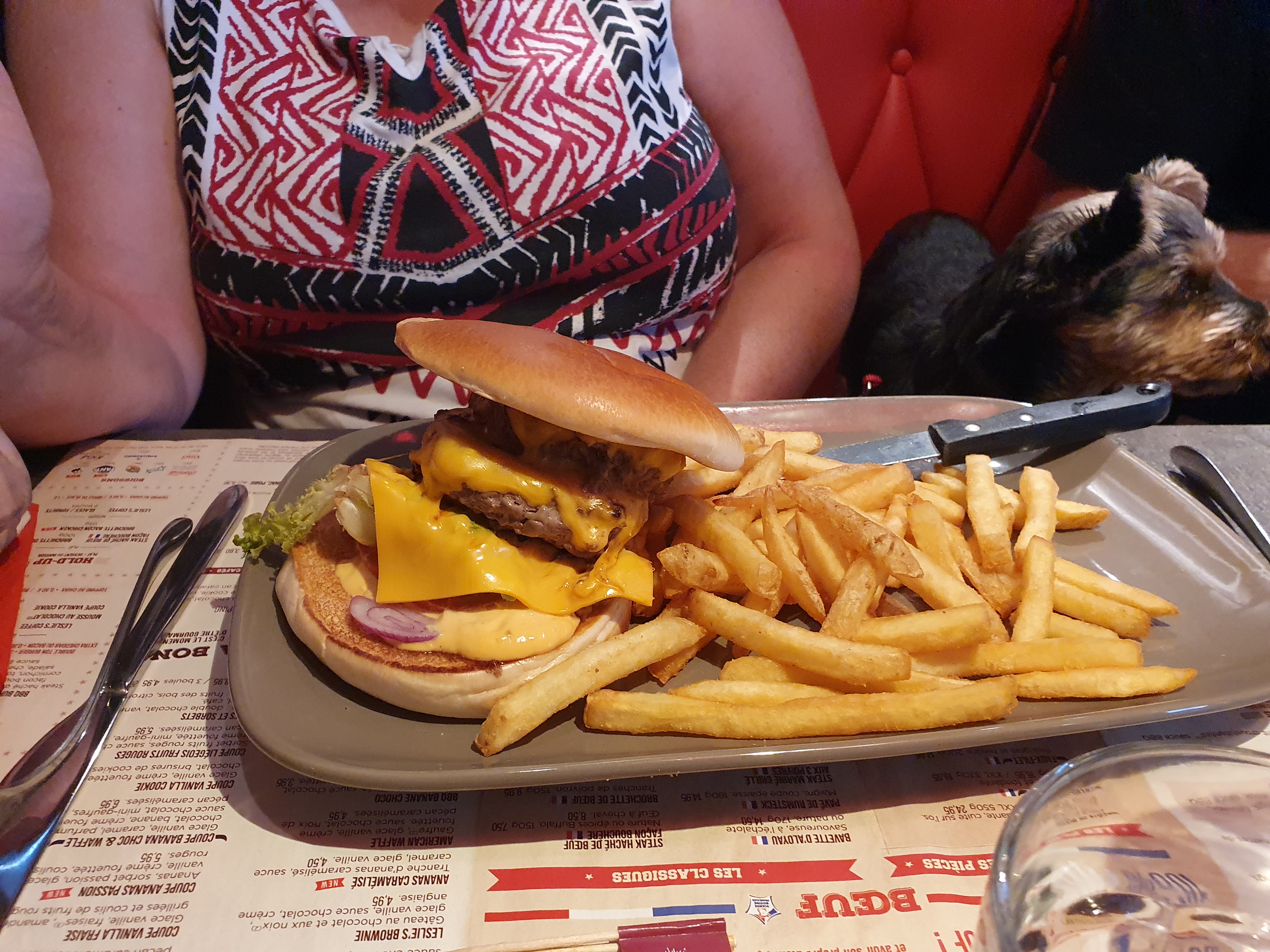 Nous avons était très bien accueilli avec notre petit yorkshire à l'intérieur du restaurant, poulet cajun bien épicé, Chili con carne pas mauvais mais étrange avec du cheedar... hamburger double bon, petite salade offerte en apéritif. Serveuse gentil mais un peu débordé à oublier la salade la sauce et les a ramené quasiment à la faim du repas. Prix raisonnable.