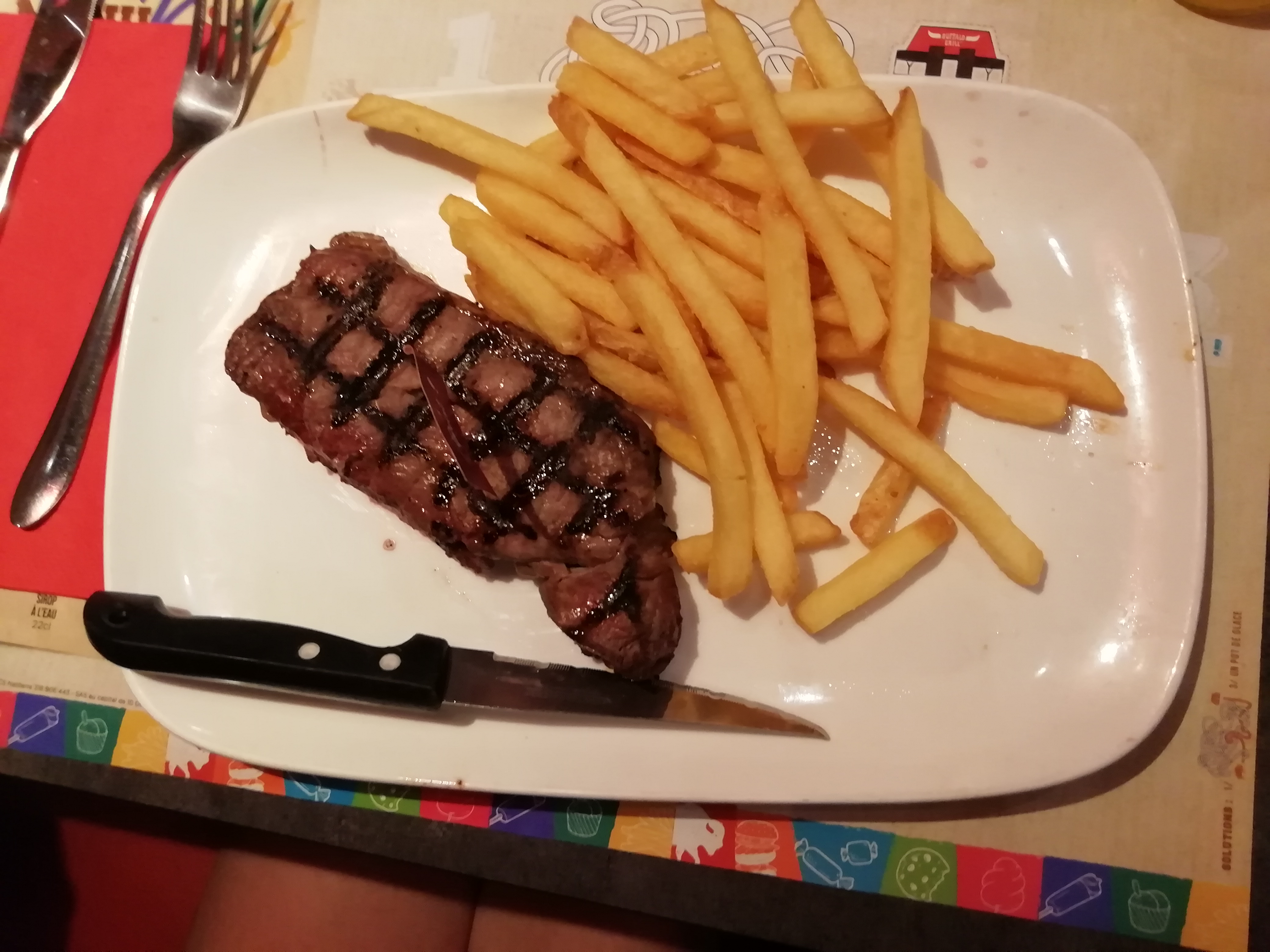 J'ai pris un menu ELDORADO avec steak mariné la viande est très dure, et la quantité de la garniture des assiettes et aléatoire. Et pas suffisant. Autrement le reste ça allait.