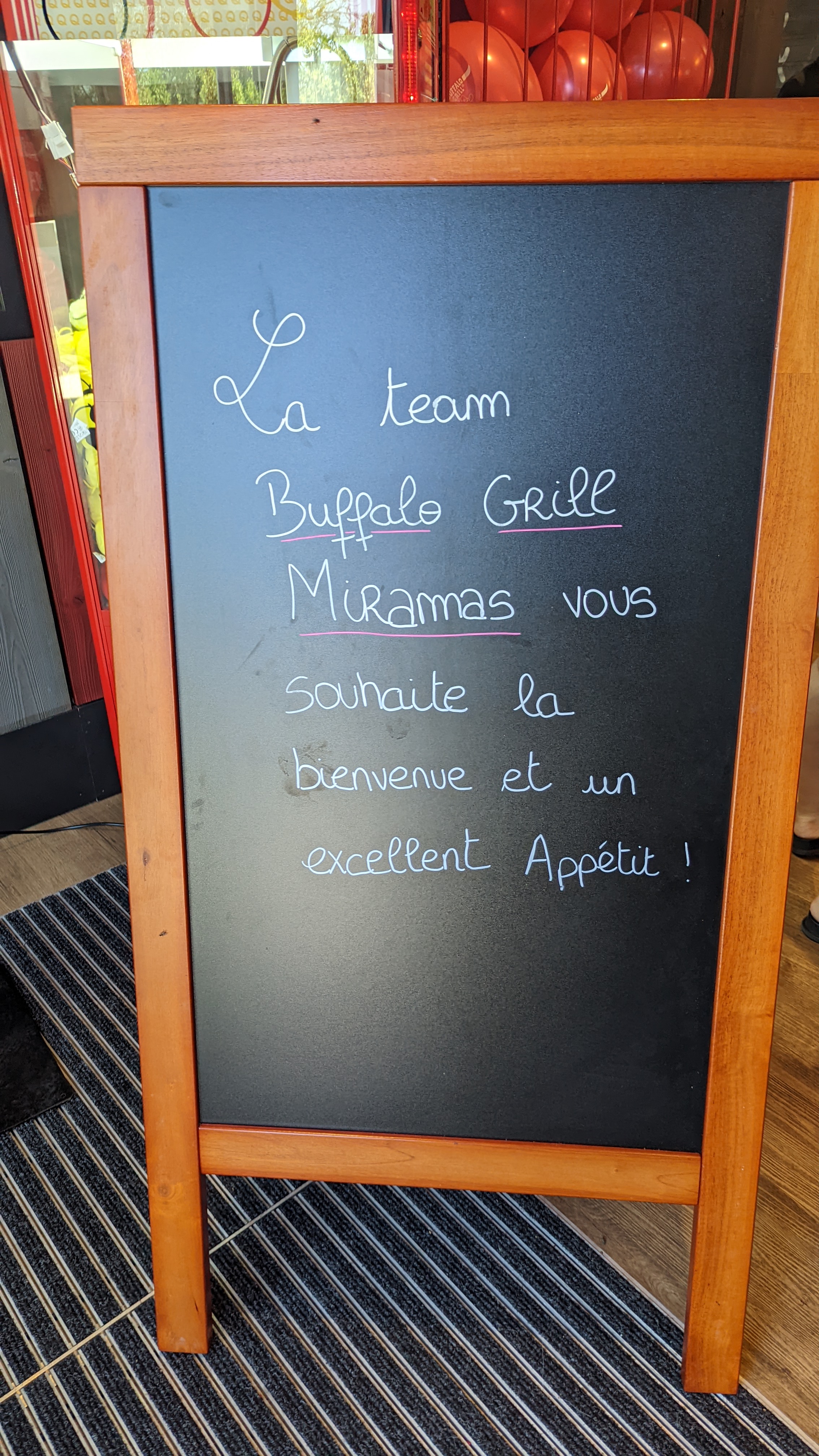Le Buffalo grill avec le personnel le plus sympa. Hyper accueil et gentils. Malheureusement, le grill n’est clairement pas nettoyé assez souvent et le goût de brûlé se retrouve sur toutes les viandes. Ce qui masque le goût.