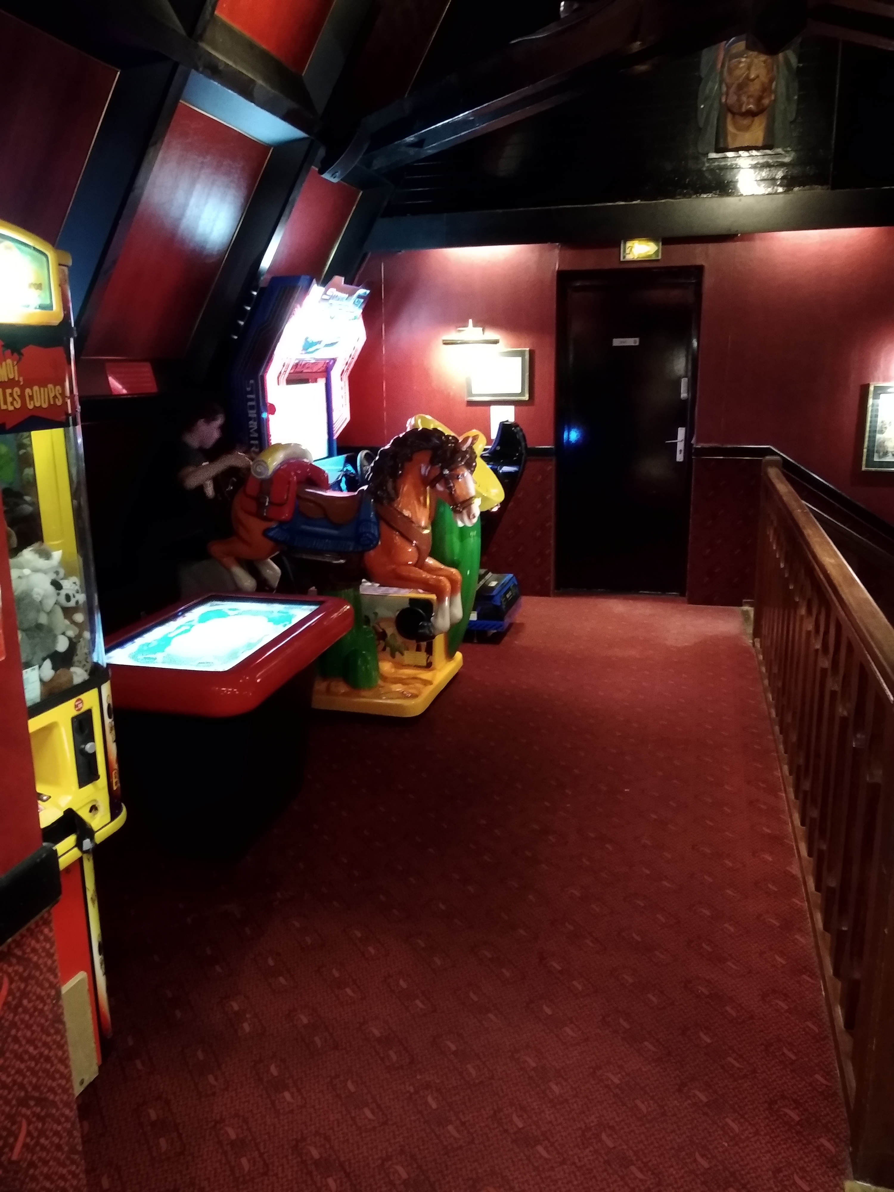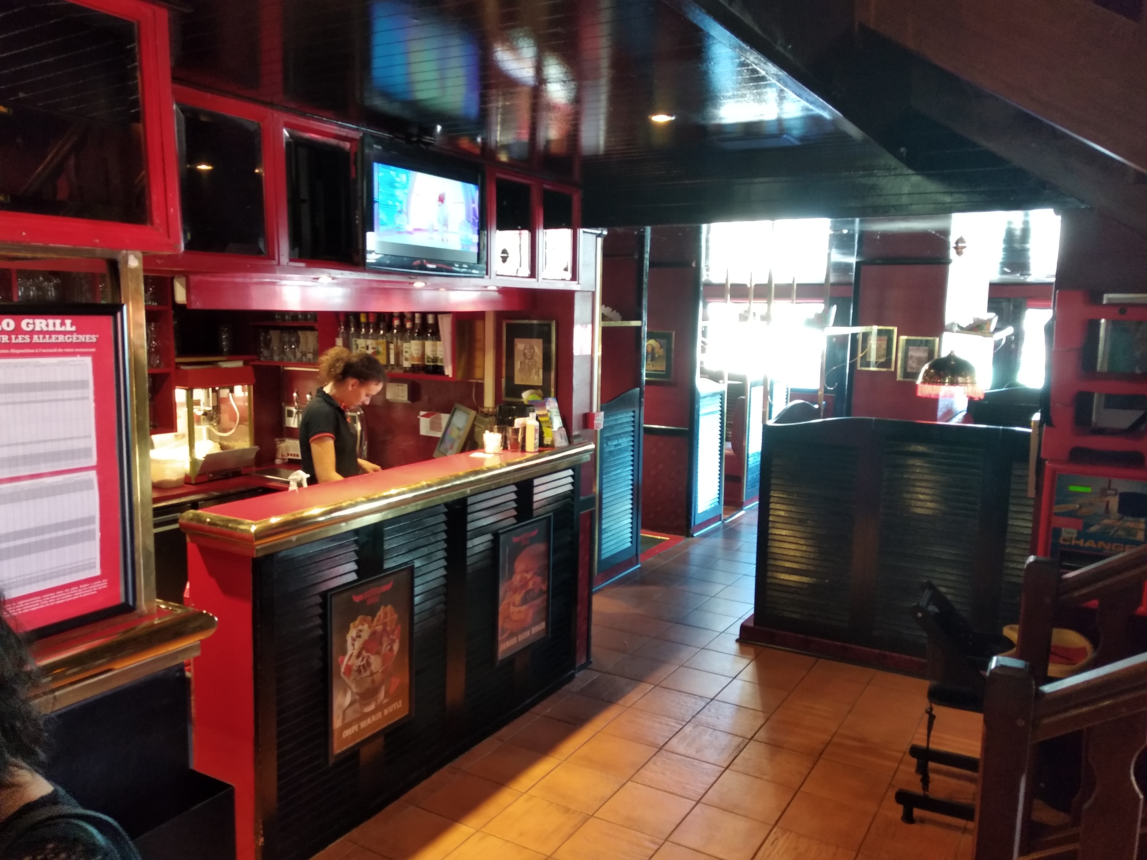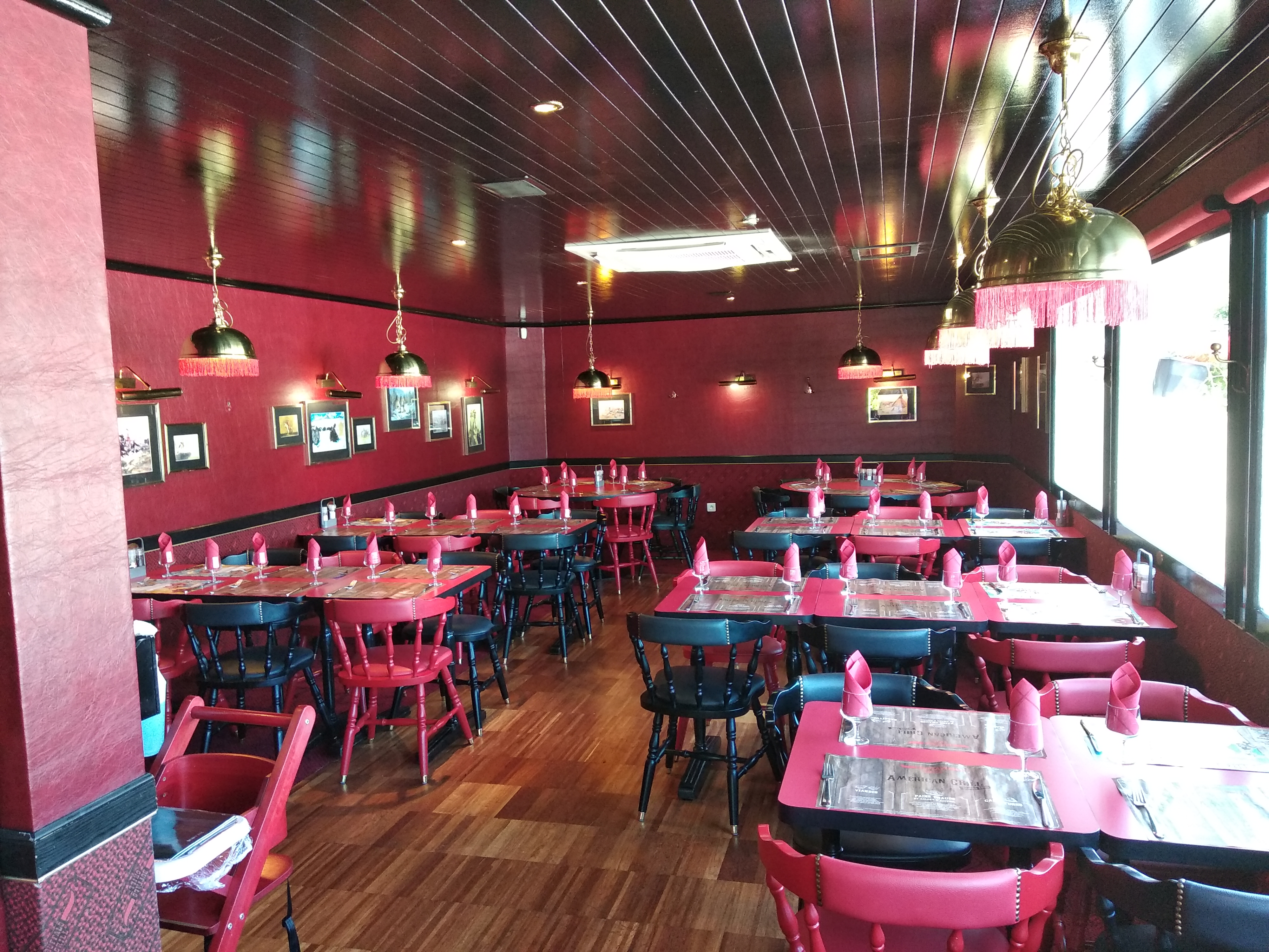 Le décor rouge bordeaux, feutré, intimiste 💞, dans les petites alcôves, est épatant !Idem pour l'ambiance farwest, avec son shérif manager🤠 qui est venu voir si rien ne manquait !!! Des jeux pour les enfants...... ça, c'est génial ! Je salue le personnel pour son écoute 👂, et sa patience car nous étions nombreux !! quand à mon menu : le carpaccio de bœuf manquait un peu de saveur, pas assez mariné ! Mais le faux filet 🥩 était parfait ! Je m'y suis largement retrouvé sur le tarif 🤑avec un menu complet et café ☕!!.... très propre, ce restaurant m'a laissé une bonne impression et,....... je le conseillerai 🎉🤗