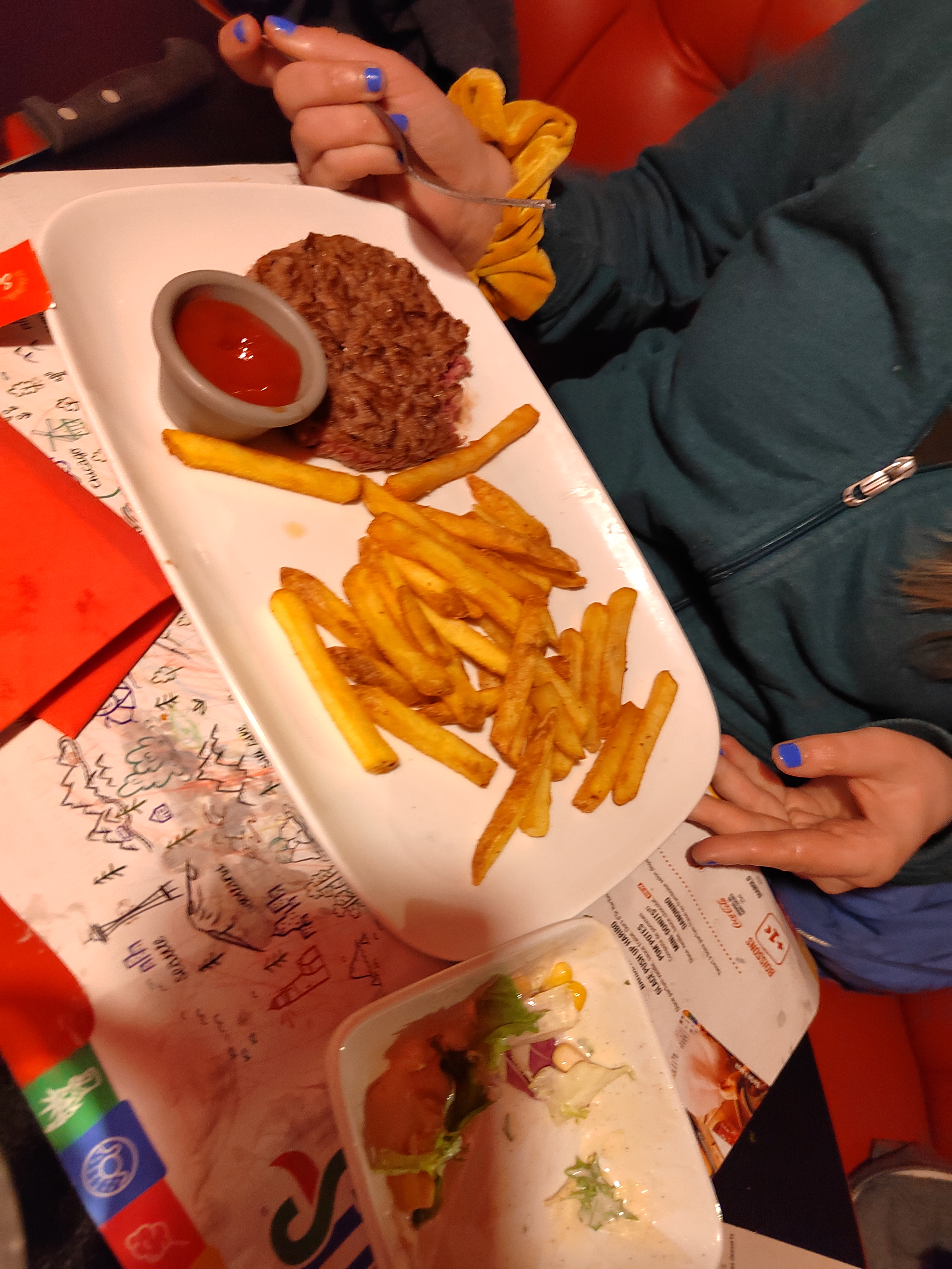 En arrivant c'était l'un des seuls restaurants avec de la place sur le parking on a vite compris pourquoi. 😅 Mon burger était plus que froid mais on me l'a chaleureusement réchauffé au micro onde autant vous dire ce n'était pas excellent. La machine à barbe à papa pour le menu enfant est en panne depuis plusieurs années mais une belle photo est sur la carte. J'en veux même pas au manager qui quand je lui ai dit avait l'air plus dépité que moi. À côté même mc do c'est du gastro. Si quand même les frites étaient bonnes,on est sauvé !!!!