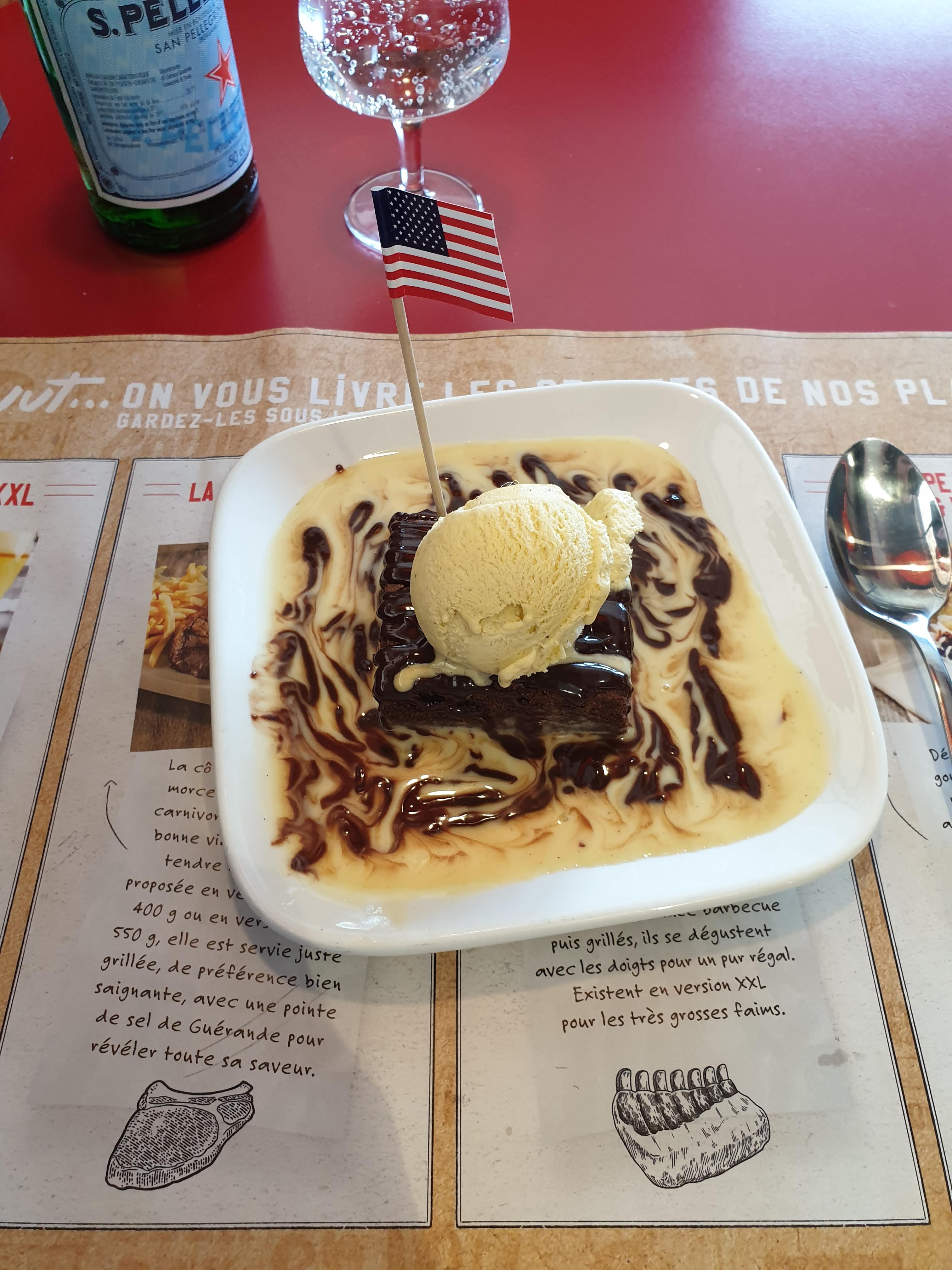 Sur la route des vacances nous sommes habitués à nous arrêter dans un restaurant de la chaîne Buffalo. La je peux dire que j'ai été déçue. Les assiettes sont arrivées tièdes et la qualité ressemblait à celle d'une cantine ( c'est à dire moyen mais pas bon non plus). Pour ne pas finir sur cette idée, on commande des cafés gourmands ( normalement sans surprise) si le brownie était bon, la crème brûlée n'avait pas trop de goût et il y avait des cristaux d'eau glacée dans la glace vanille. Dommage !