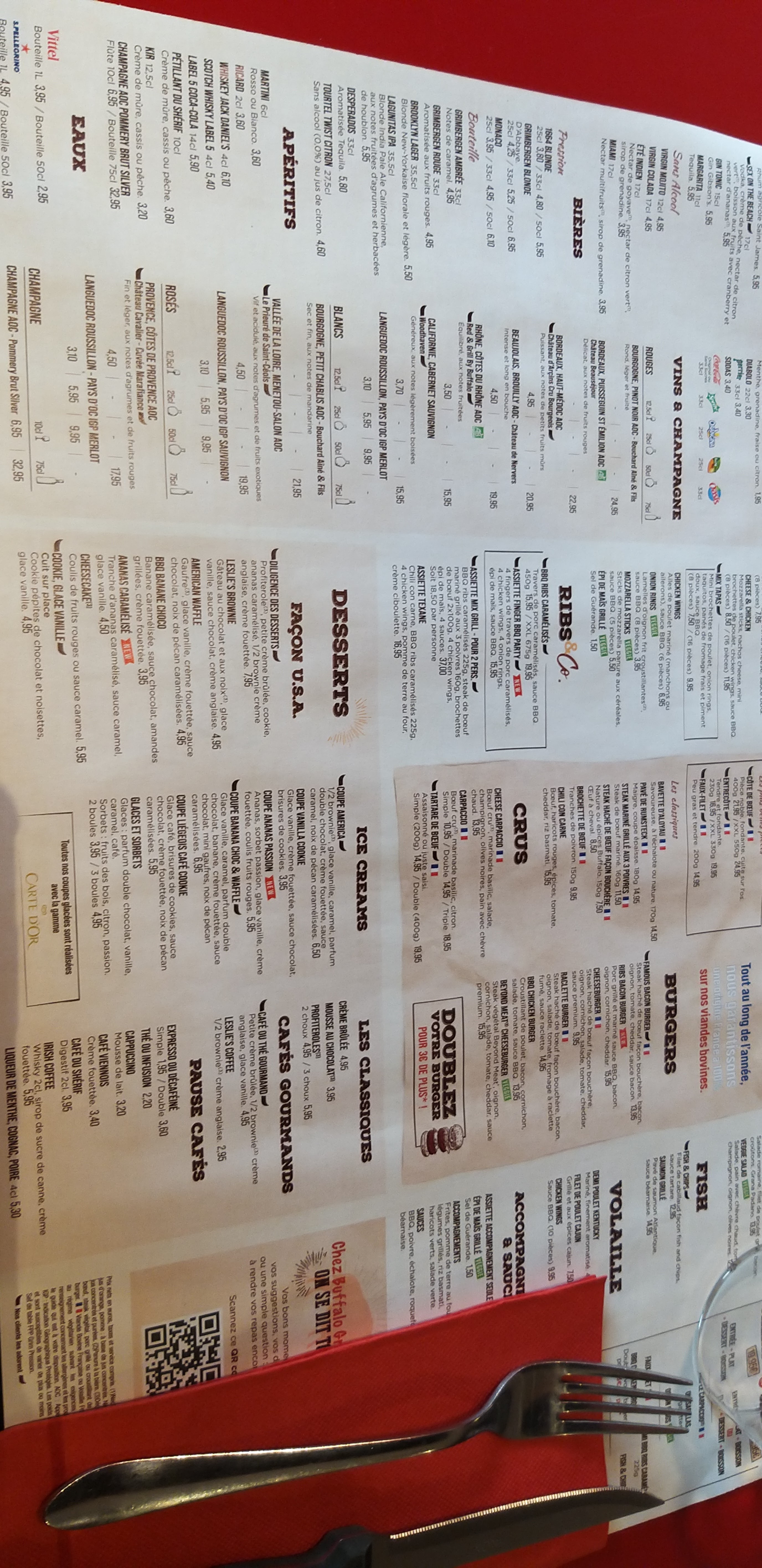 Ça a beaucoup baissé, c’est dommage, l’équipe est sympathique, mais c’est beaucoup moins bon rapport qualité prix que dans le temps, les quantités ont baissés, le menu kids devrait avoir une boisson comprise je vois pas pourquoi on doit payer 1 euros de plus, les salades d’accueil avant étaient plus fournies là c’est vraiment risible, Buffalo c’était l’endroit familial où on pouvait manger pour pas cher, la on se retrouve avec 2 menus adultes le moins cher + un menu kids..plus de 40 euros sans cocktails ni tapas…c’est trop cher pour du surgelé…et on a faim en ressortant …dommage