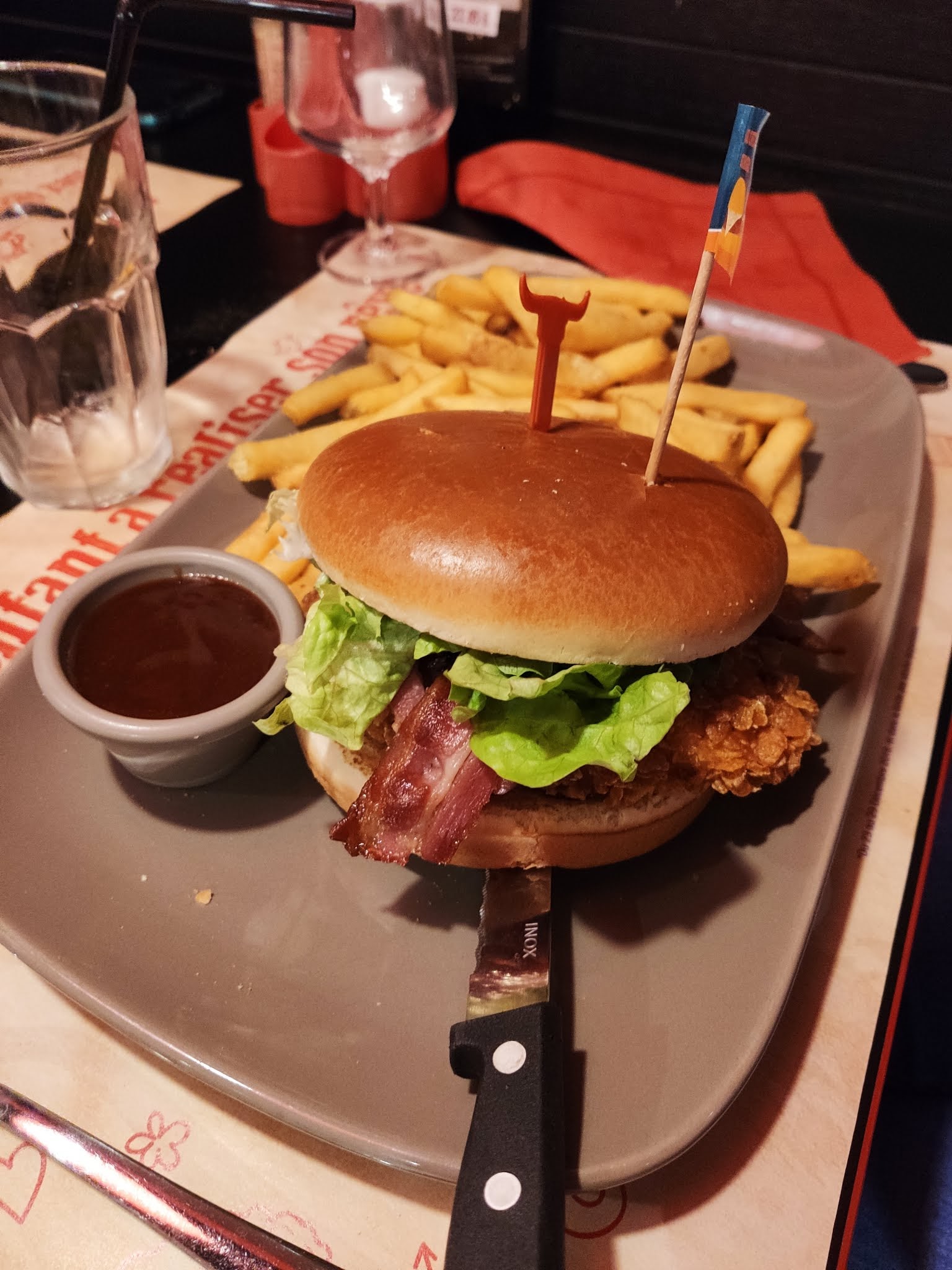 Nous sommes des fideles clients car nous venons au.moins une fois par mois. J'ai voulu choisir ma place car pas à mon aise sur une banquette et la dame.qui nous a accueilli à catégoriquement refusé. Entrecôte et burger extra. Peu de frites Pas de pain à table dommage C'était mieux il y a quelque mois ou tout été parfait . Nous sommes reparti nous avions encore faim .
