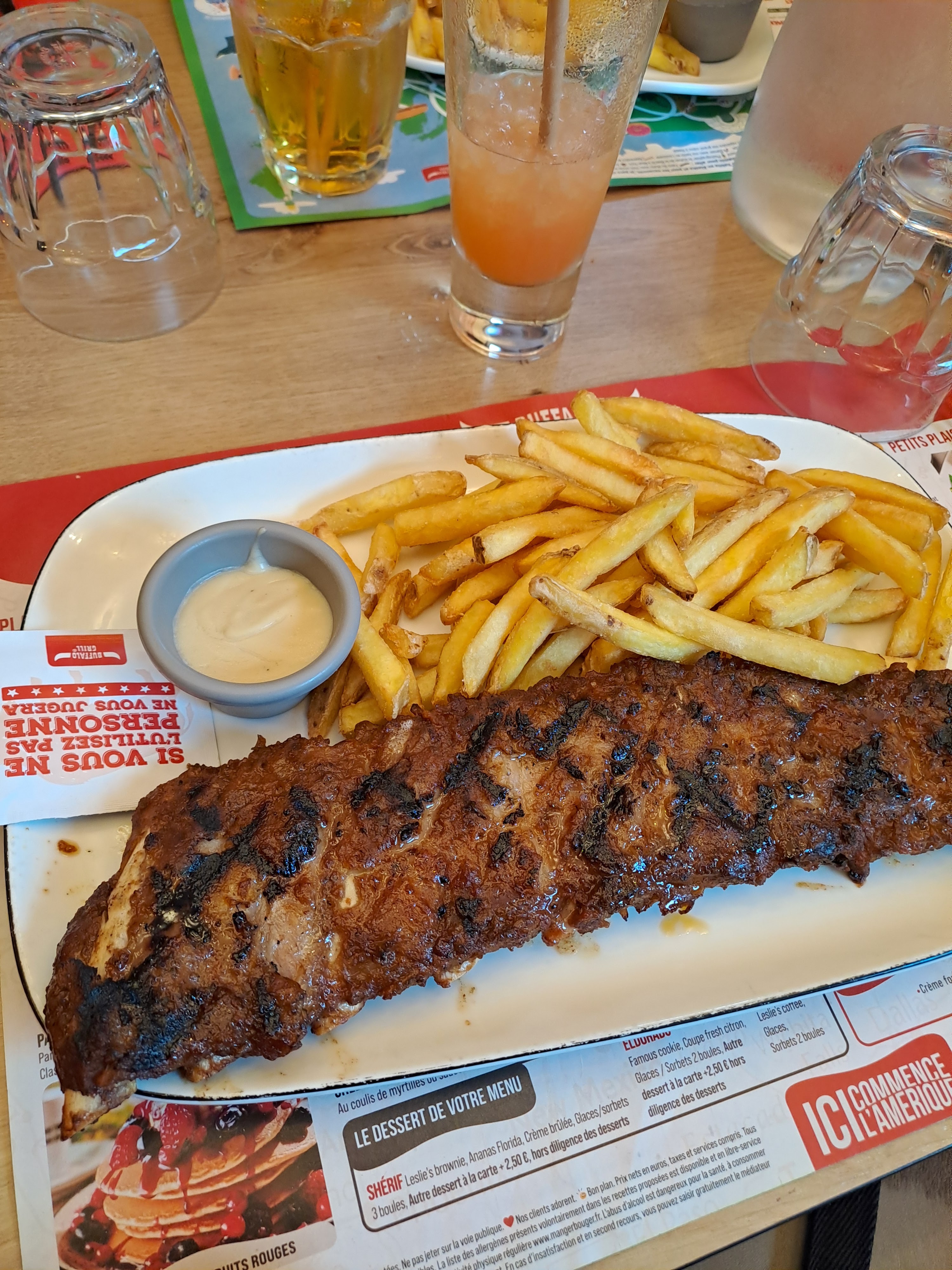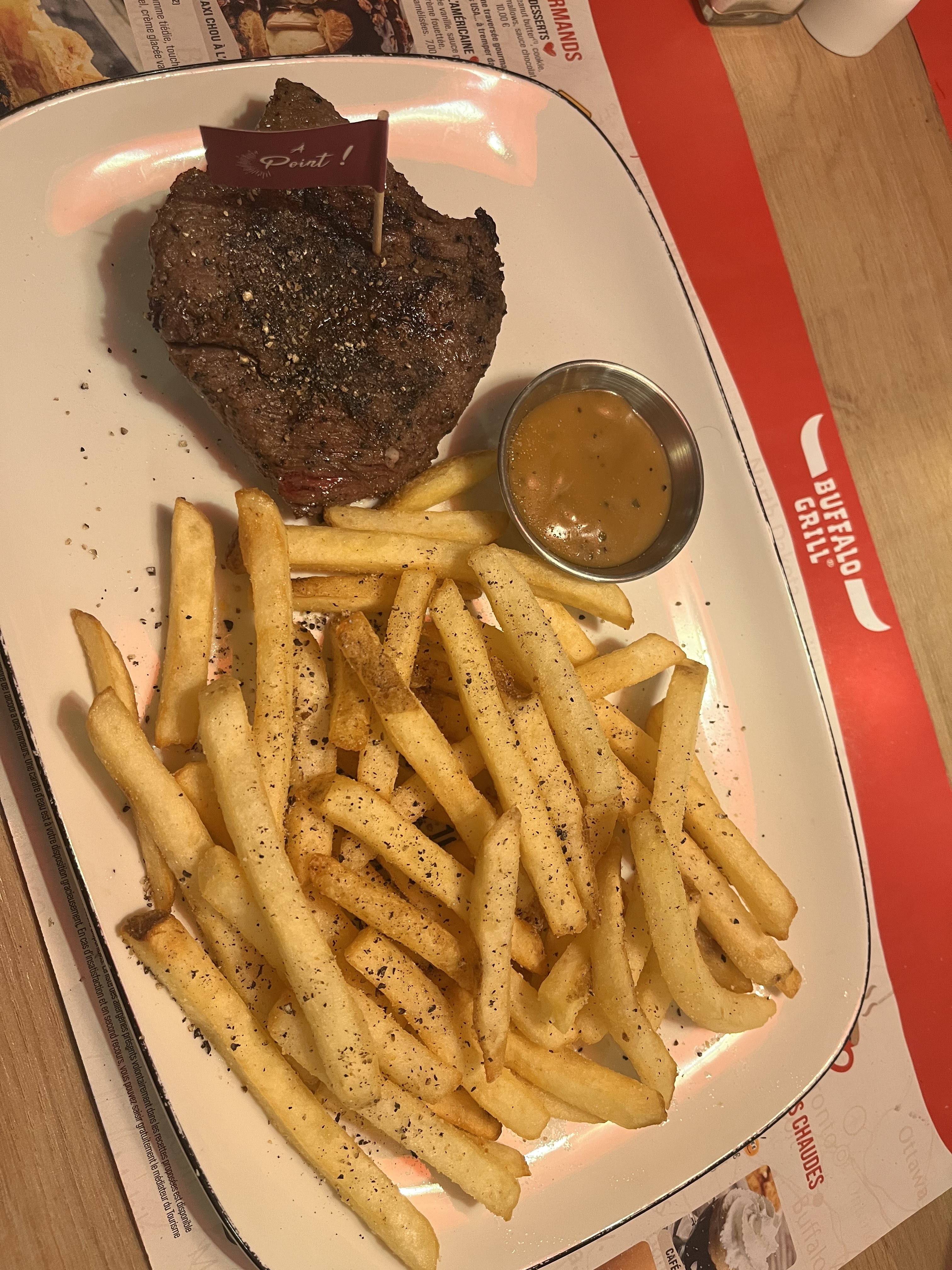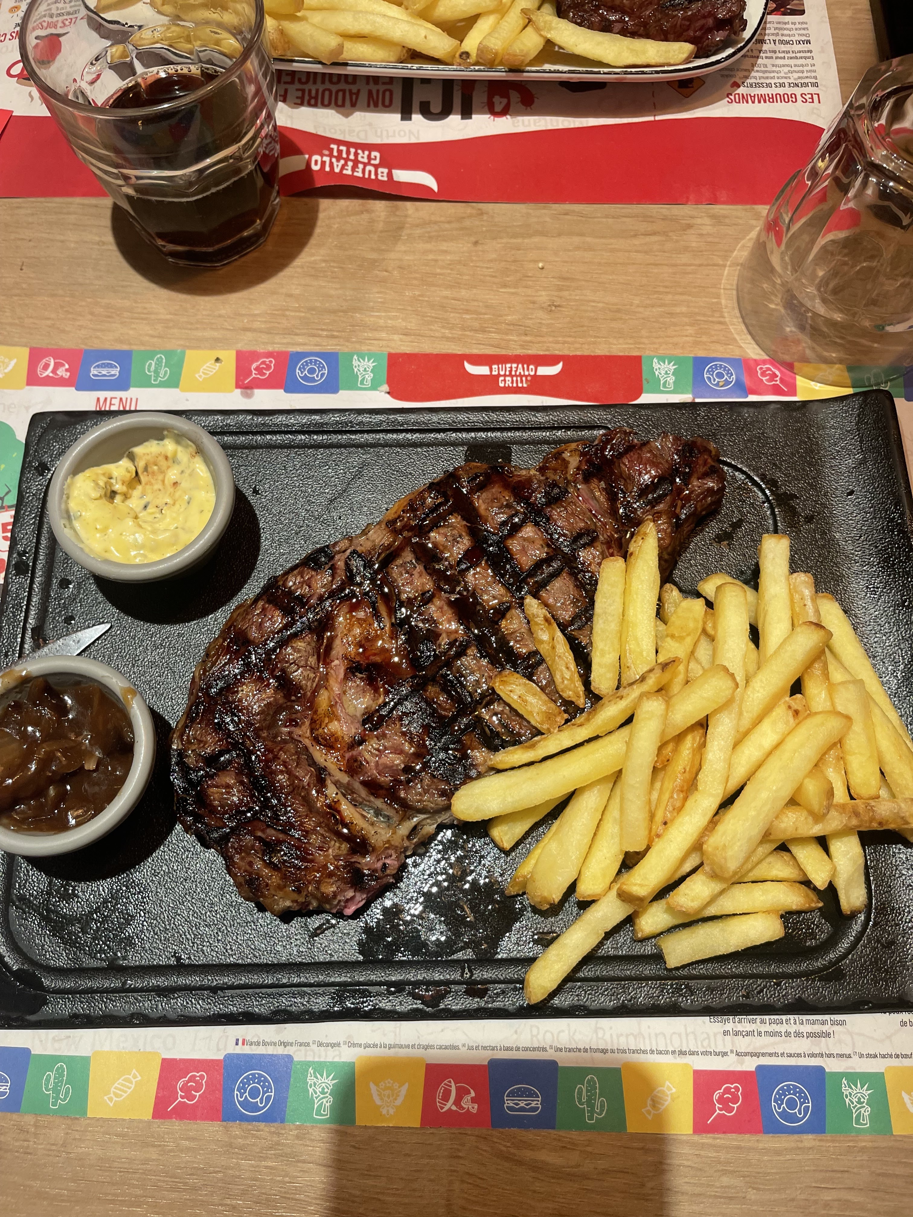 Très très déçu, le Buffalo c’est plus comme avant ça a bien changer. En entrée les tapas très déçu c’était ridicule des tout petits trucs ce qu’on nous a servi dommage je n’ai pas pris en photo… mais ça vaut pas du tout le prix. Ensuite la bavette vraiment trop dur inmmangeable et puis les onglets de bœuf le goût de brûlé c’était immangeable. On ne reviendra plus meilleur au Flunch. Vraiment très déçu heureusement les serveurs se donnent à fond pour le peu qu’ils doivent gagner ….