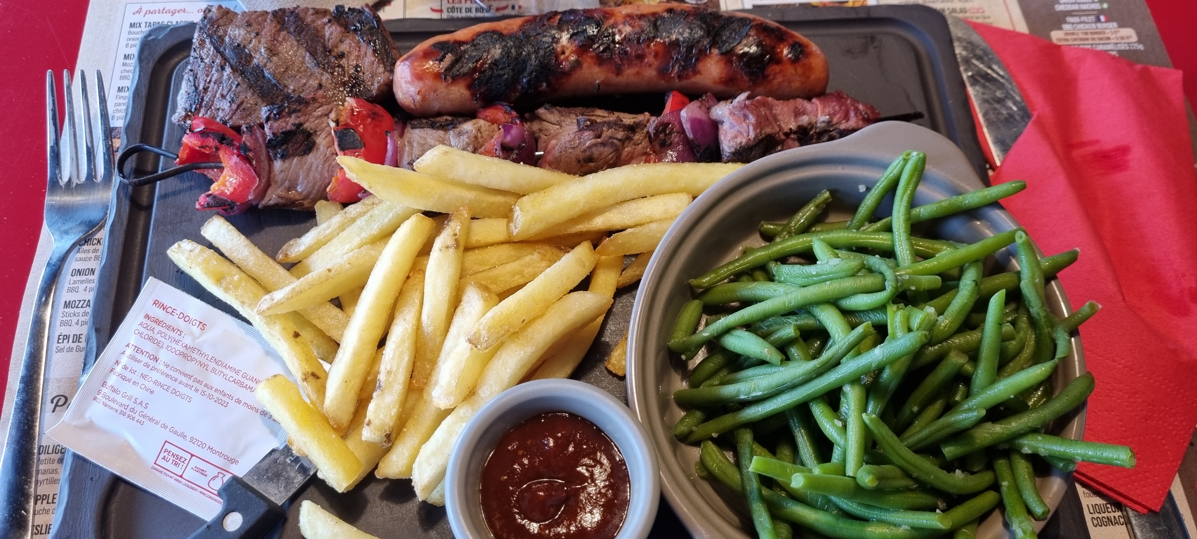 Arrivée tardive le midi, assez déçu de la formule shérif+. Peu de quantité et de qualité en entrée notamment.