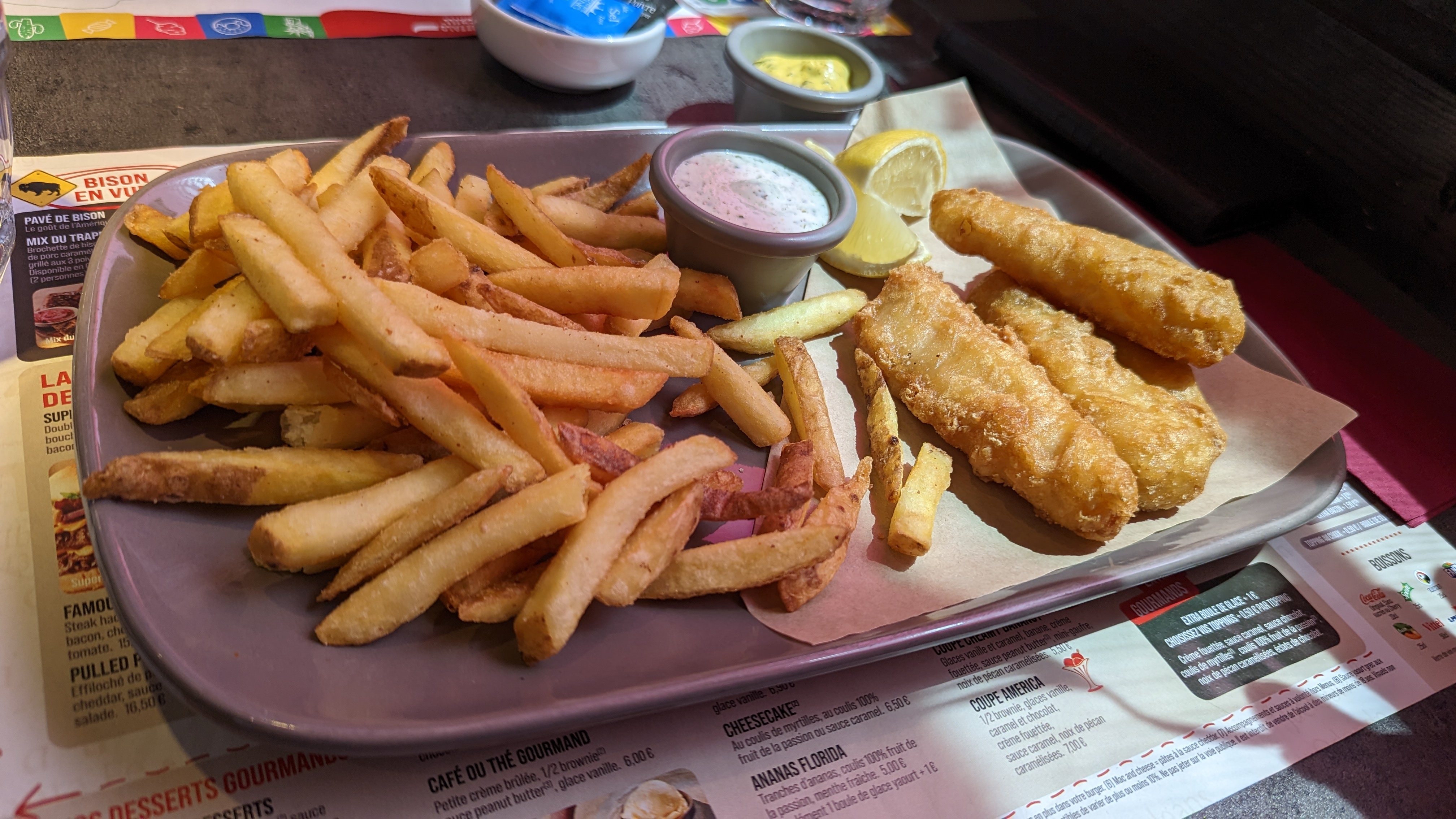 Un repas qui s’est très bien déroulé, le serveur était chouette, les plats copieux ! Nous avons adoré retrouver les saveurs de quand nous étions plus petits… la salade d’entrée avec sa sauce vinaigrette et son pain chaud… Quel bonheur !