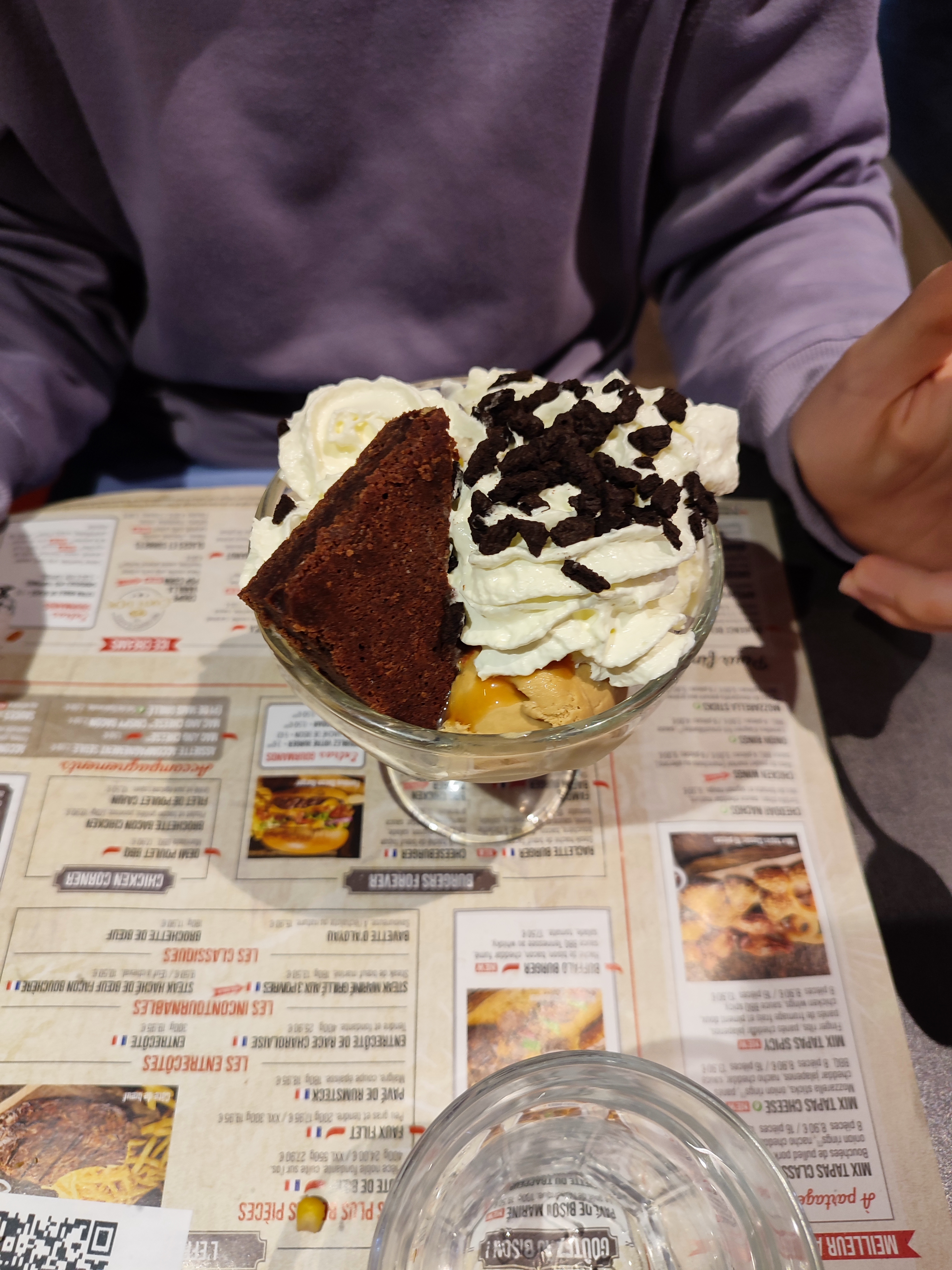 Dès notre arrivée , nous avons été très bien reçus avec des attentions toute particulière pour notre fille , le personnel est vraiment agréable , gentil ( lle) car nous avons eu à faire à une serveuse vraiment professionnelle et sociable ( Kenza que nous remercions tout particulièrement ) , tout notre déjeuner c'est déroulé à la perfection de l'apéro aux desserts , avec des salades offertes , un menu enfant servi très rapidement , une brochette de boeuf succulente pour madame , une brochette de poulet exquise avec accompagnement pour accompagnement une patate au four et des frites pour moi . Que dire des gaufres qui sont à tomber par terre mise à par qu'elles sont délicieuses avec une envie d'en commander une autre à peine la première terminé . Nous recommandons ce restaurant et ne manquerons pas d'y revenir dès que possible . 2eme passage et là : DECEPTION un Virgin Colada mal dosé avec du sirop d'ananas à la place du jus d'ananas ... Une brochette de boeuf trop cuite à l'extérieur et cru à l'intérieur... Un pain de Cake mi sec et mi pâteux 🤮 heureusement il y a la glace etvless éclats d'oreo pour faire passé cette chose , ensuite une gaufre sèche qui accompagne la coupe creamy bananut . Des serveurs un peu perdu et un service un peu long contrairement à notre dernier passage