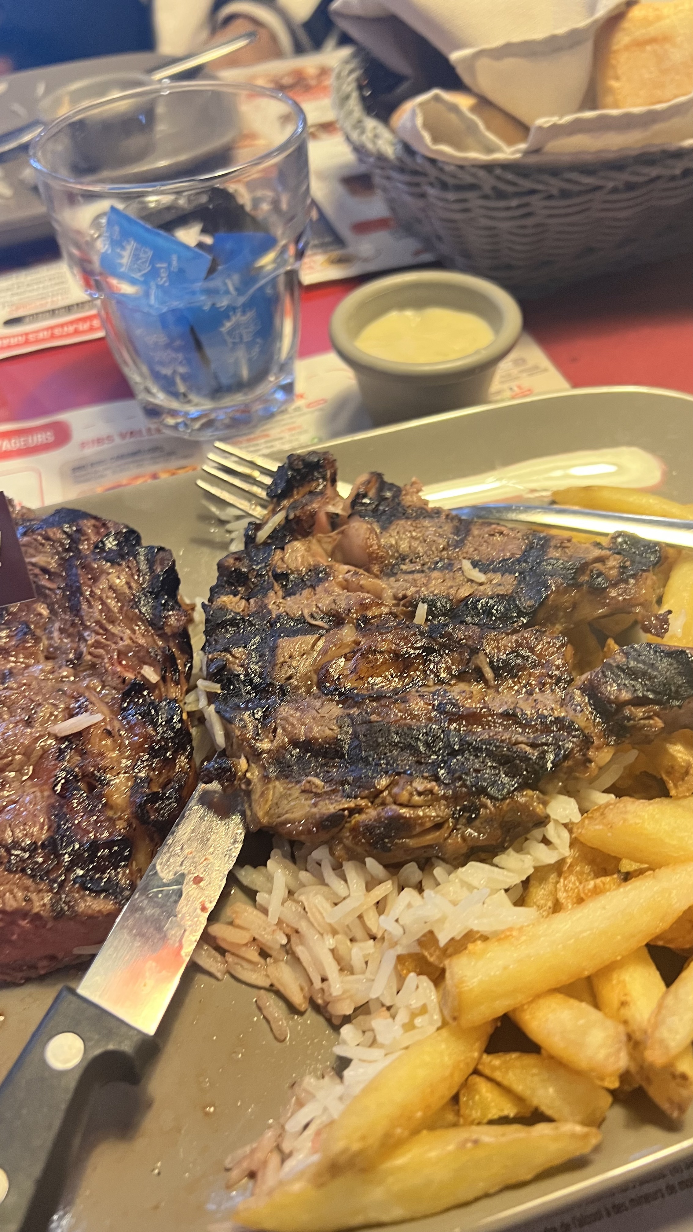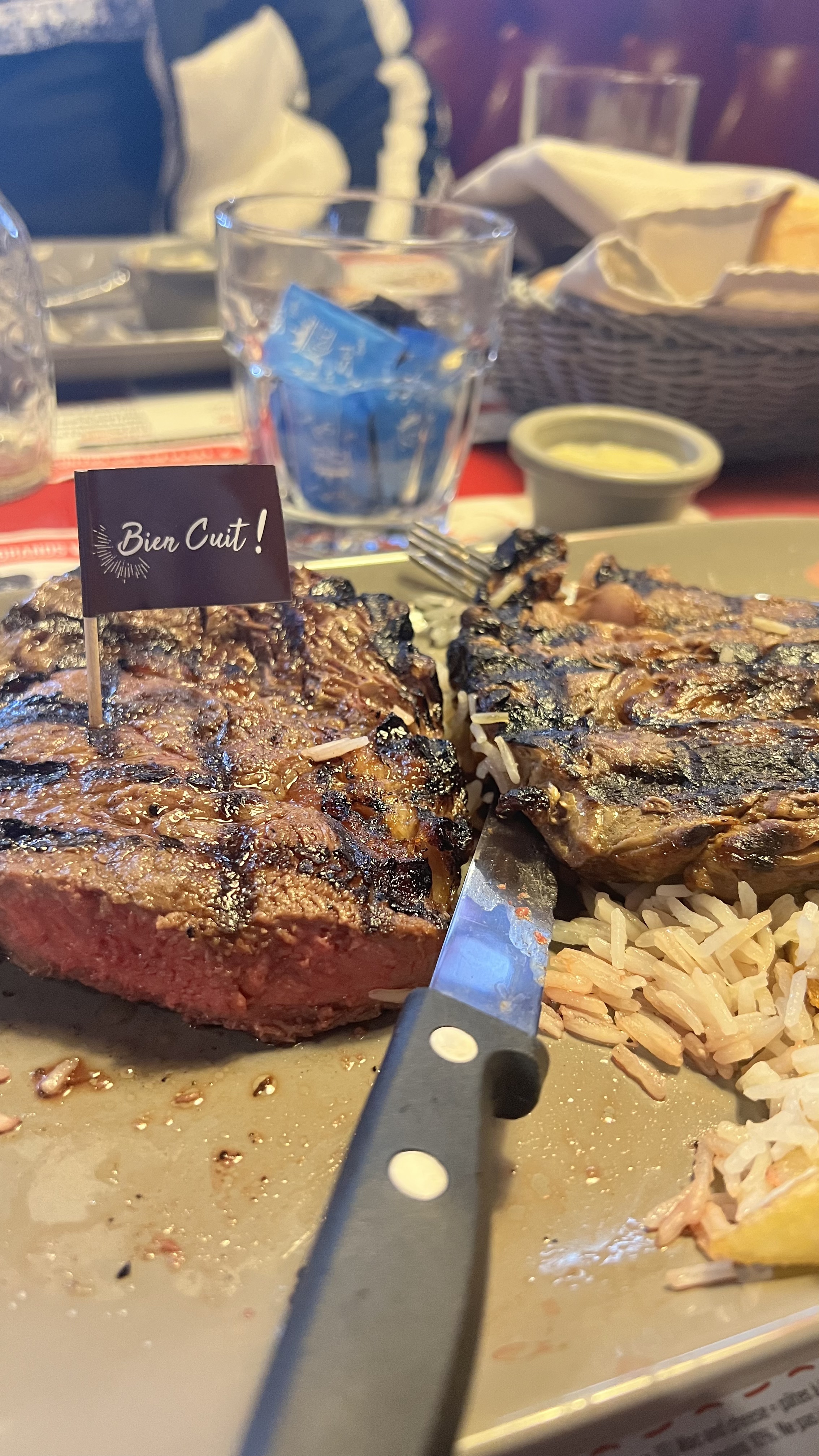 Bon accueil, serveuse sympathique. Des toilettes très vétustes mais propres. Les prix ont augmentés, mais cela comme partout malheureusement... La qualité de la viande est toujours là, juste un petit bémol sur la taille d'un des steaks servi, qui était plus petit que l'autre. Ça n'en reste pas moins un bon restaurant où l'on peut se faire plaisir. Je recommande.