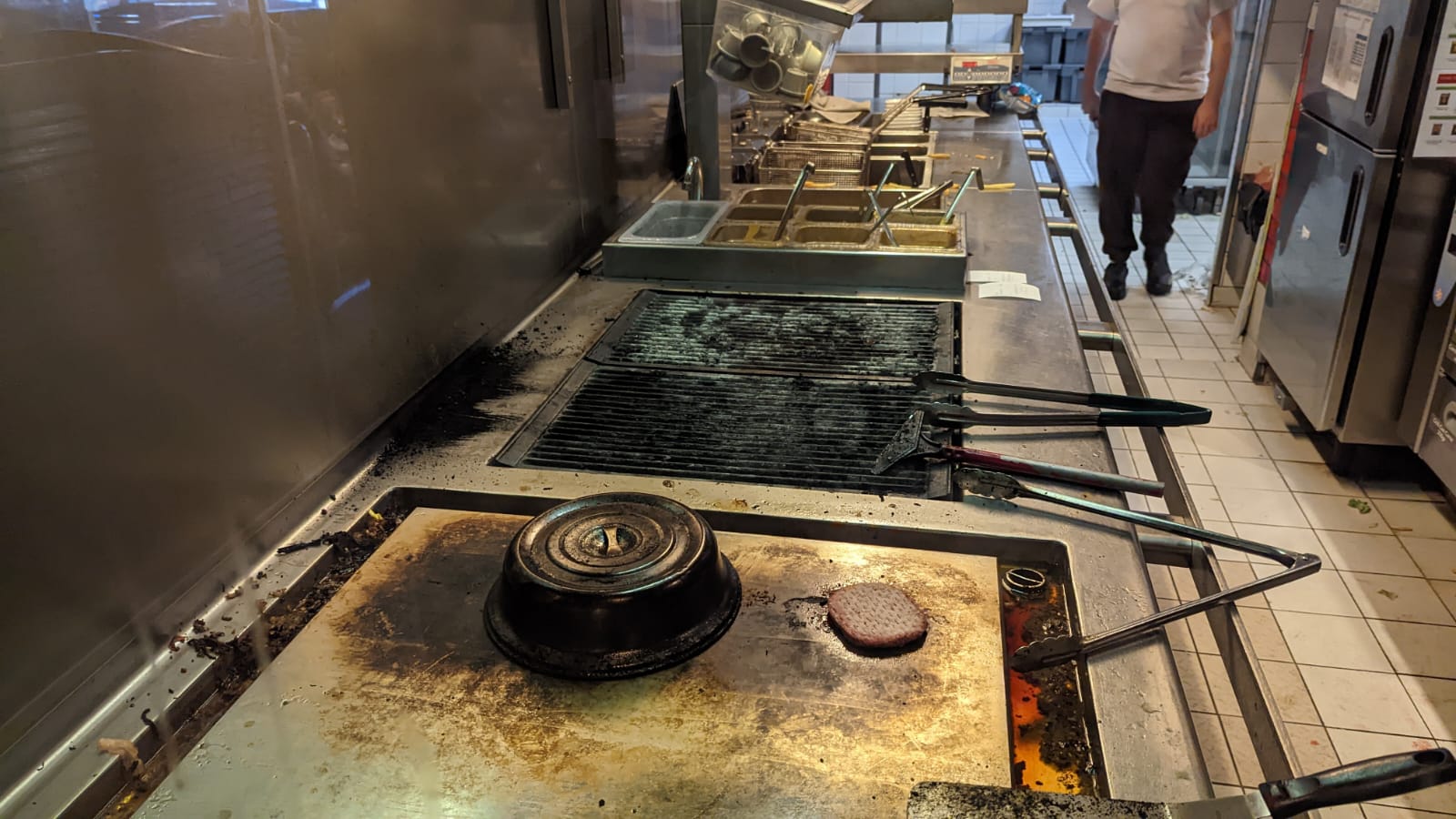 SCANDALEUX ! Il n'y avait rien à sauver de ce repas : - coktails très simple (mojito/Moscow mule) et pourtant insipides, sans alcool et sans goût. Pas un glaçon a l'horizon et de la menthe qui avait probablement passé plus de temps dans un frigo qu'en pleine terre. - 1 h d'attente pour être servi d'une assiette apéro mix a 16€ qui pourrait très certainement valoir 4€, tant le produit est de mauvaise qualité - une côte de bœuf saccagée, brûlée sur les rails d'un grill carbonisé, qui n'a probablement pas été nettoyé depuis l'ouverture du restaurant. Le regard fuyant des employés devant nos remarques en disent plus long qu'un discours : ce restaurant ne devrait même plus être ouvert. Pour terminer ce triste repas, voici une photo des cuisines...