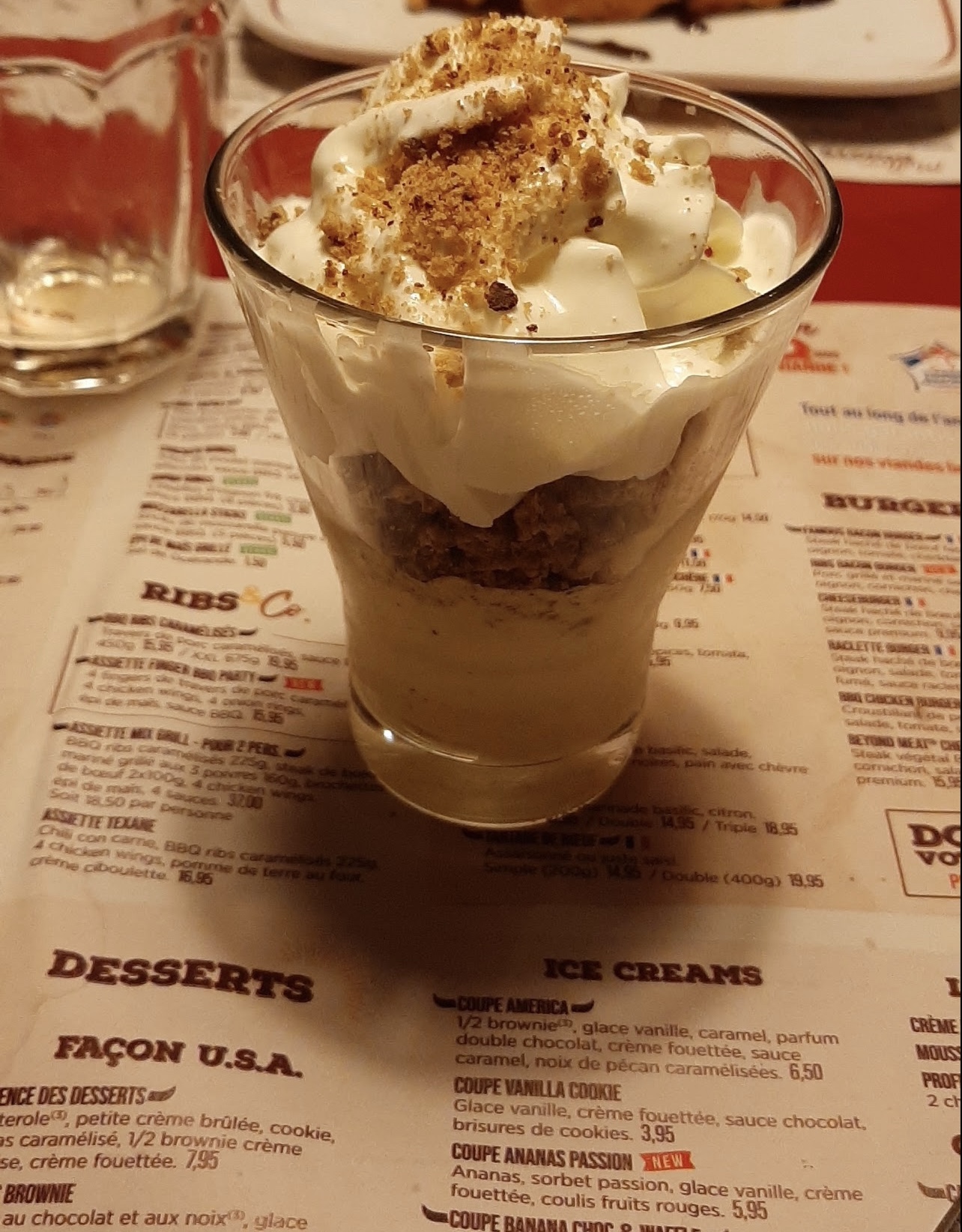 Excellent moment passé ce midi 4/7/23,nous étions 3.....2 bonne entrées mozza pané et oignons pané avec sauce barbecue, un petit regal ensuite 2 double hamburger bacon (un peu long à attendre, mais normal car nouveau chef et fait maison) avec une belle assiette de salade (on a oublié le type de salade🤭) ,le double m'a totalement séduit (trop bon et ÉNORME) pour finir en beauté Café Gourmand et grâce à la super attitude et gentillesse du serveur ma nièce a eu droit à un verre de chantilly alors qu'au départ elle ne voulait rien......excellent moment et excellent serveur.....à refaire !!👍👍