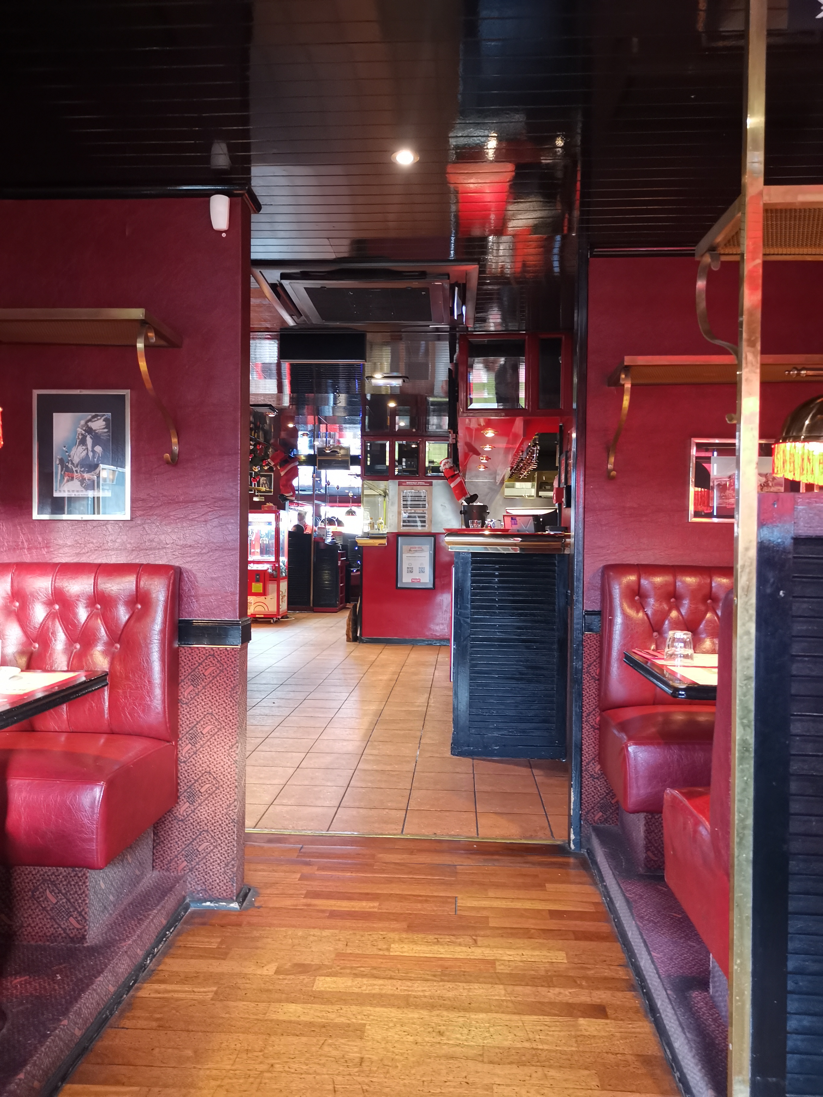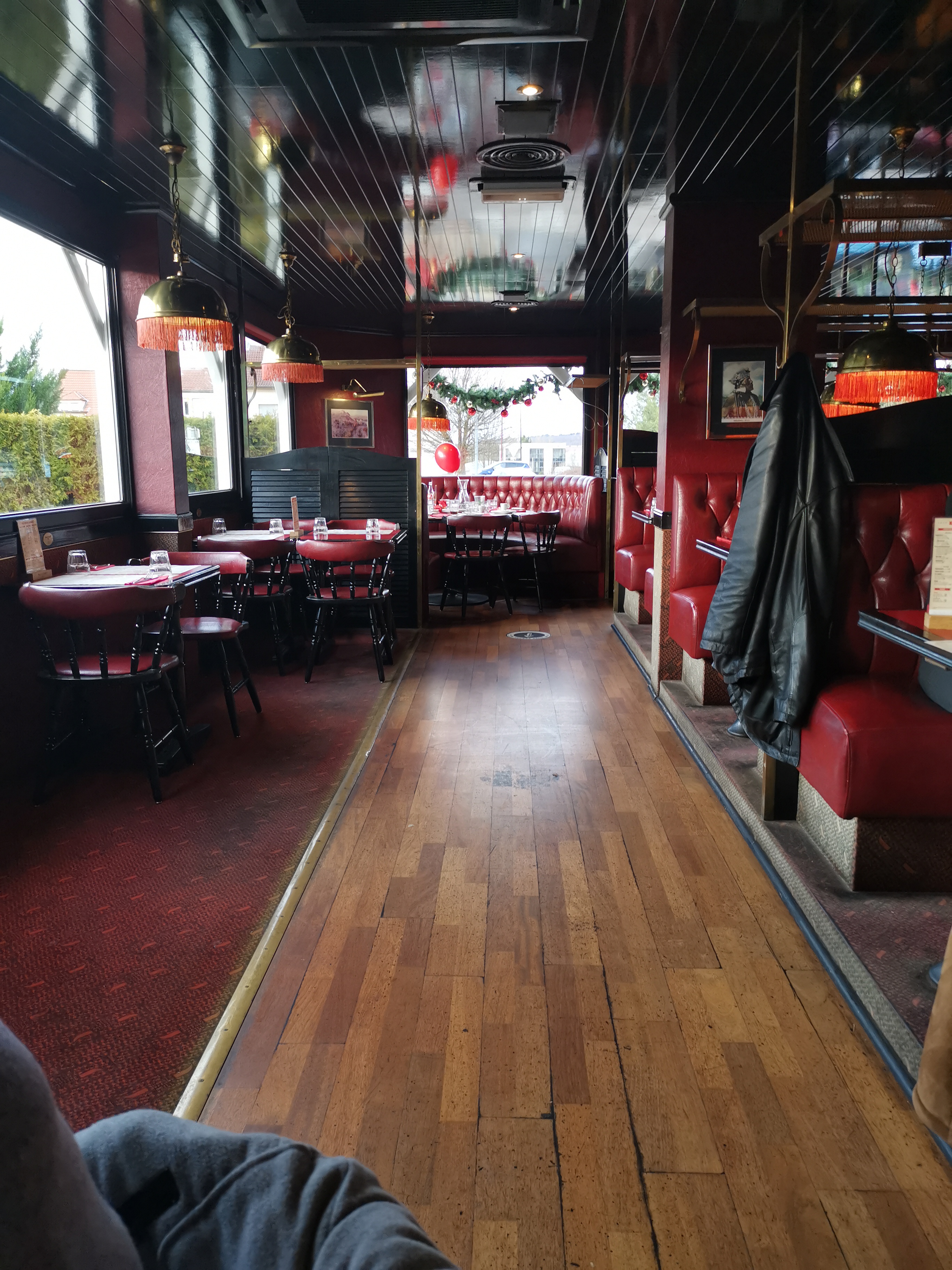 Attendre 30 min pour qu’on Daigne s’intéresser à notre table et nous demander après me sollicitation plus d’1h30pour avoir un « repas » cuisson n’est pas du tout celle demandé et burger arrive froid boisson qui n’arrive jamais qu’il faut réclamer au bar bref carnage ce soir et bien sûr on n’oublie pas le sol’ collant et les lampes aux franges poussiéreuses une rénovation de ce restaurant serait bienvenue Et la pauvre jeune qui est en formation mais qui fait tout toute seule