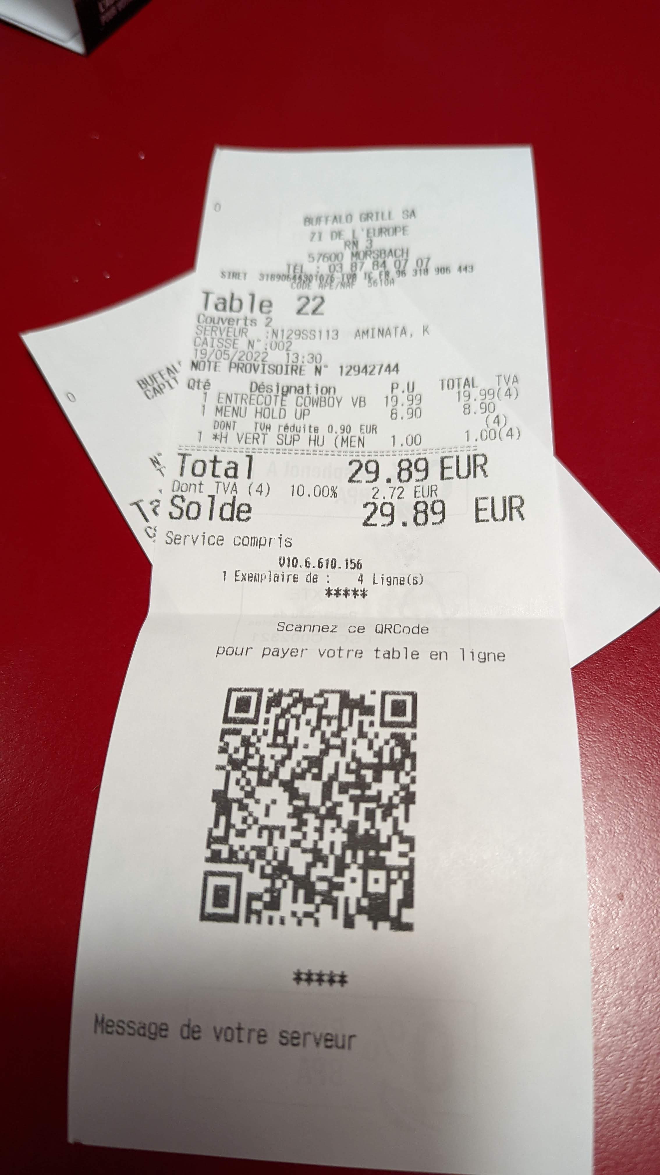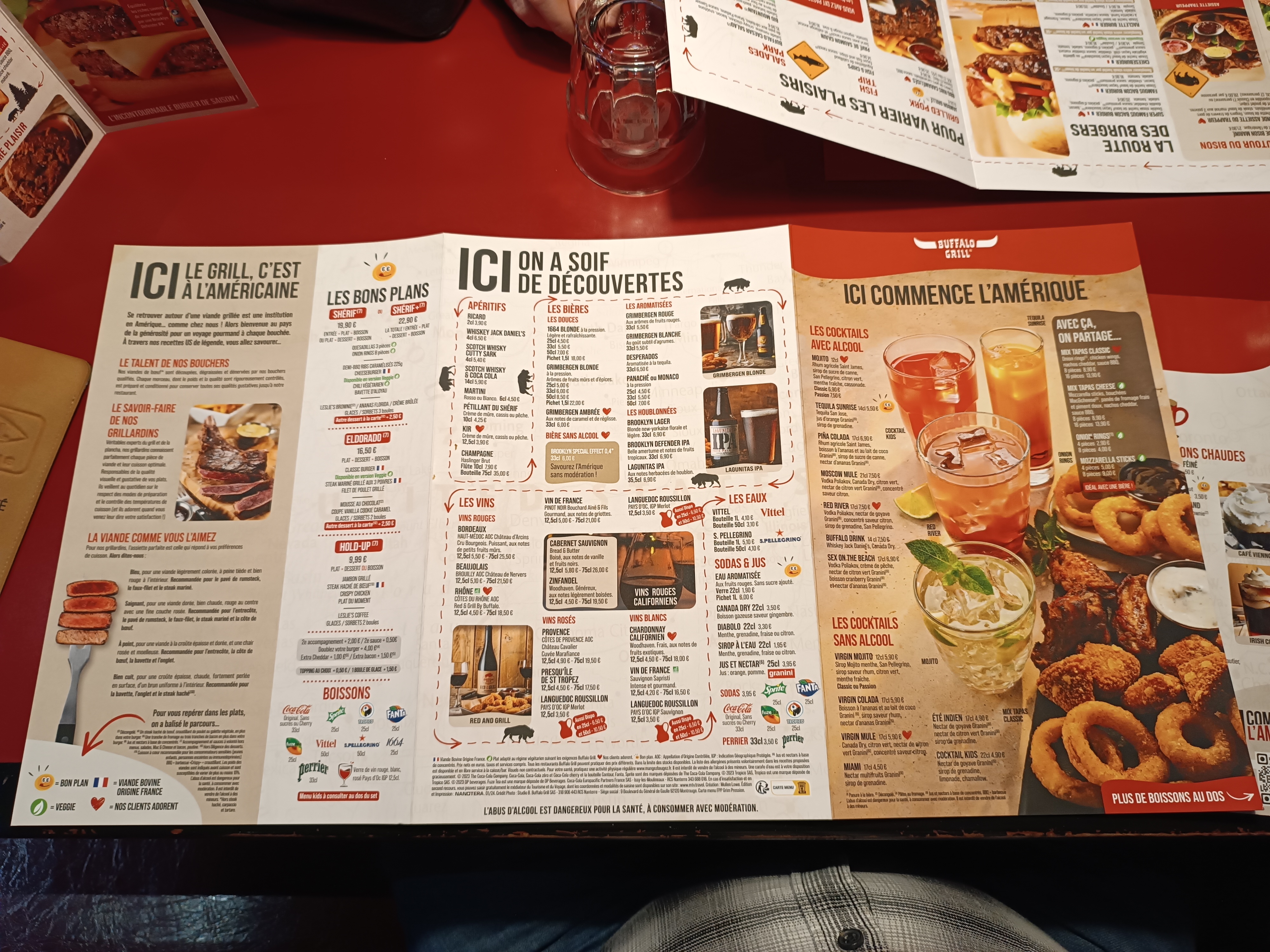 Je me suis permis d'aller avec ma famille au BUFFALO GRILL. Nous n'avons pas été déçu :) -les toilettes sont propres -les serveurs passent régulièrement pour voir si tout se passe bien, et font bien leur travail 🤝 -service assuré pas Amélie, rien n'a redire. Je recommande fortement 🙂