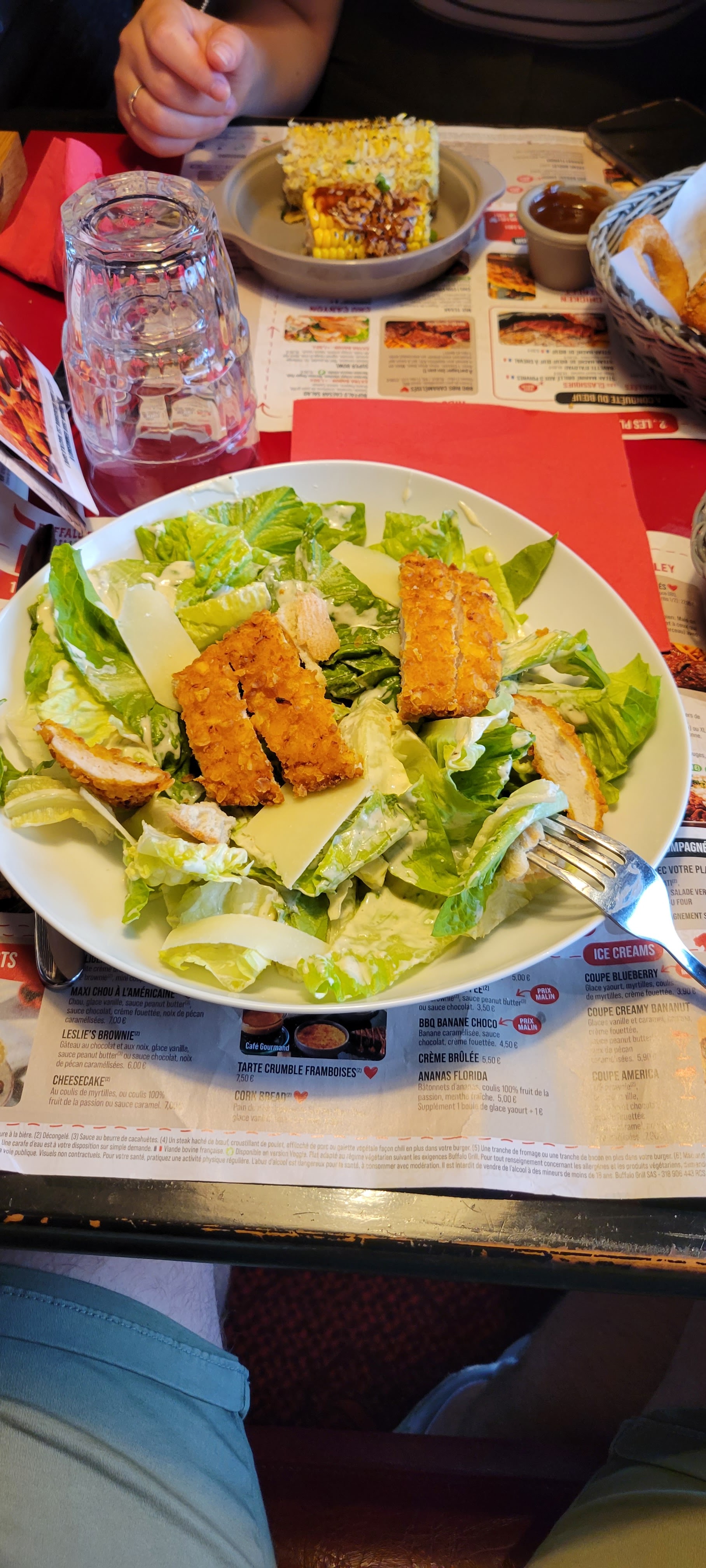 Très déçu de ma dernière visite au buffalo , moi qui était un habitué de venir dans ce restaurant chaque mois .J'ai remarqué une sacrée hausse de prix et surtout la réduction des quantités dans l'assiette. Ce soir là j'hésitais entre un steack mariné au 3 poivres(~15€ l'assiette avec frites sauce) ou une Big Salade césars ( fromage sauce salade croûtons escalope crispy). J'ai finalement pris la salade pensant en avoir pour mon argent au vue du prix et de la description. Très deçu j'ai reçu 6 petits morceaux de poulet avec quelques petites tranches de fromage parmesan accompagné de 3 morceaux de pain sec datant certainement du jour d'avant donc absolument pas croustillant et une 20aines de feuilles de salade... cela m'a couté quasiment 16euros je trouve ça inadmissible vu le prix que j'ai pu payer je vous laisse voir de vous même sur la photo. Seul point positif la bonne humeur du personnel serveurs ainsi que le gérant qui m'a proposé un geste commercial après lui avoir expliqué la situation. Il faudrait penser à revoir les quantités quand vous proposez des prix assez élevés.