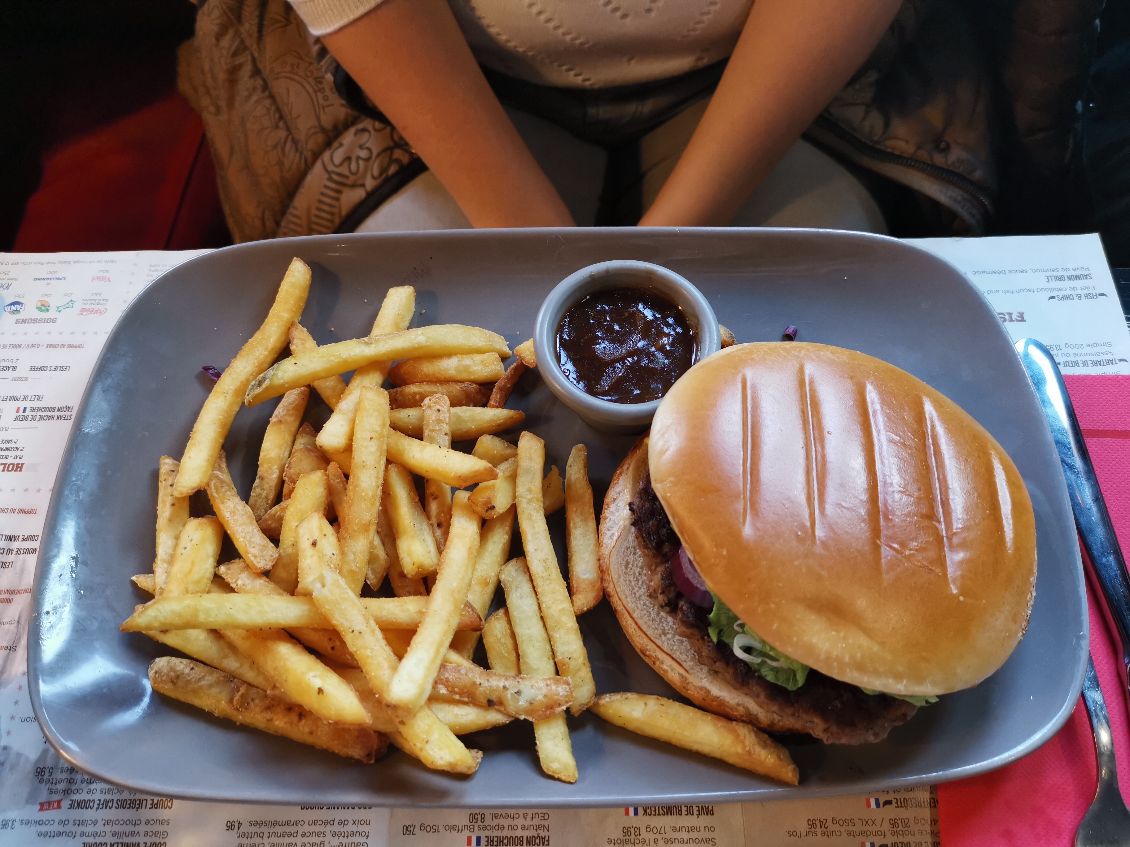 Le serveur était gentil mais bon le service en général un peu à revoir, déjà la commande est à faire soit même sur le téléphone ce que je trouve dommage dans un restaurant, ensuite erreur dans les sauces qui accompagnent les plats, je demande du ketchup et de la Mayonaise et on nous ramène un seul tube de Mayonaise, la salade offerte c’est sympa mais un peu ridicule deux feuilles de salade….