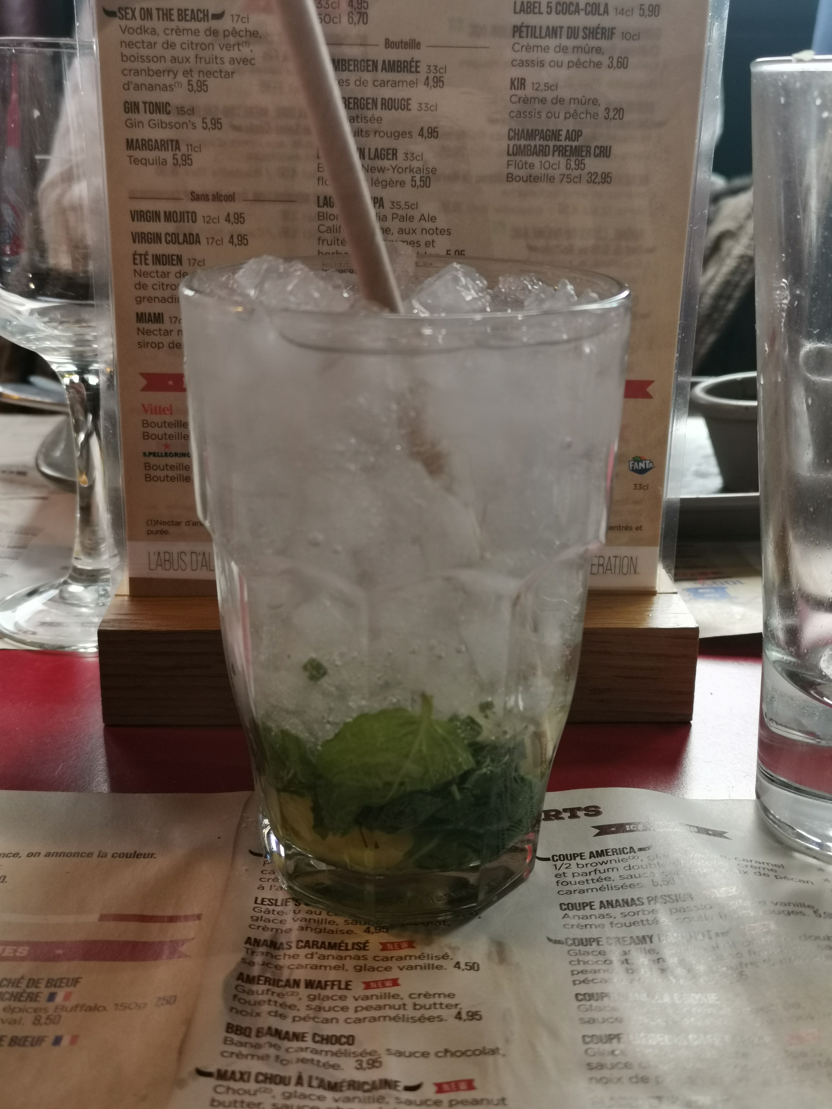 Nous avons du attendre une dizaines de minutes, avant que le serveurs viens a notre table ( pourtant il tourner souvent dans la salle). Après la prise de commande les boissons sont venus rapidement, et on a eu un peu d'attente avant de recevoir notre plat. Mais si je met si peu d'étoiles c'est a cause de la suite des événements. On a reçu une carte collante, pas nettoyé en même temps qu'une mise en bouche. C'était de la salade avec maïs, flageolets. Mais trop de vinaigre au point que ça a couler sur le côté du ramequins et a l'intérieur la salade étais pas fraîche du tout. Les cocktails sans alcool sont très bon, rien a redire, et ce que on a commandé était bon mais ce qui est dommage c'est pas assez de sauce avec les frites. Une fois terminé, nous attendons le serveur, et le temps passe et nous constatons qu'il était rester à la même table avec une cliente a parler de tout mais rien qui concerne le service. On a remarqué que c'est le serveur qui gère le payement, il a pris le payement de la cliente avec qui il a longuement discuté. Et quand on l'interpelle, il sort un ticket et nous envoye au bar, car ça sera plus rapide... Donc très mauvaise impression sur le serveur, on se sentait laisser de côté, ce qui est dommage car ça fais tout d'un service.