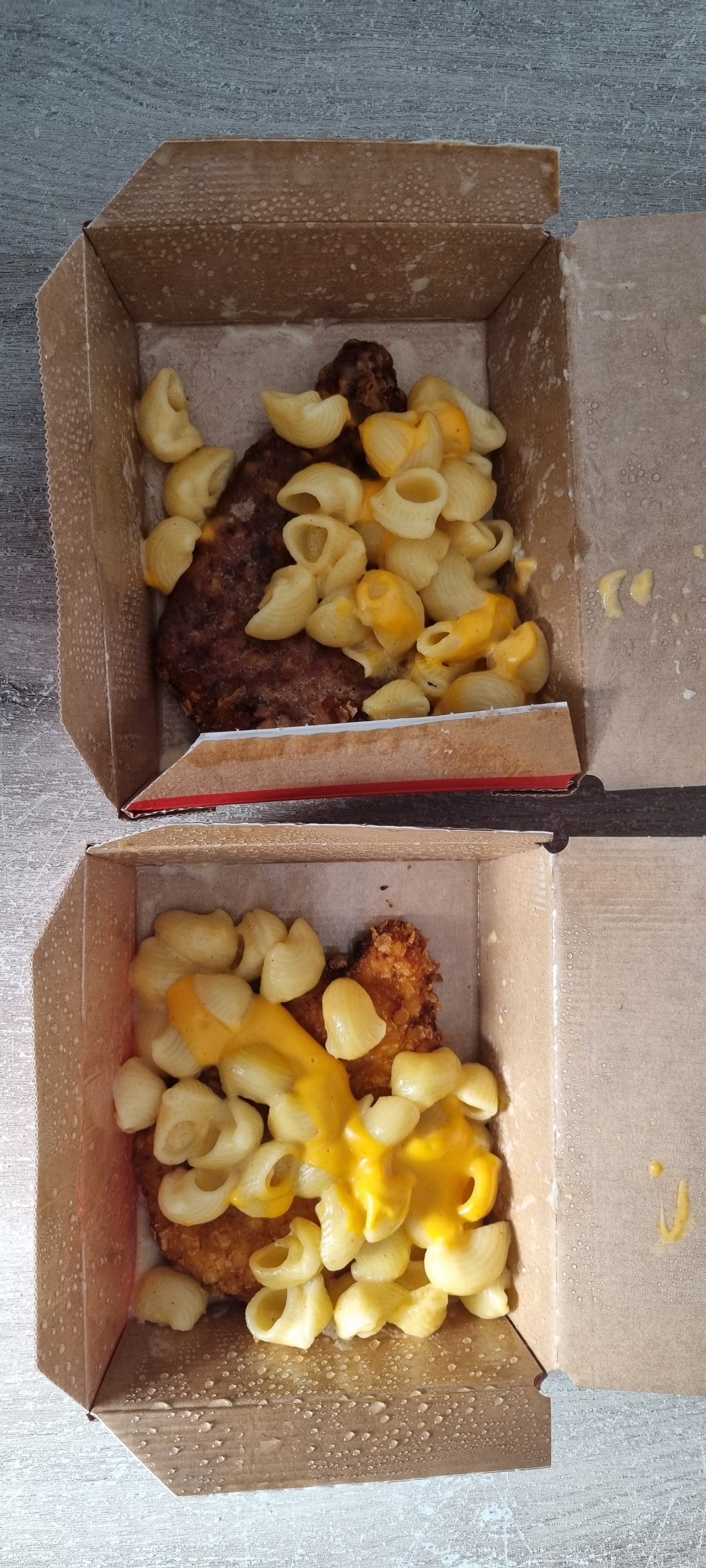 Je passe une commande sur Uber Eats, ce n'est pas là première fois et jamais eu de soucis particulier, par contre ce soir nous testons les mc&chease au bacon et en ouvrant la boîte je me rend compte qu il y a la quantité d une bonne cuillère... 10,50e la barquette casi vide ! Pensant à une erreur je téléphone au restaurant directement pour le signaler... Le chef cuisinier répond tout naturellement que c'est la quantité normale !! Ils ne me reverront plus, c'est une honte. Ci joint la photo prise immédiatement à la livraison.